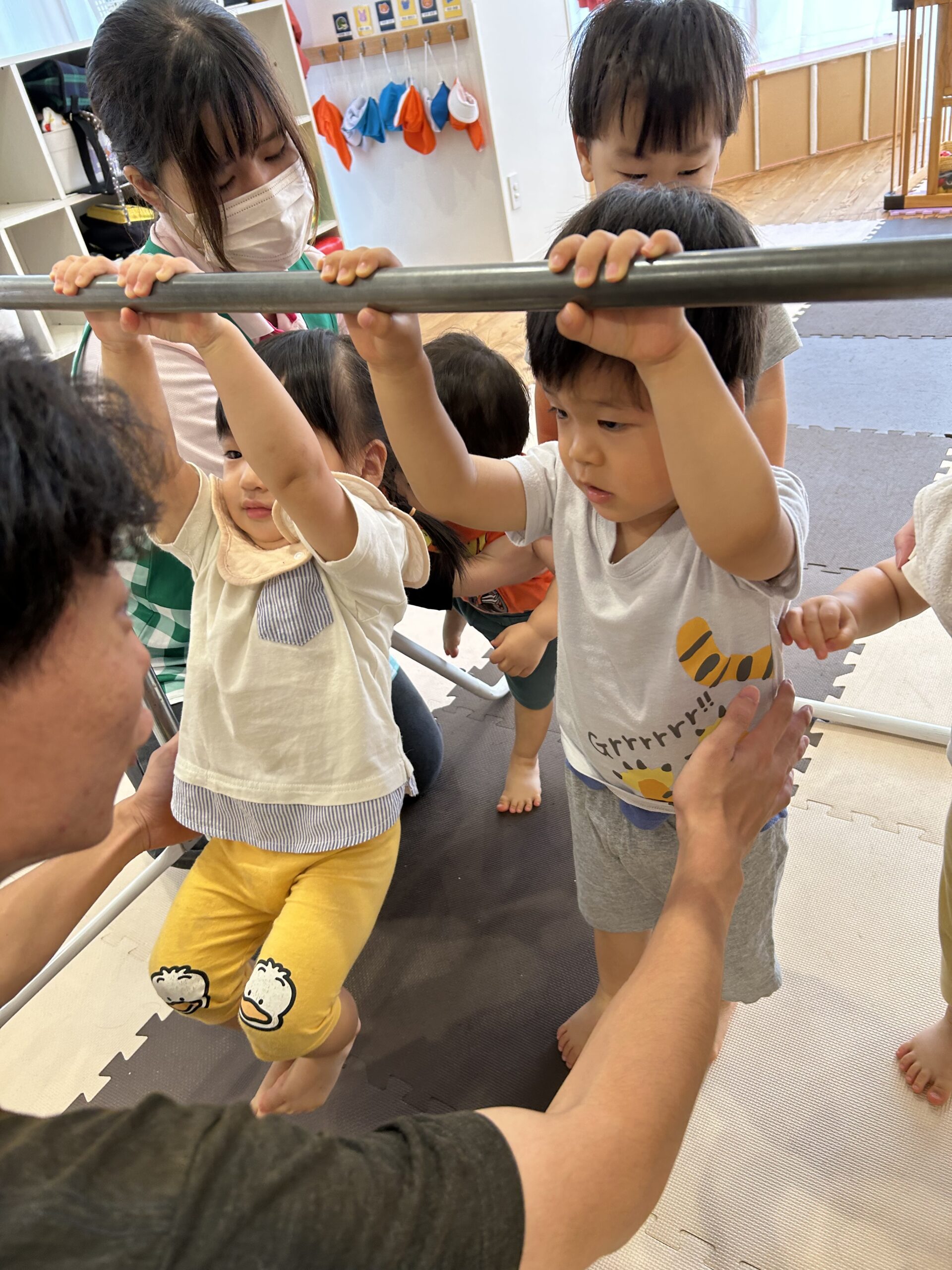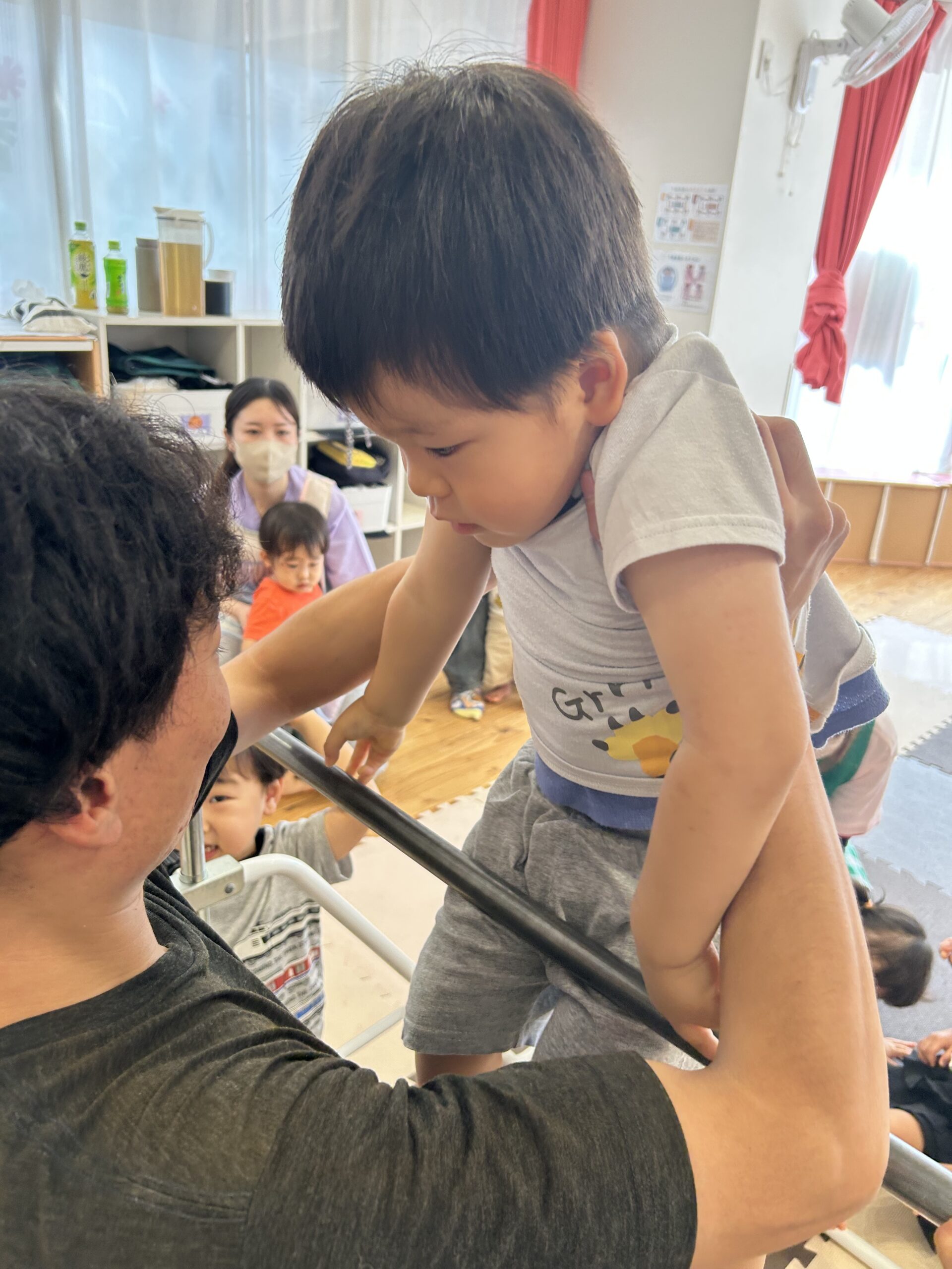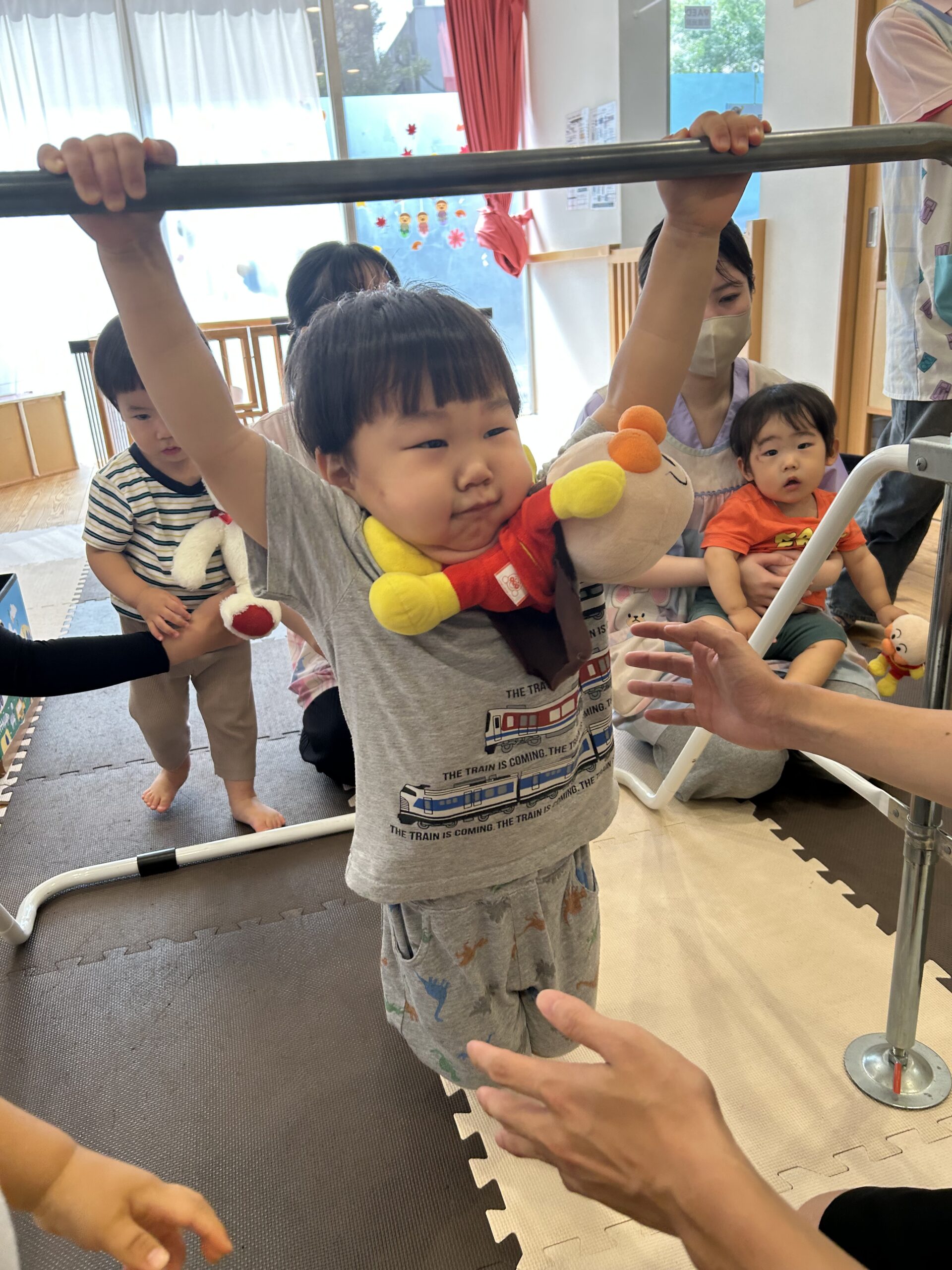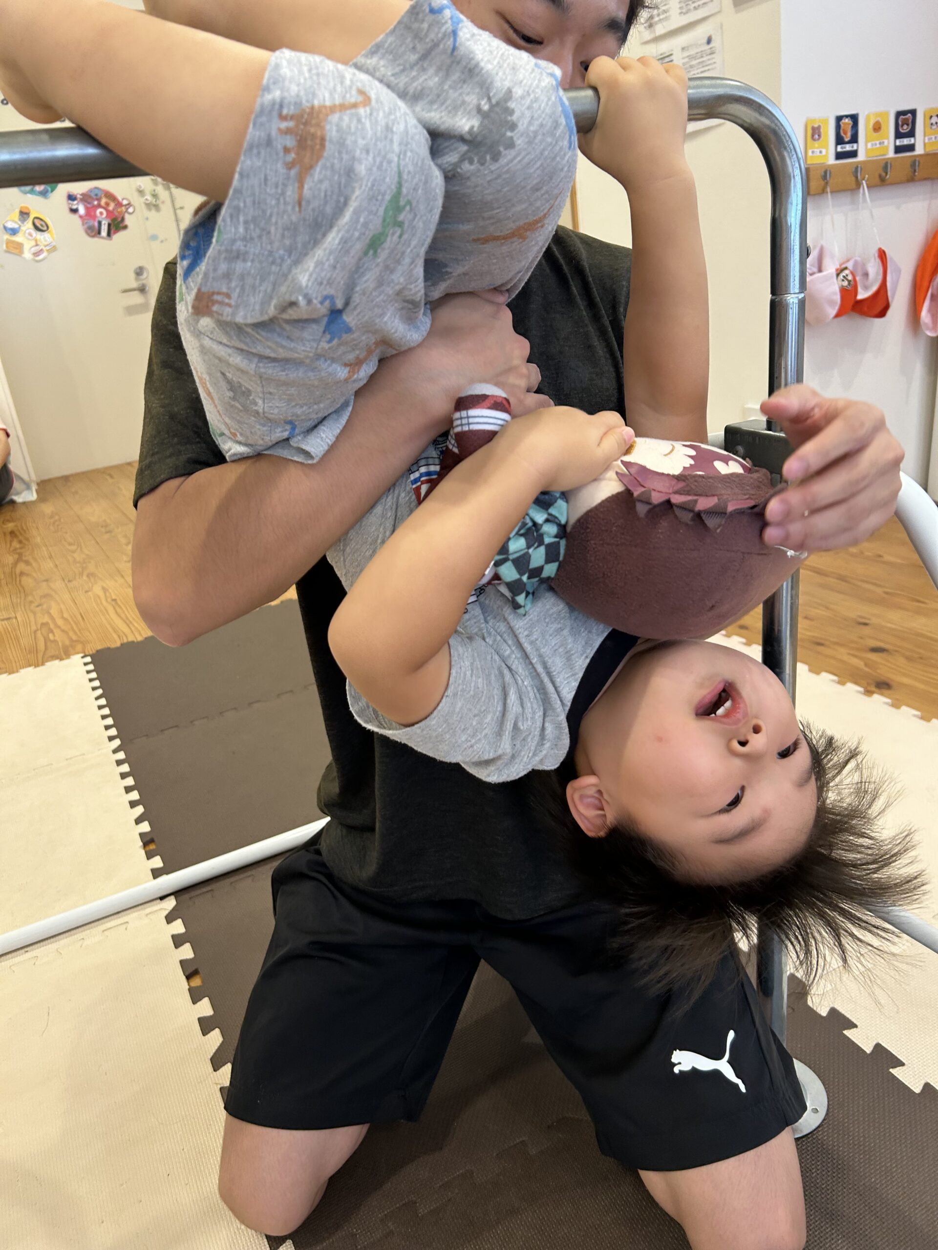 頑張って自分でぶら下がったり、先生と一緒にぶら下がったりして頑張りました💪