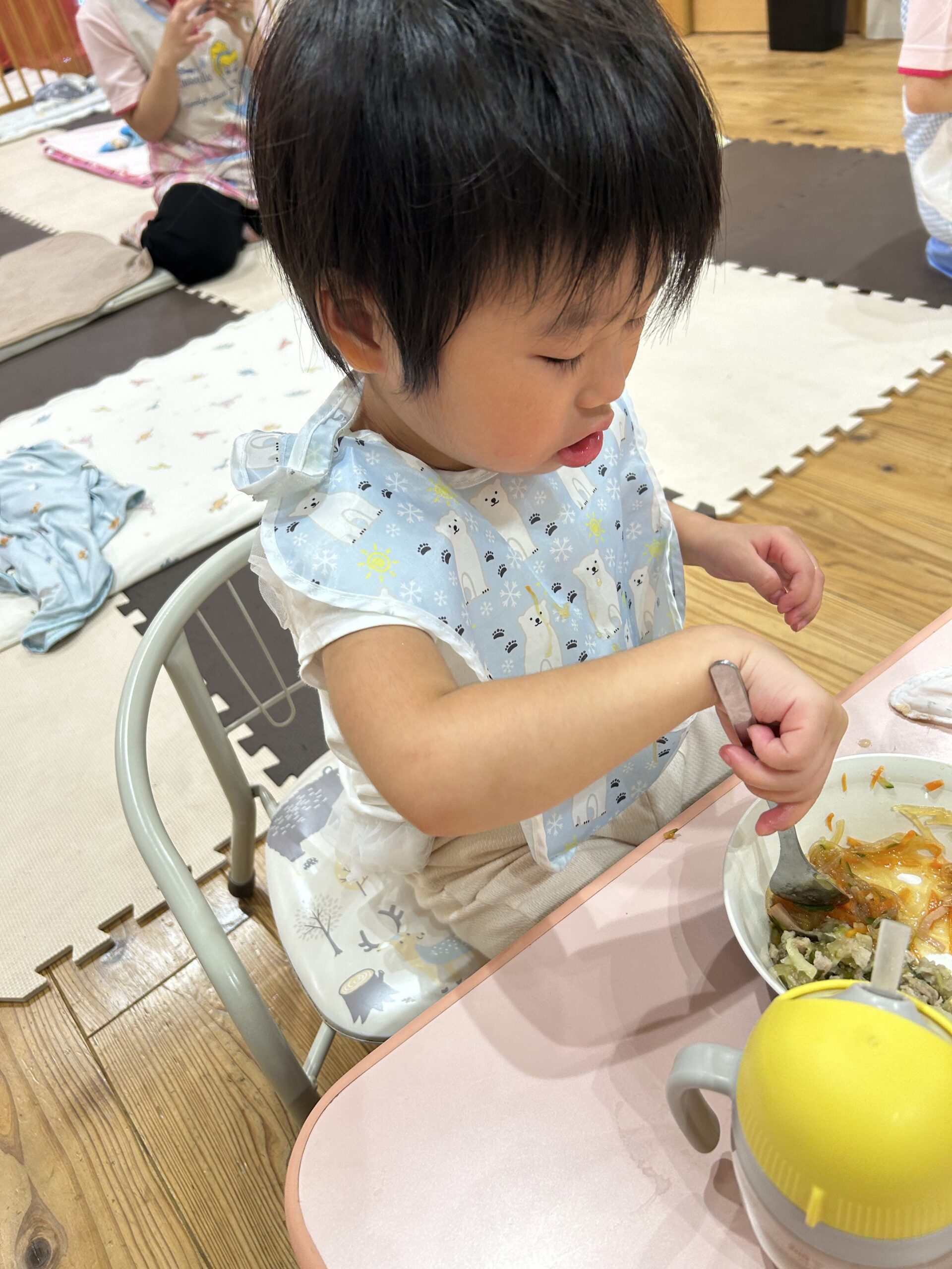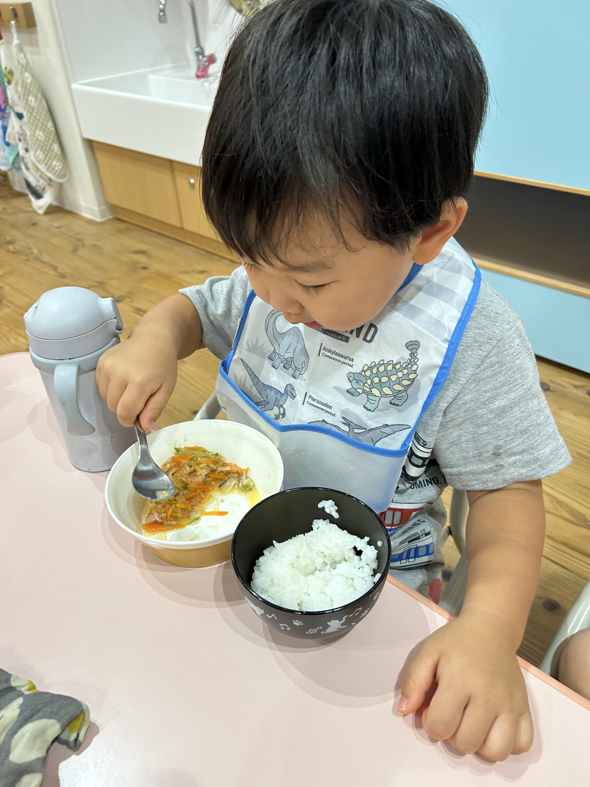 お腹がすいていたのか、いただきますの挨拶をするとモリモリとすぐに食べ始めています🥹