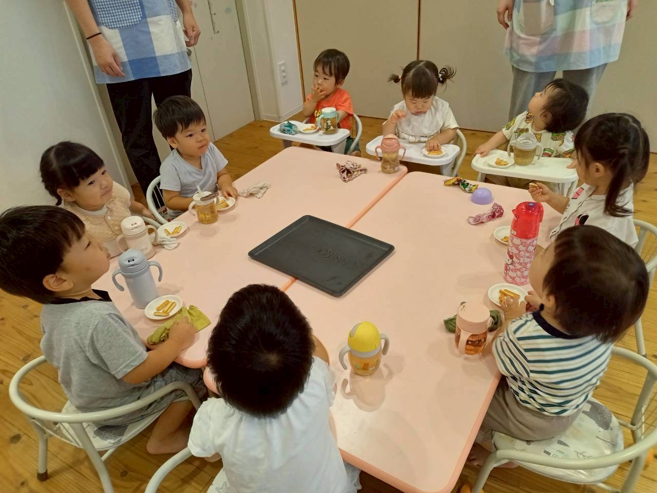朝のおやつも食べて、元気満タン!
