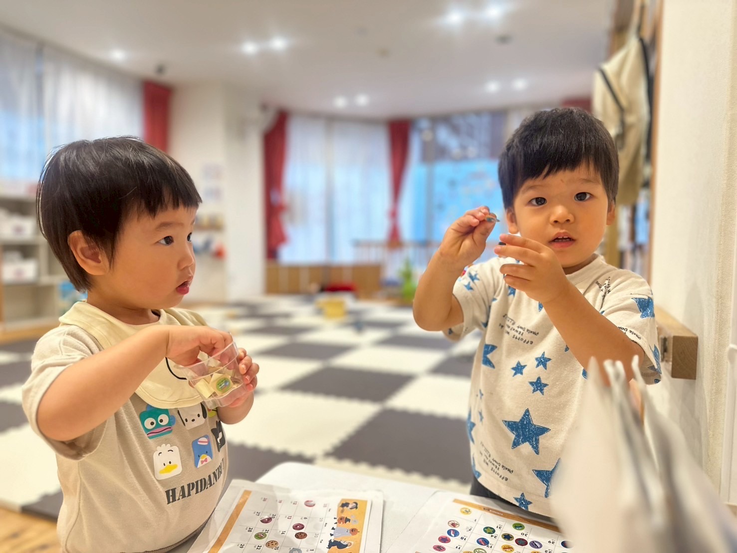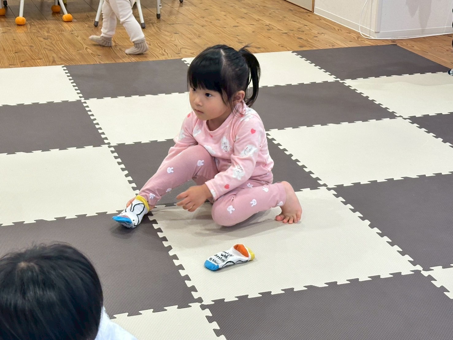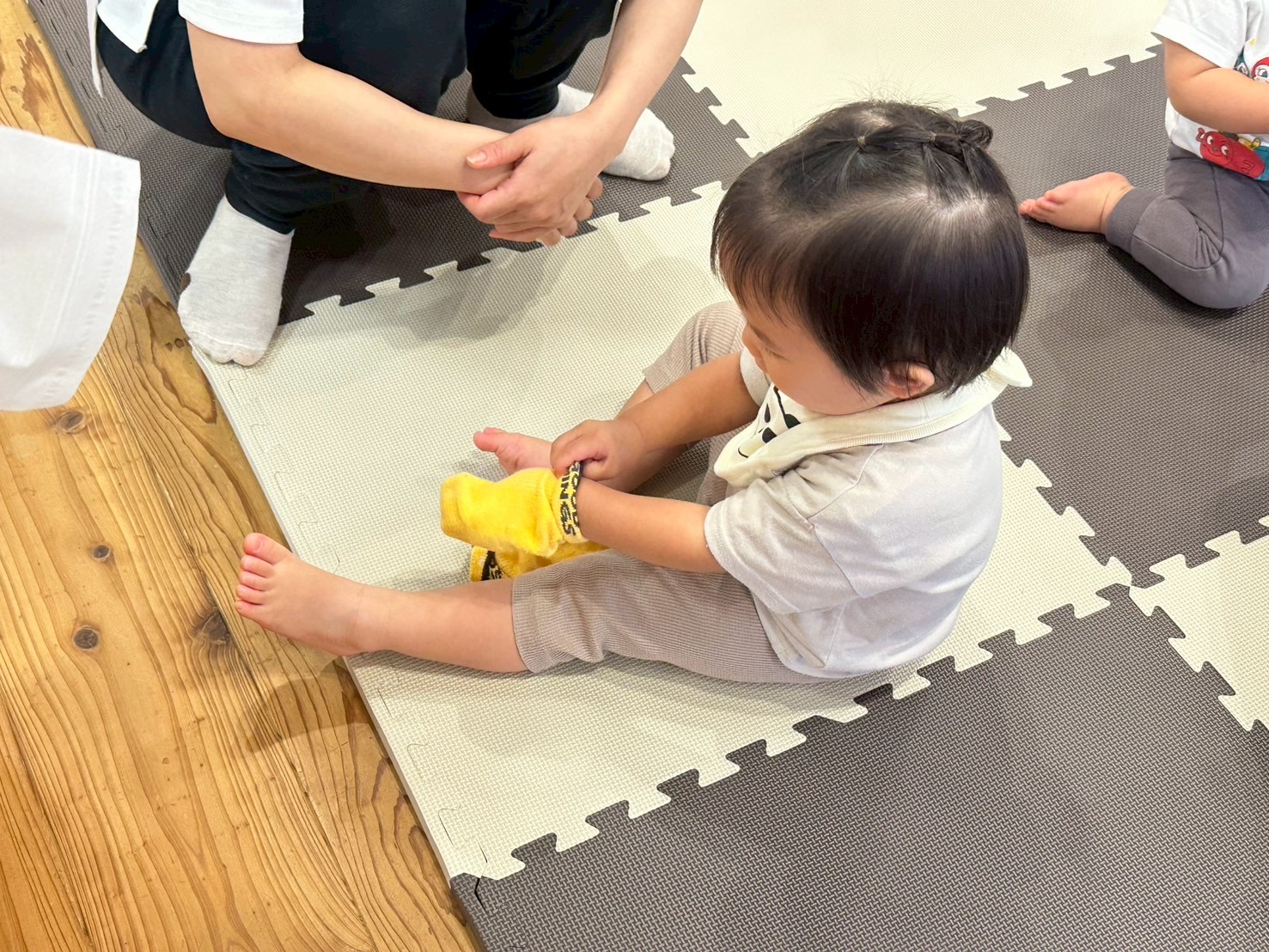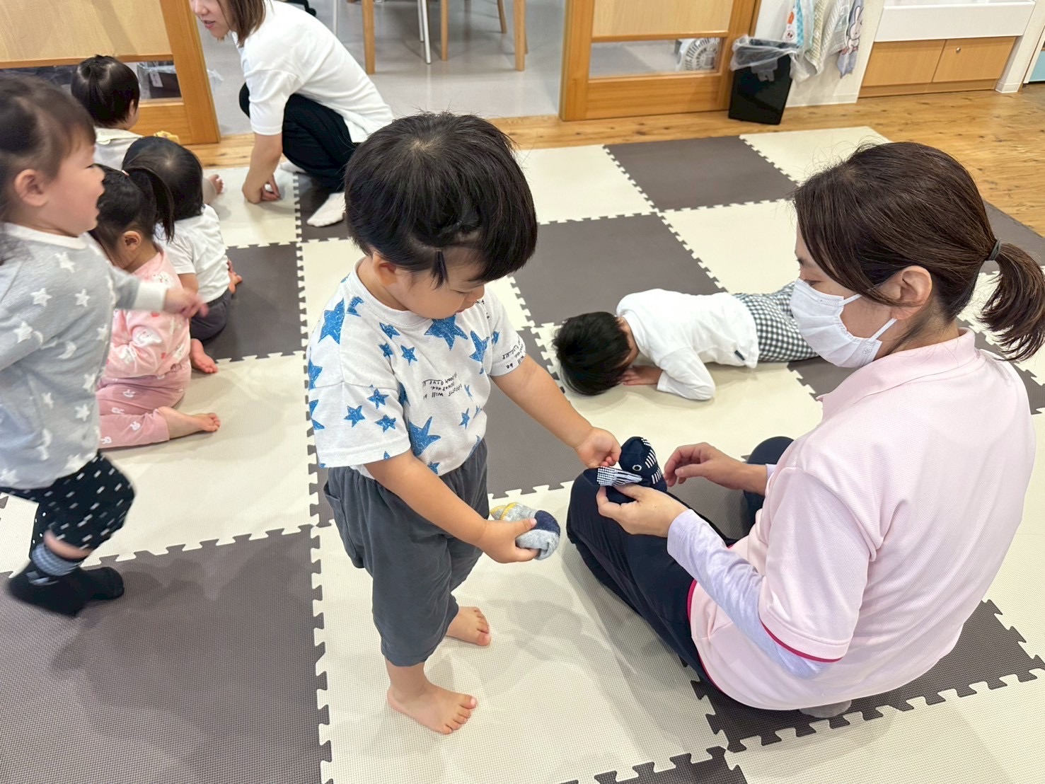 ヨイショヨイショと靴下を履く練習や「してー」と先生に頼むお友達も⸜( * ॑꒳ ॑*)⸝⸜(* ॑꒳ ॑* )⸝