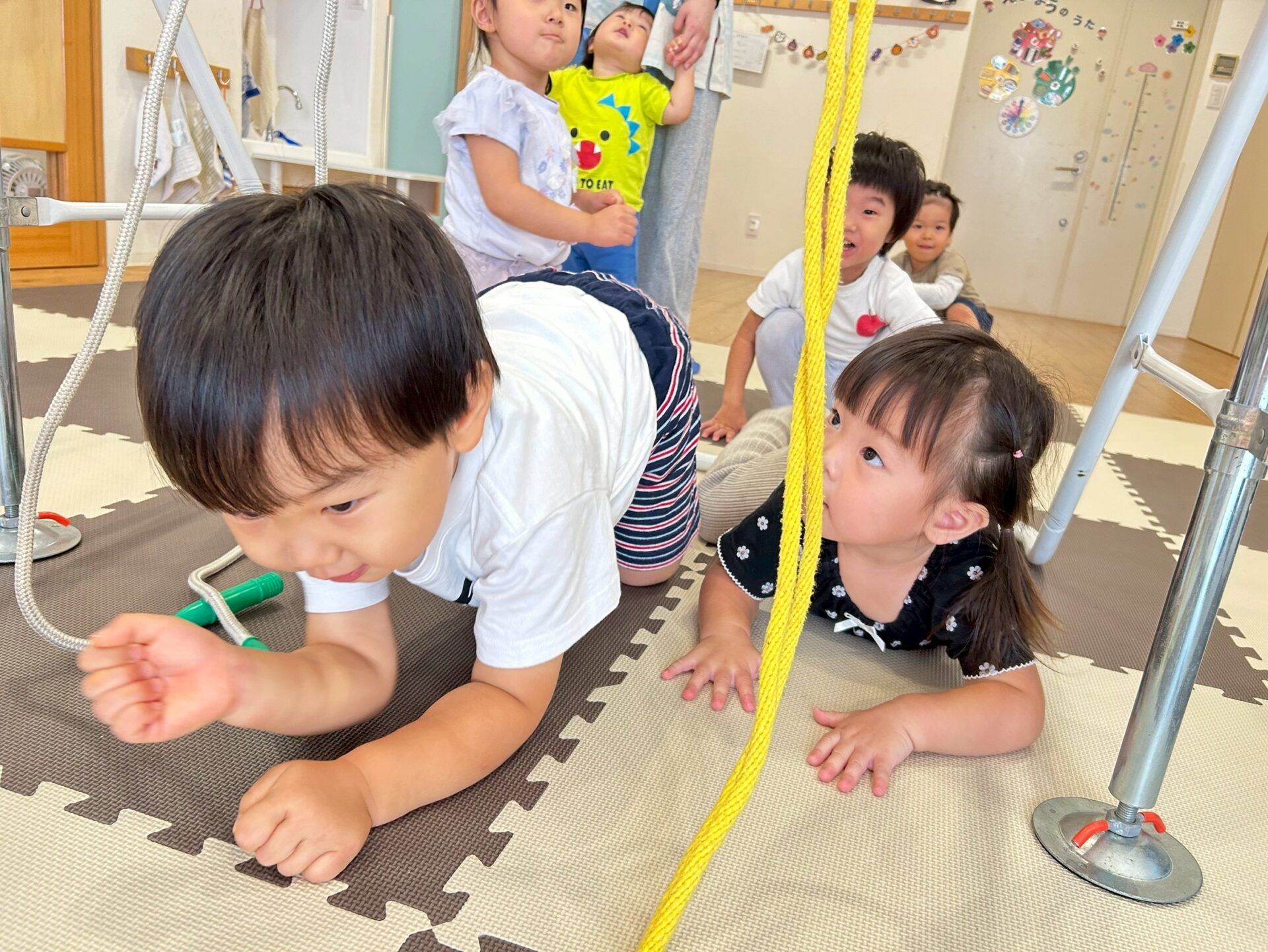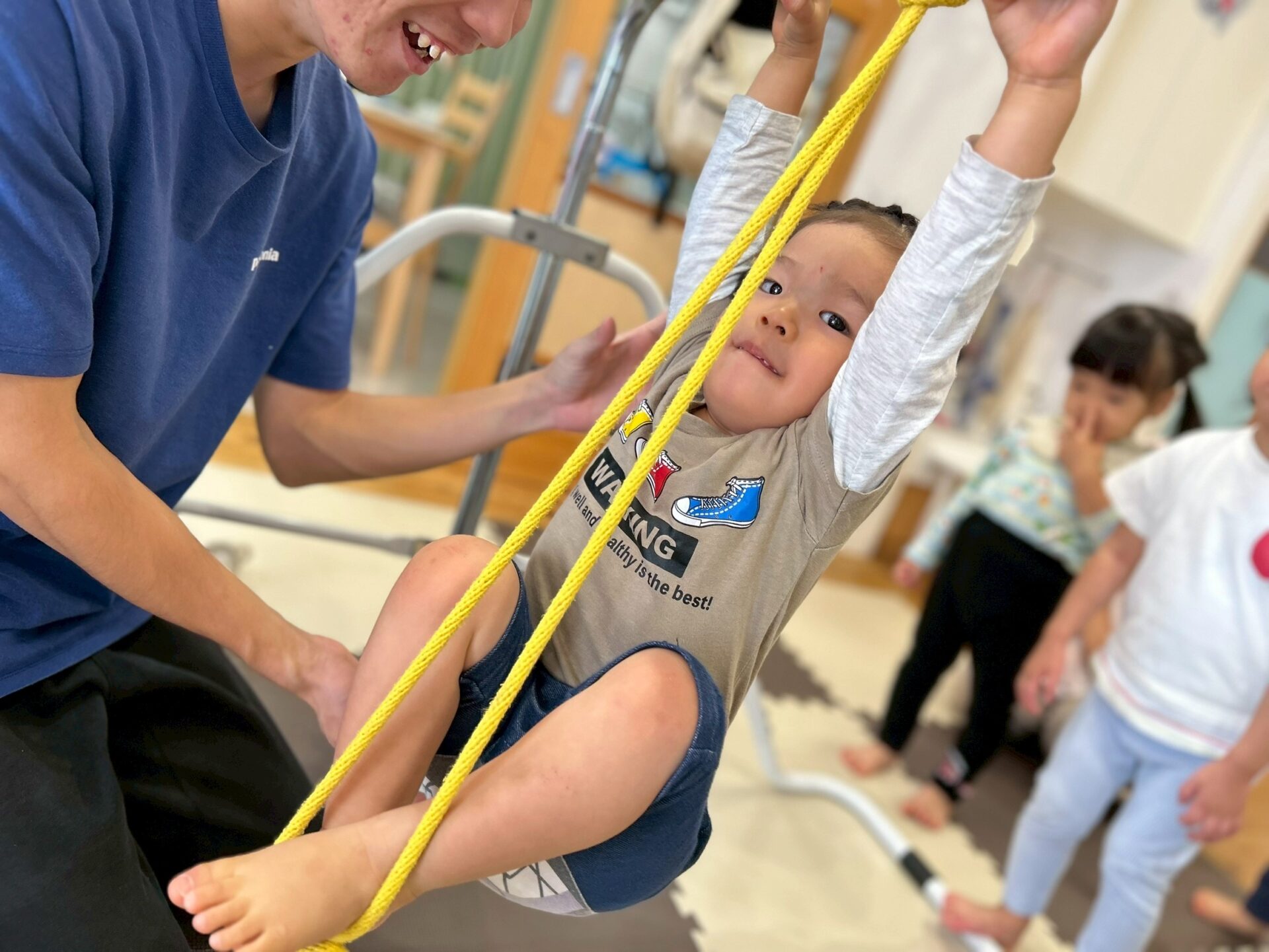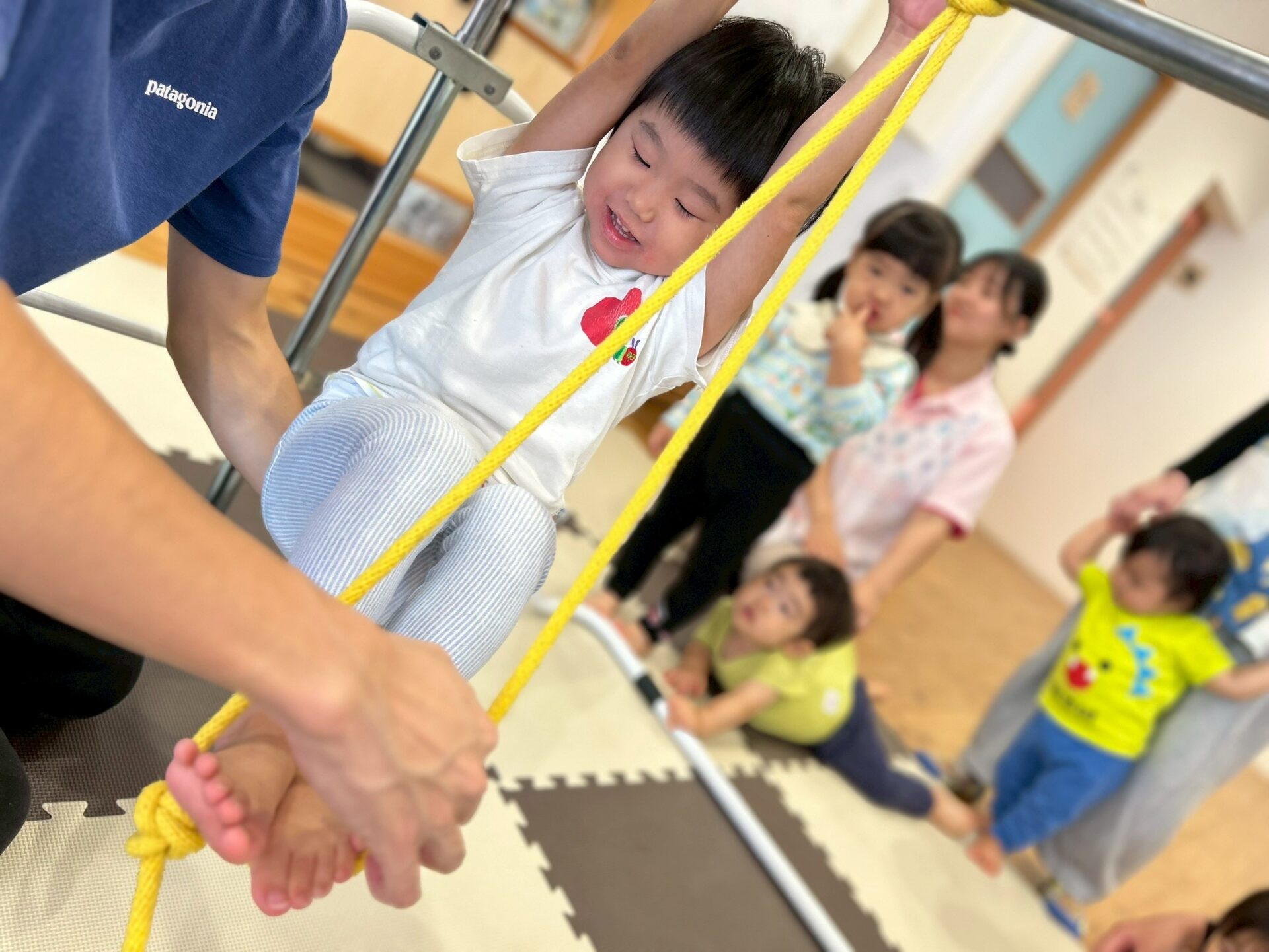 そして鉄棒に縄を括ってぶらぶら〜とぶら下がったり、縄に当たらないように潜ったりしてたくさん体を動かしました💪✨