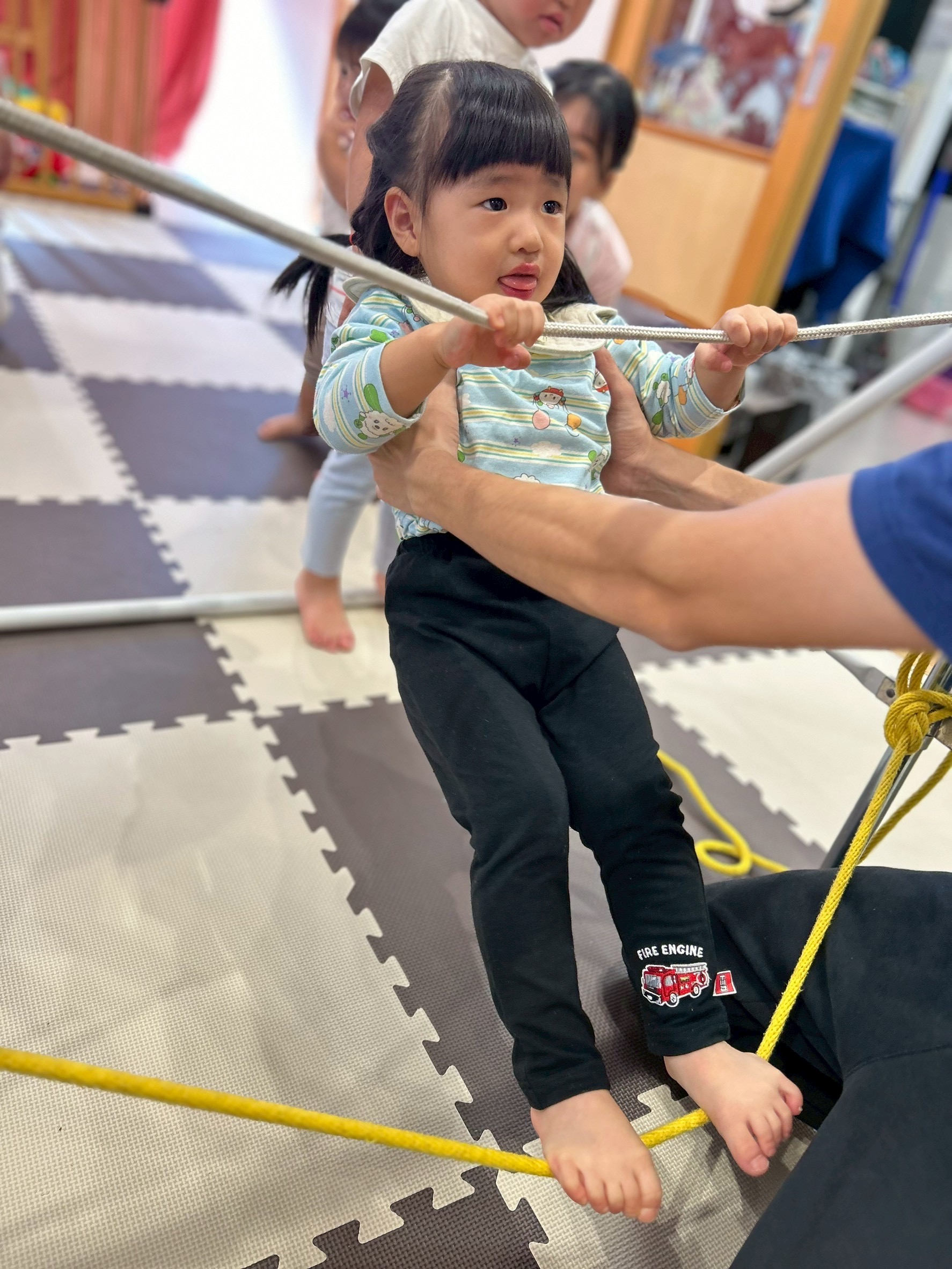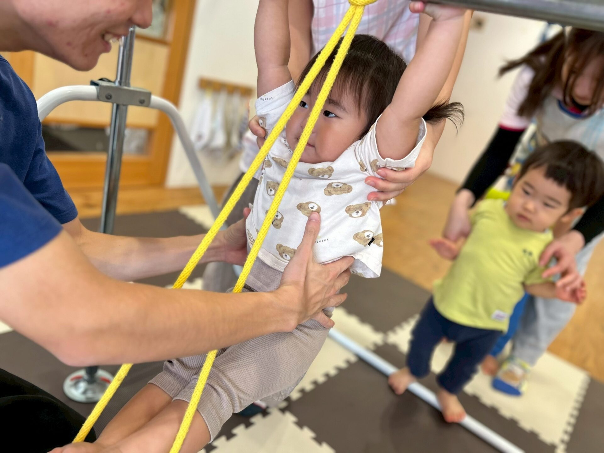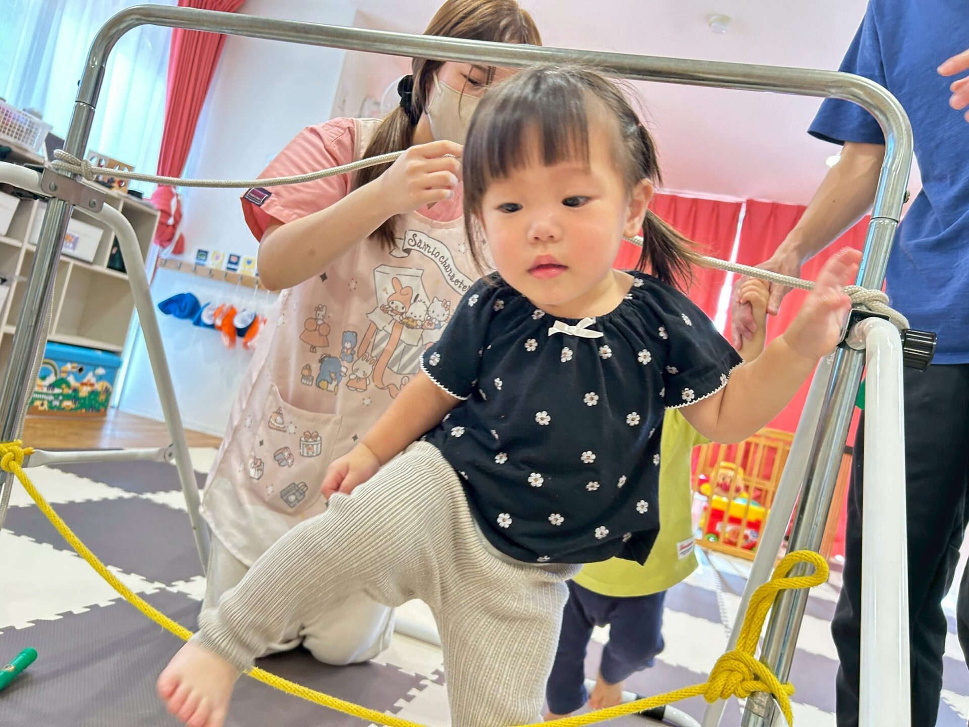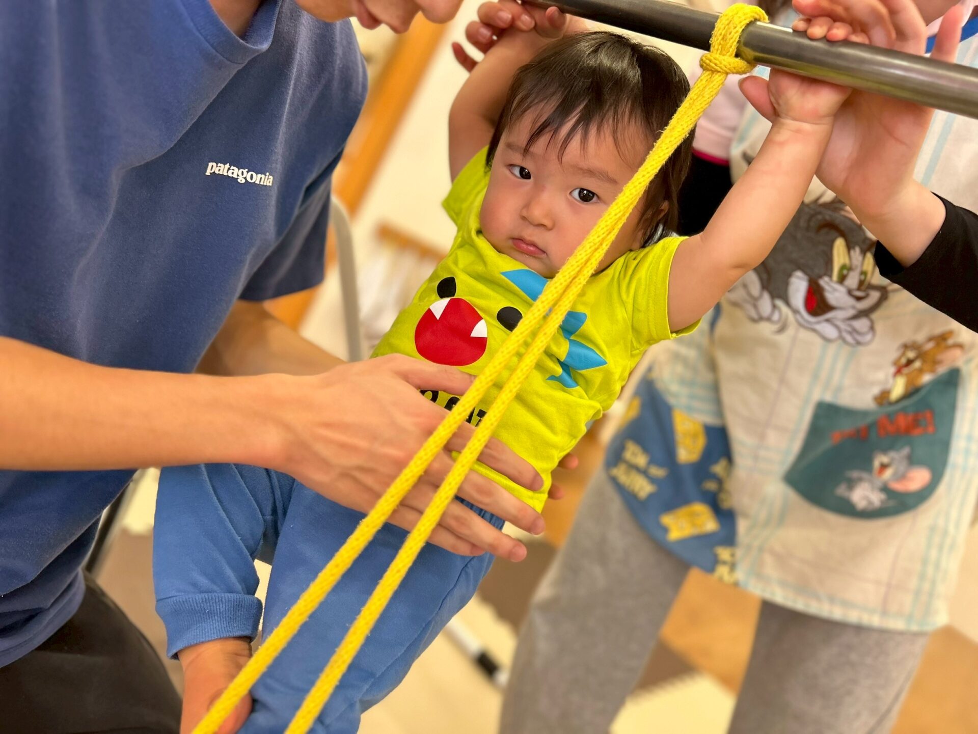 そして鉄棒に縄を括ってぶらぶら〜とぶら下がったり、縄に当たらないように潜ったりしてたくさん体を動かしました💪✨