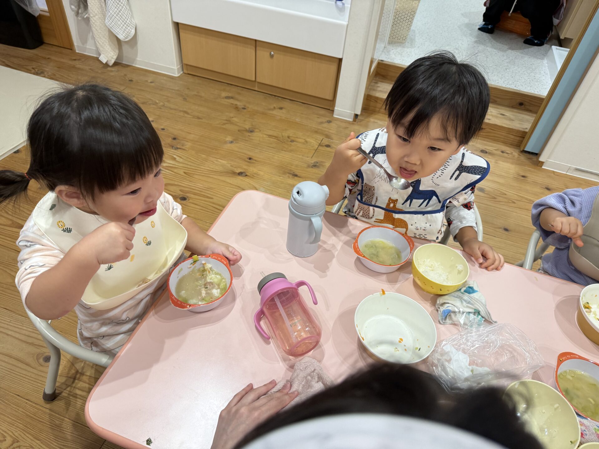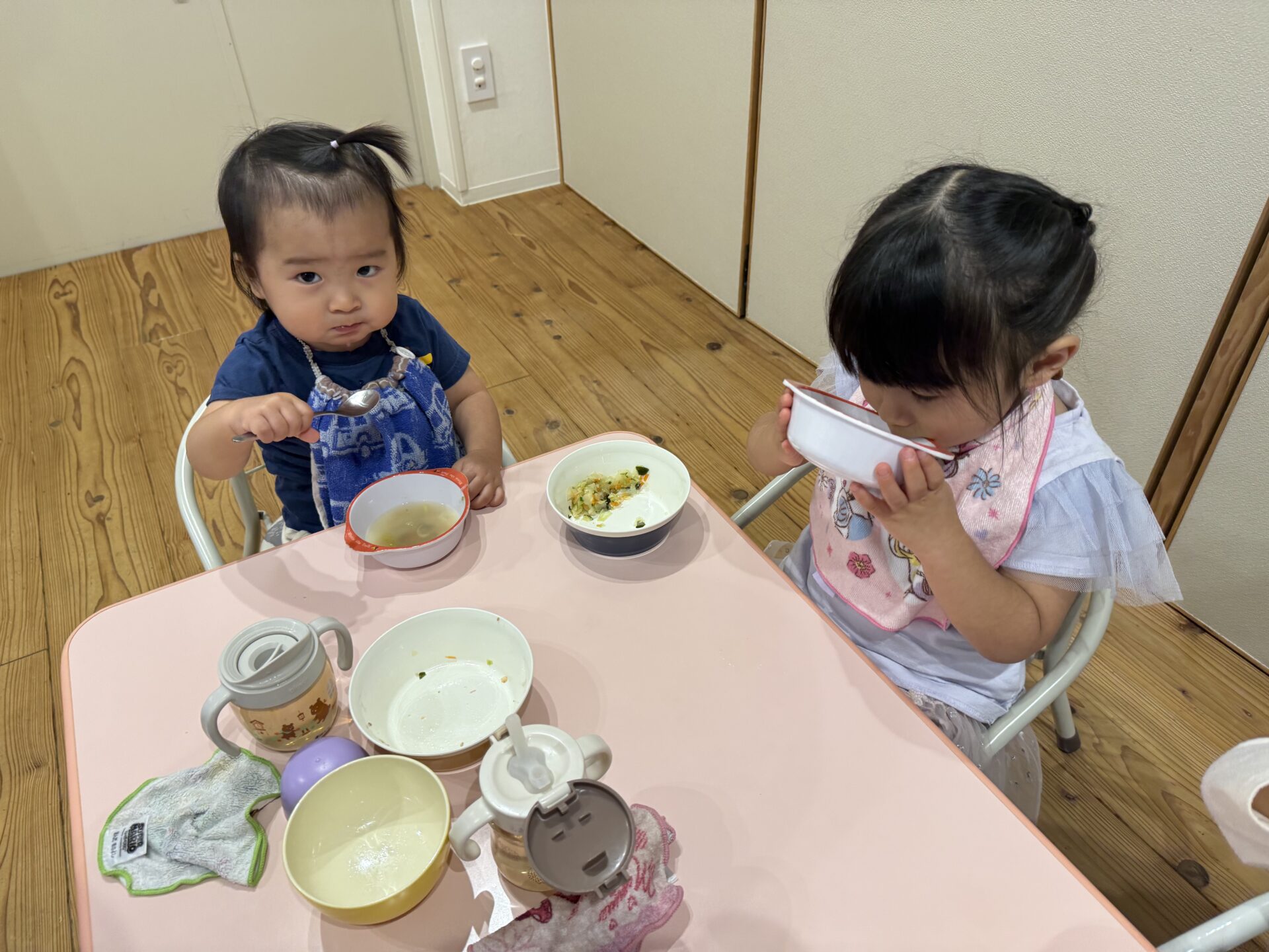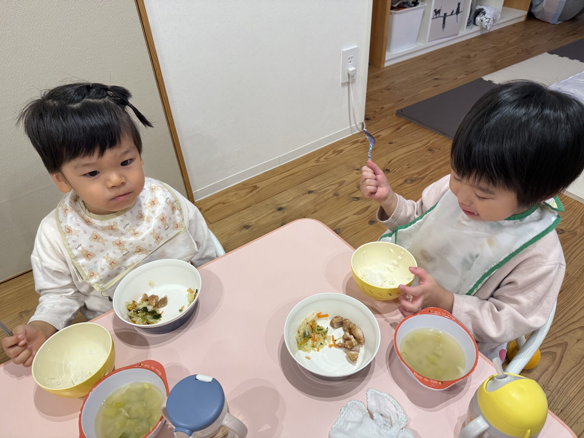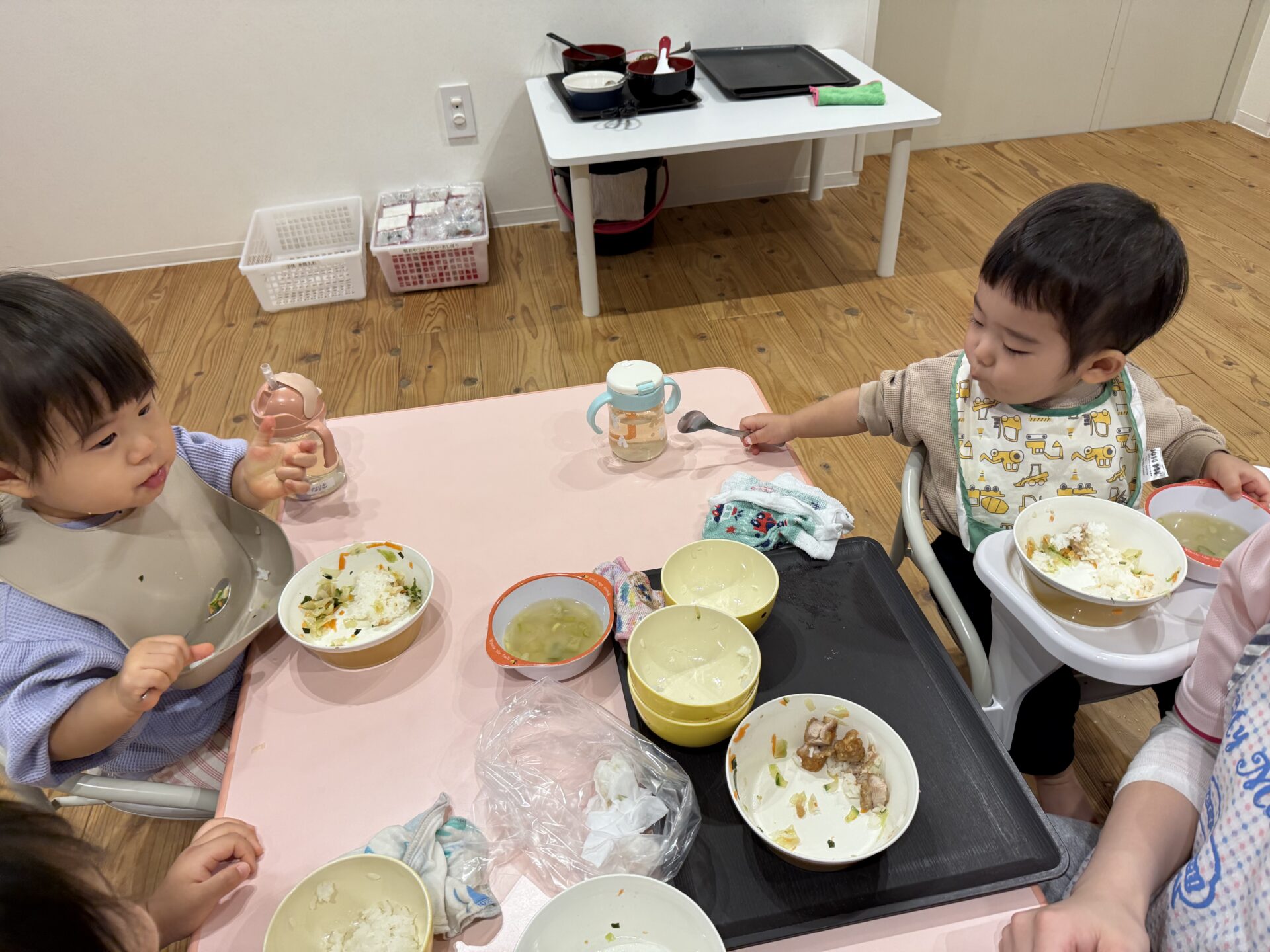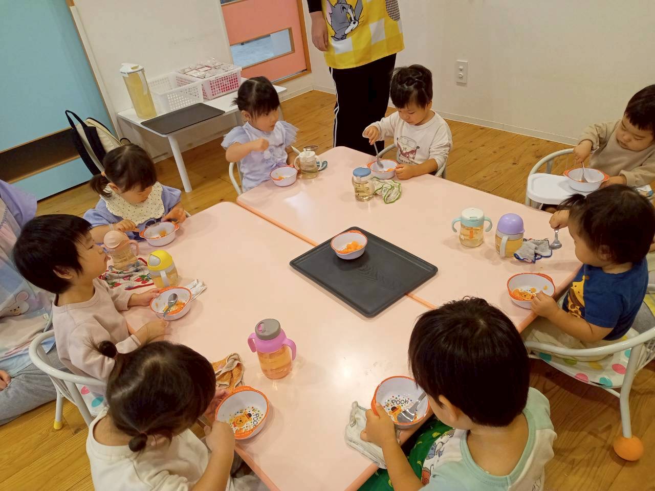 たくさん遊んだ後は嬉しい給食の時間😋❤️