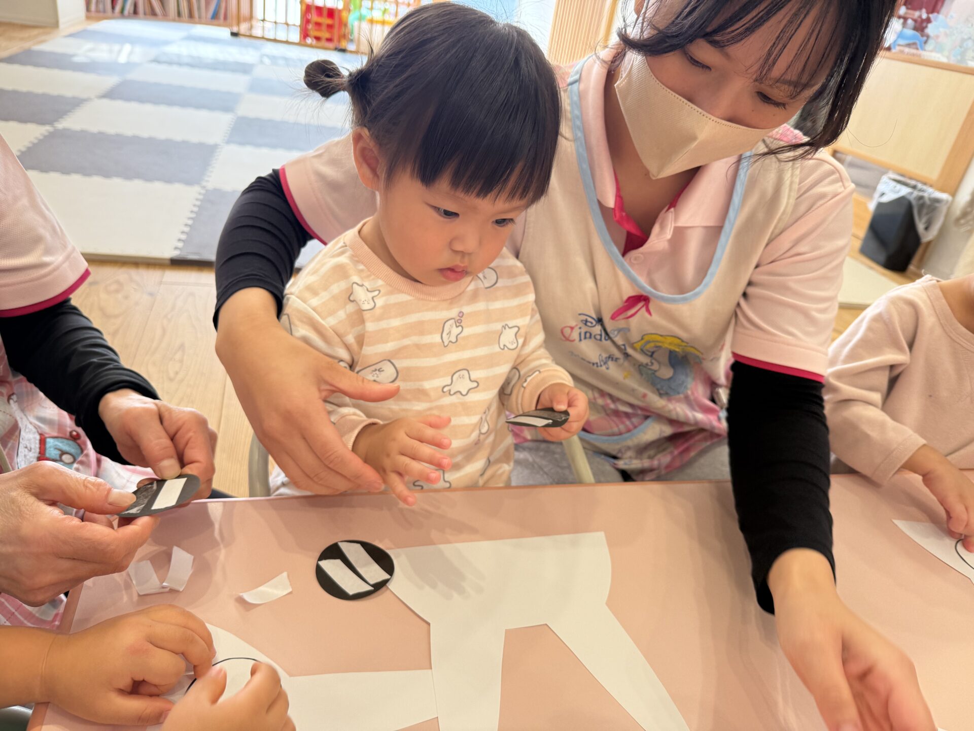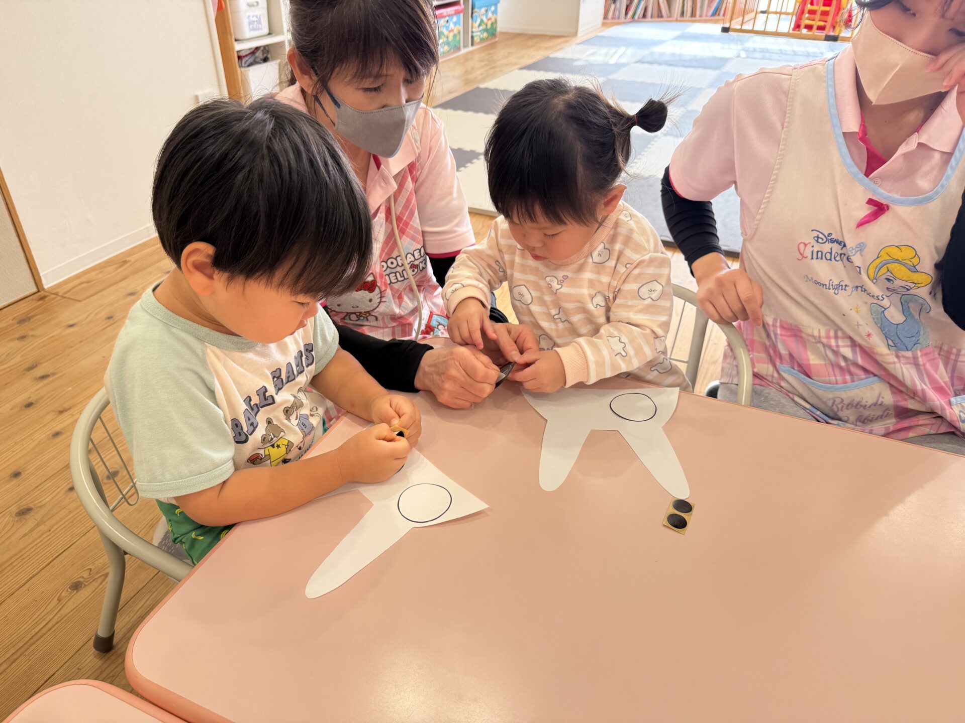 今日は運動会の競技で使う、トトロの製作をしました😊皆で小トトロの目を貼ってお面を作りましたよ〜🤭💕