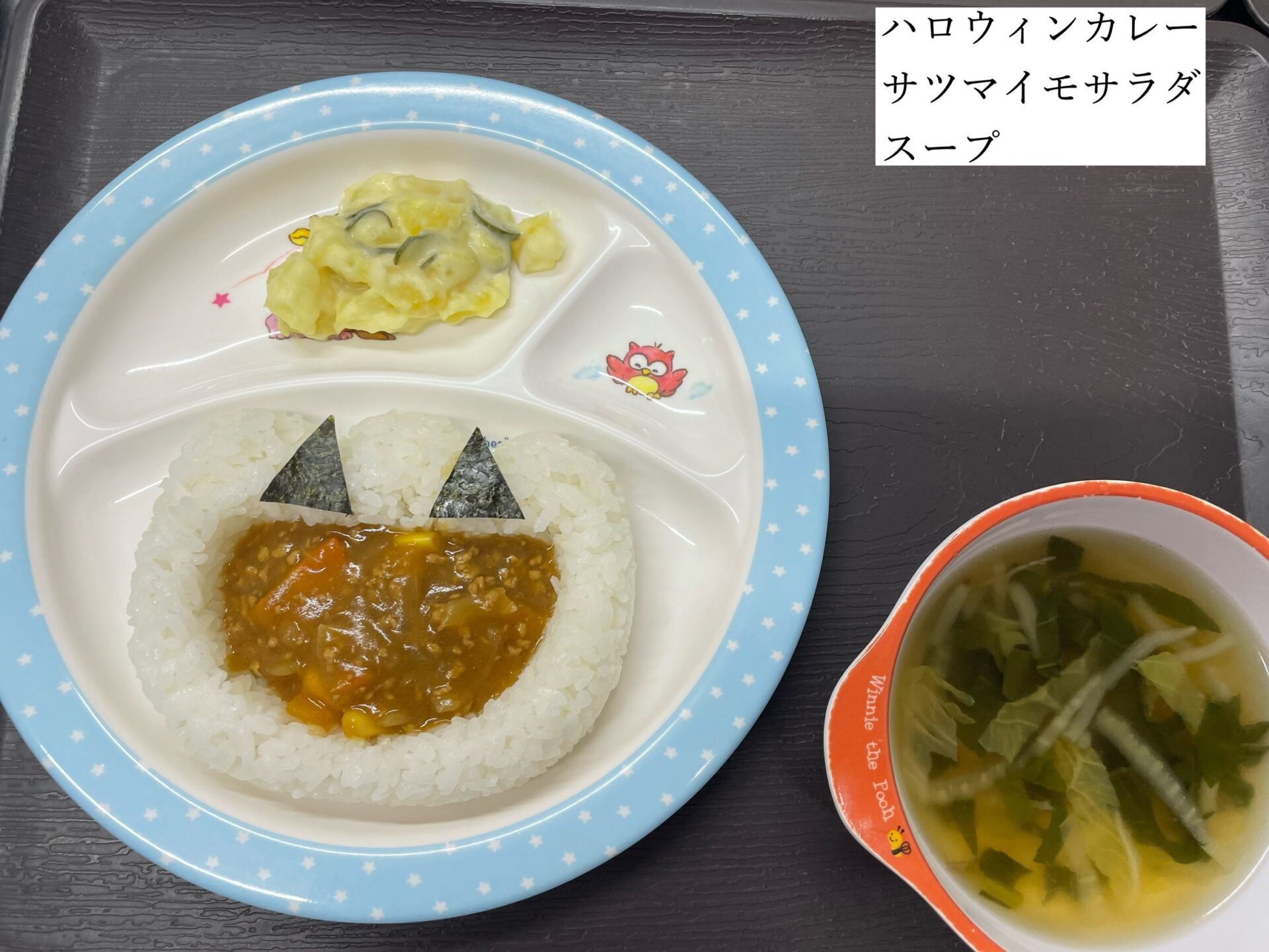 帰ったら給食の時間🍴今日はハロウィン仕様のご飯に大興奮⸜(* ॑꒳ ॑* )⸝