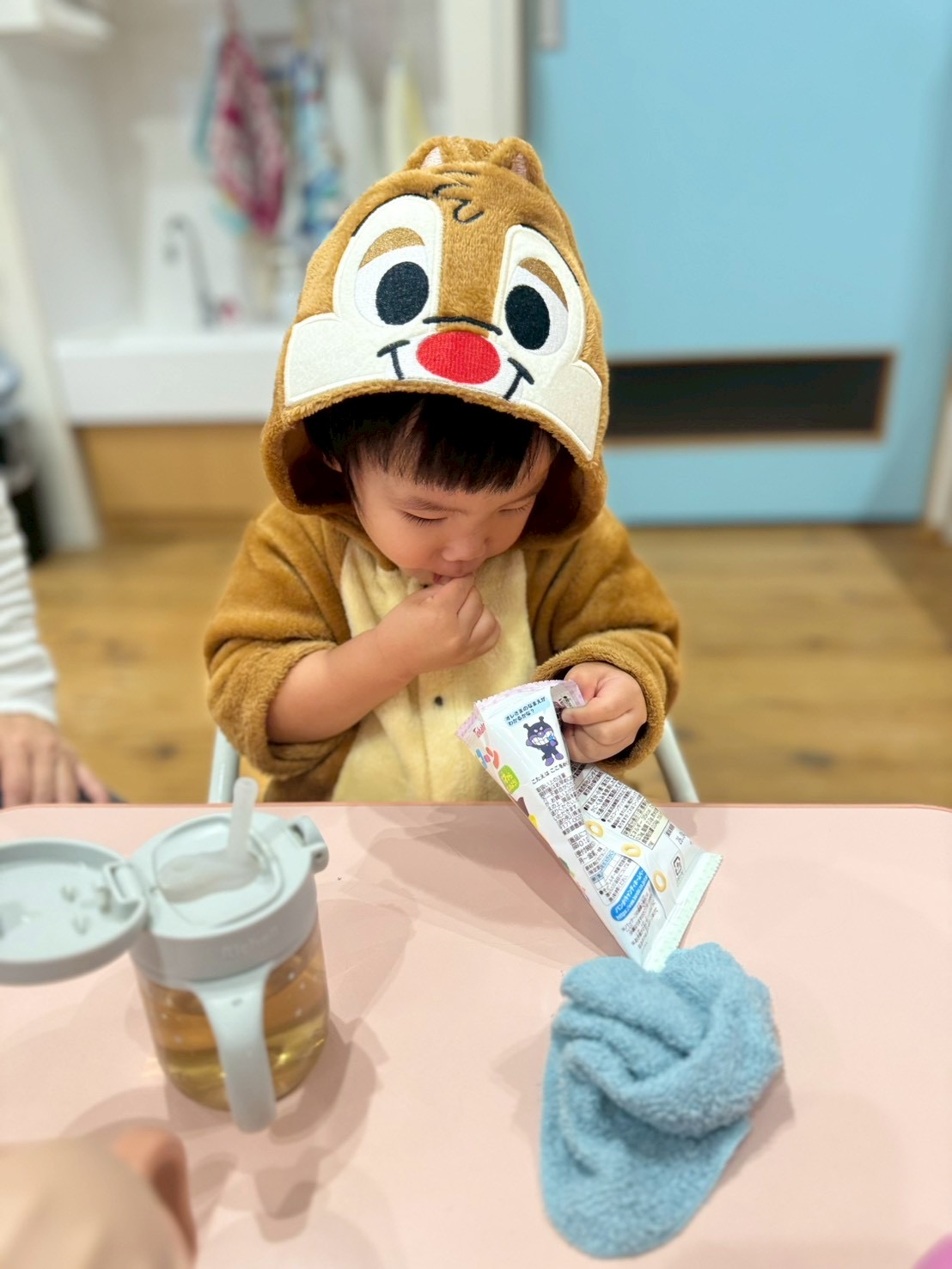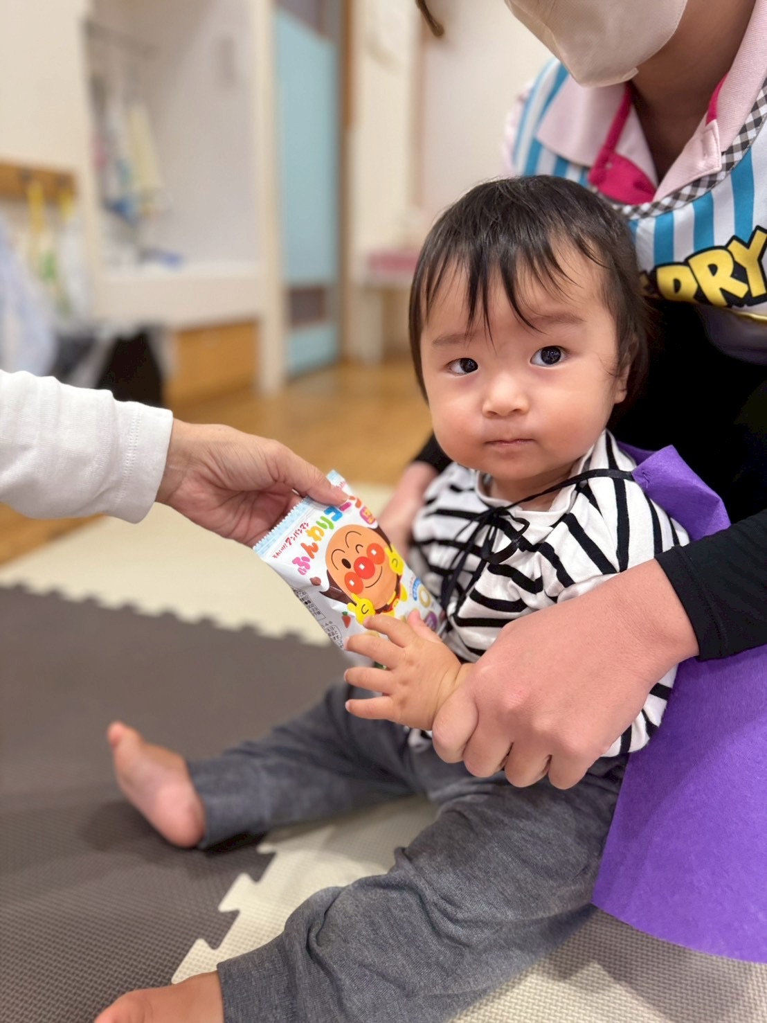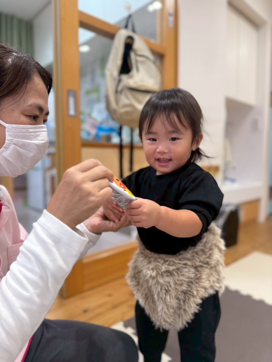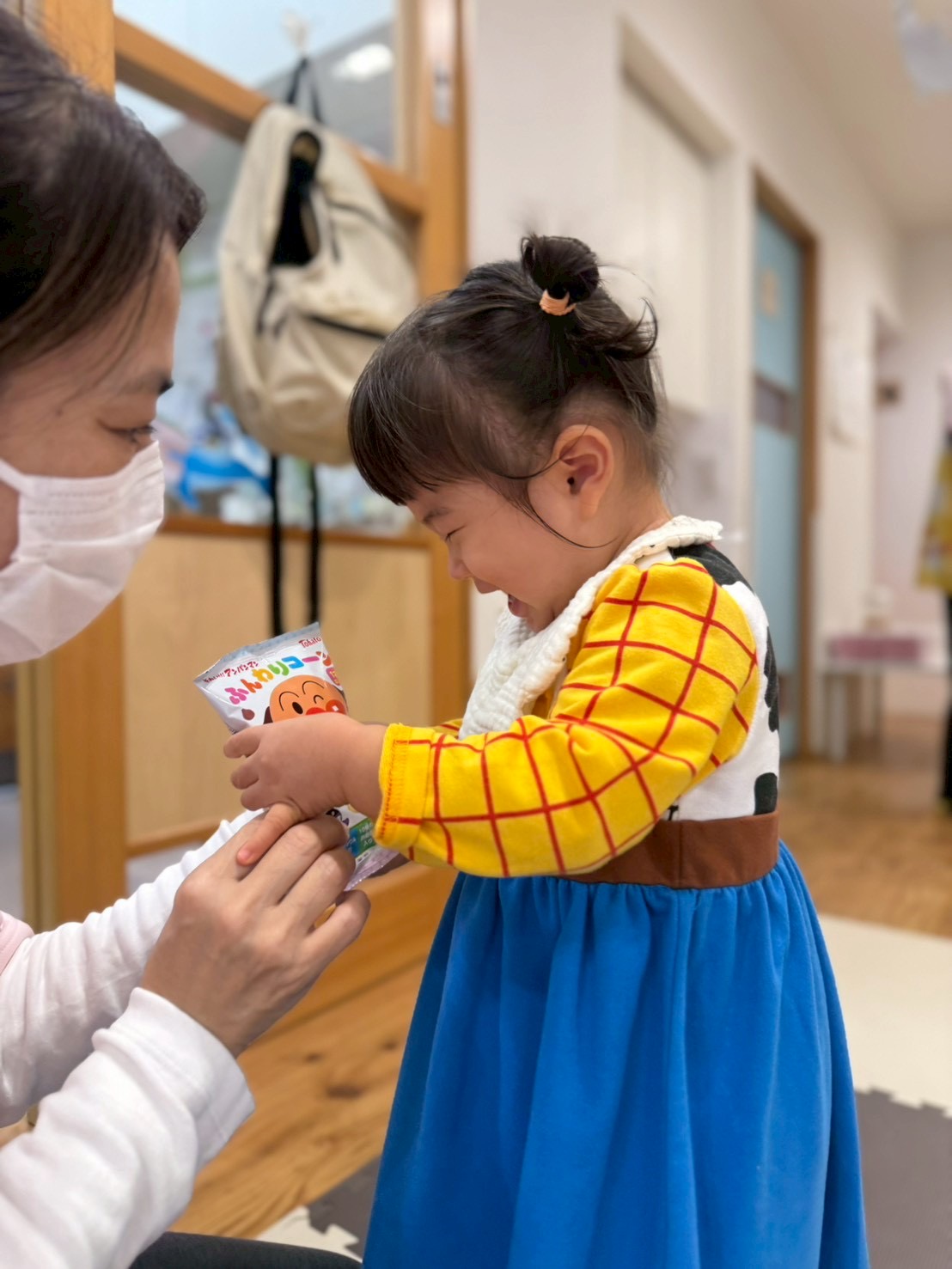 大きな声で伝えたり、先生と一緒に行って耳元で囁いたりと練習通りに言えて、おやつをもらうことができていました🍭︎🎁