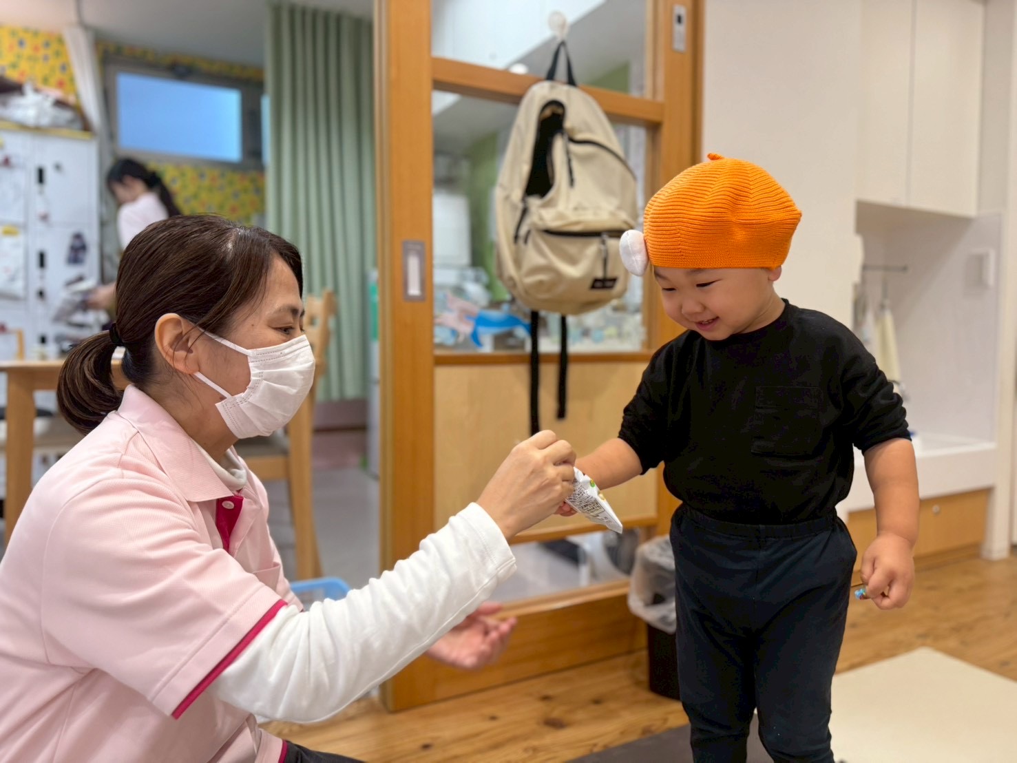 ハイタッチやお菓子のプレゼントで、暖かくお出迎えしてくれました🥰