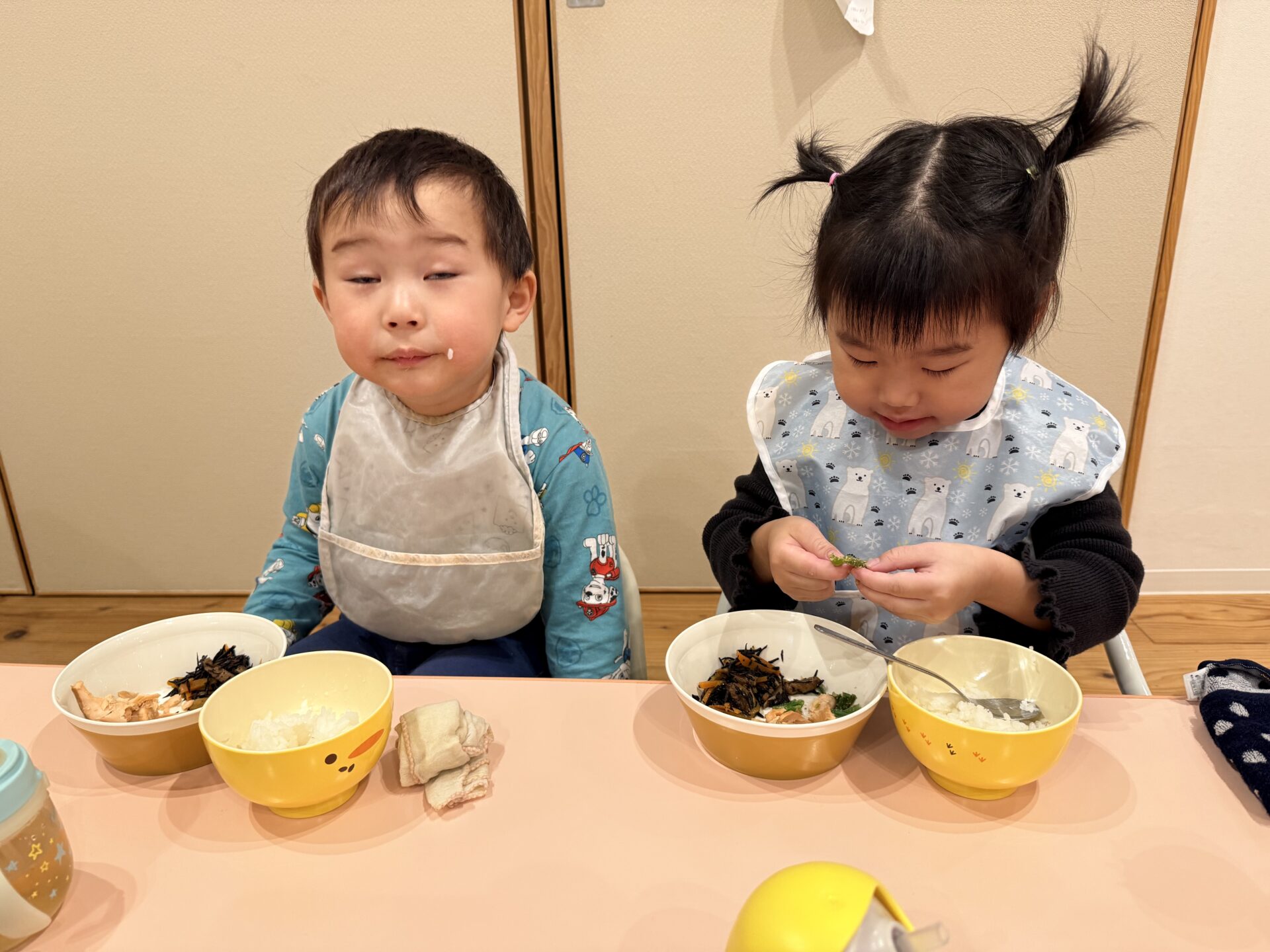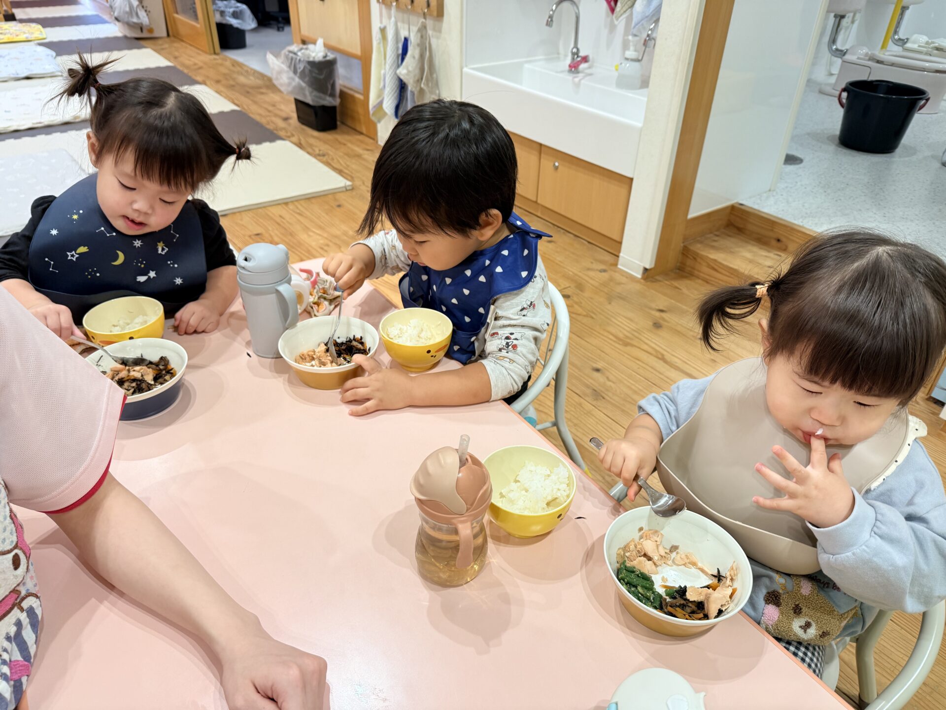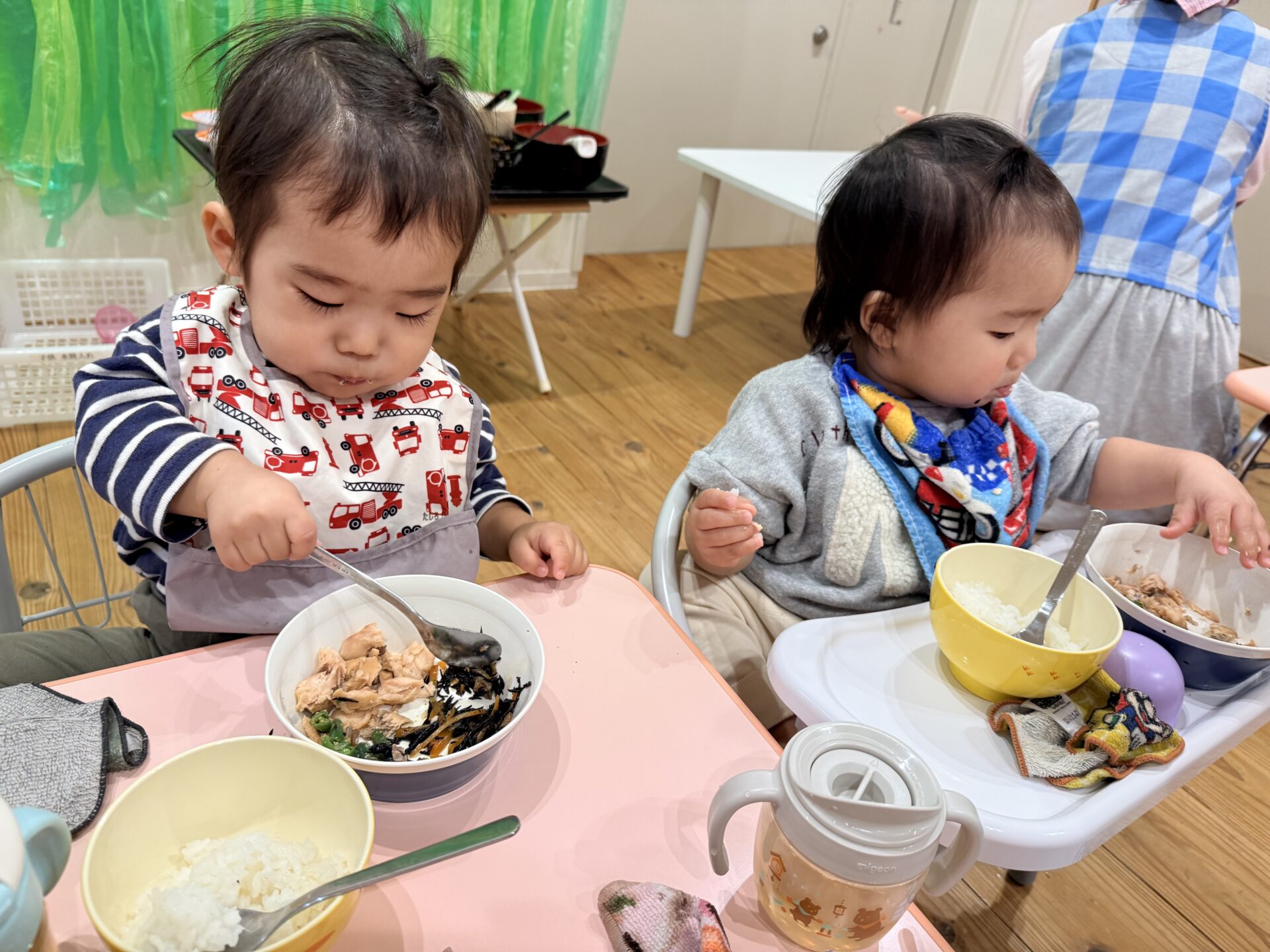 いっぱい遊んだ後は嬉しい給食の時間😋❤️