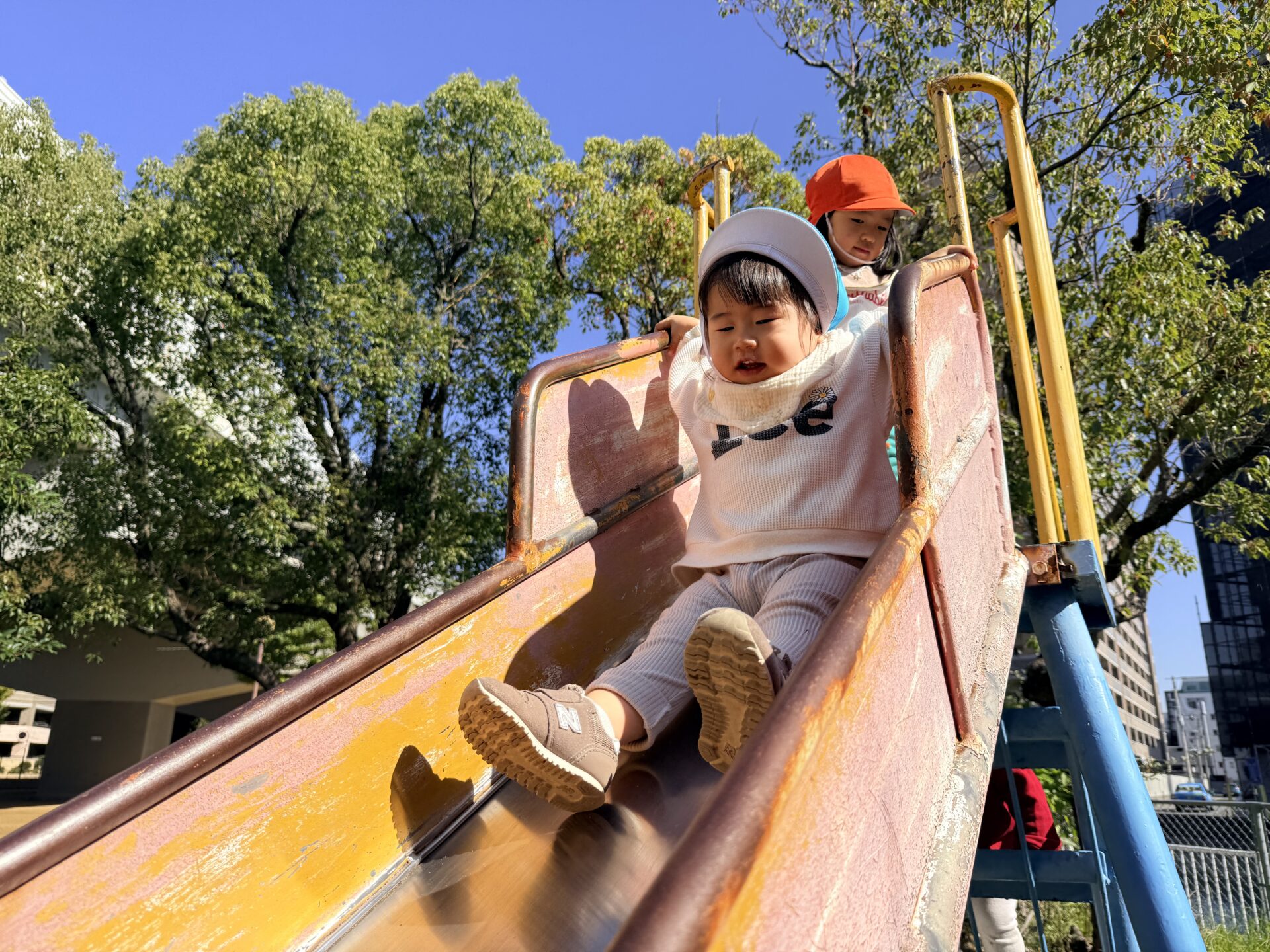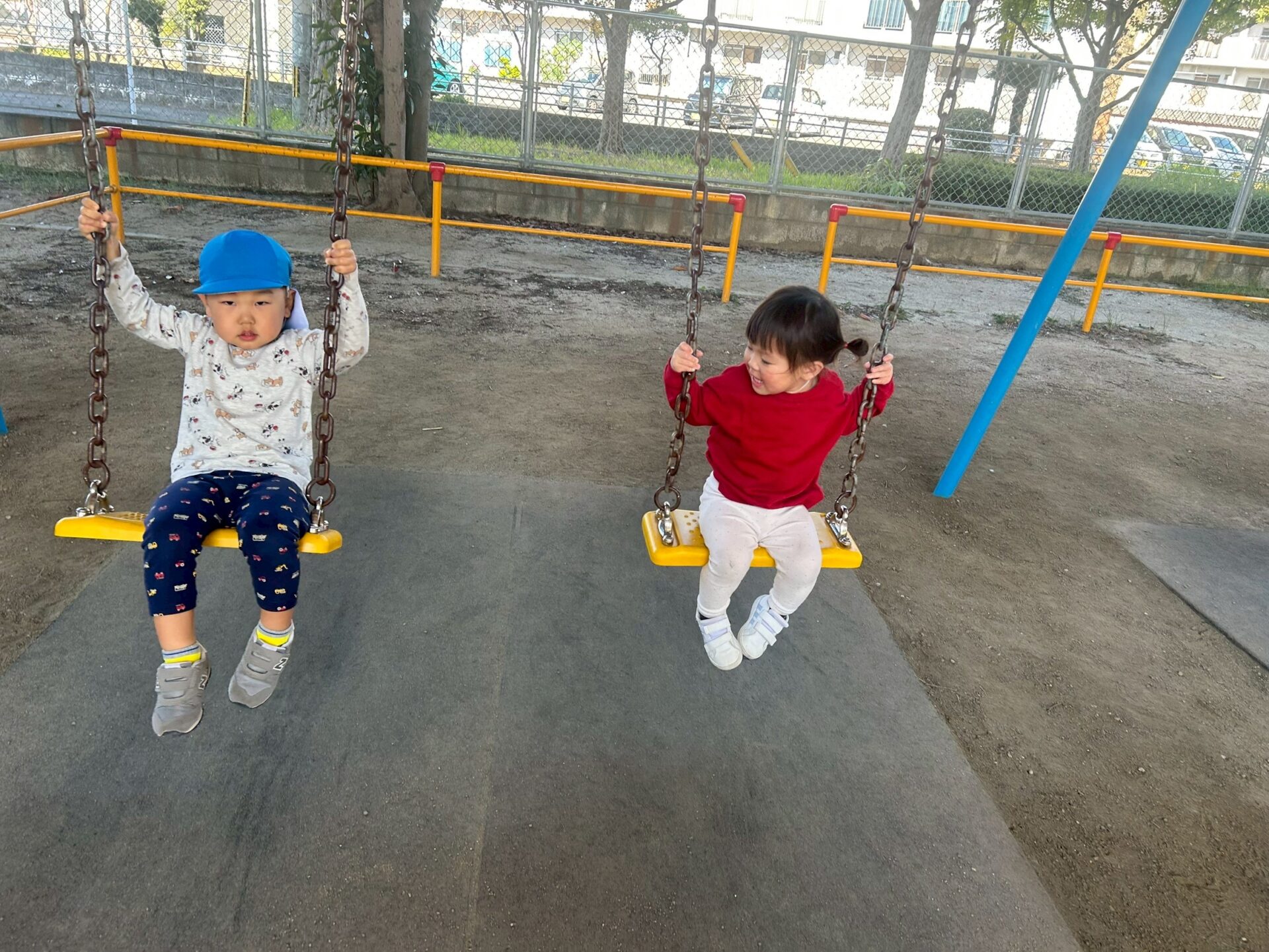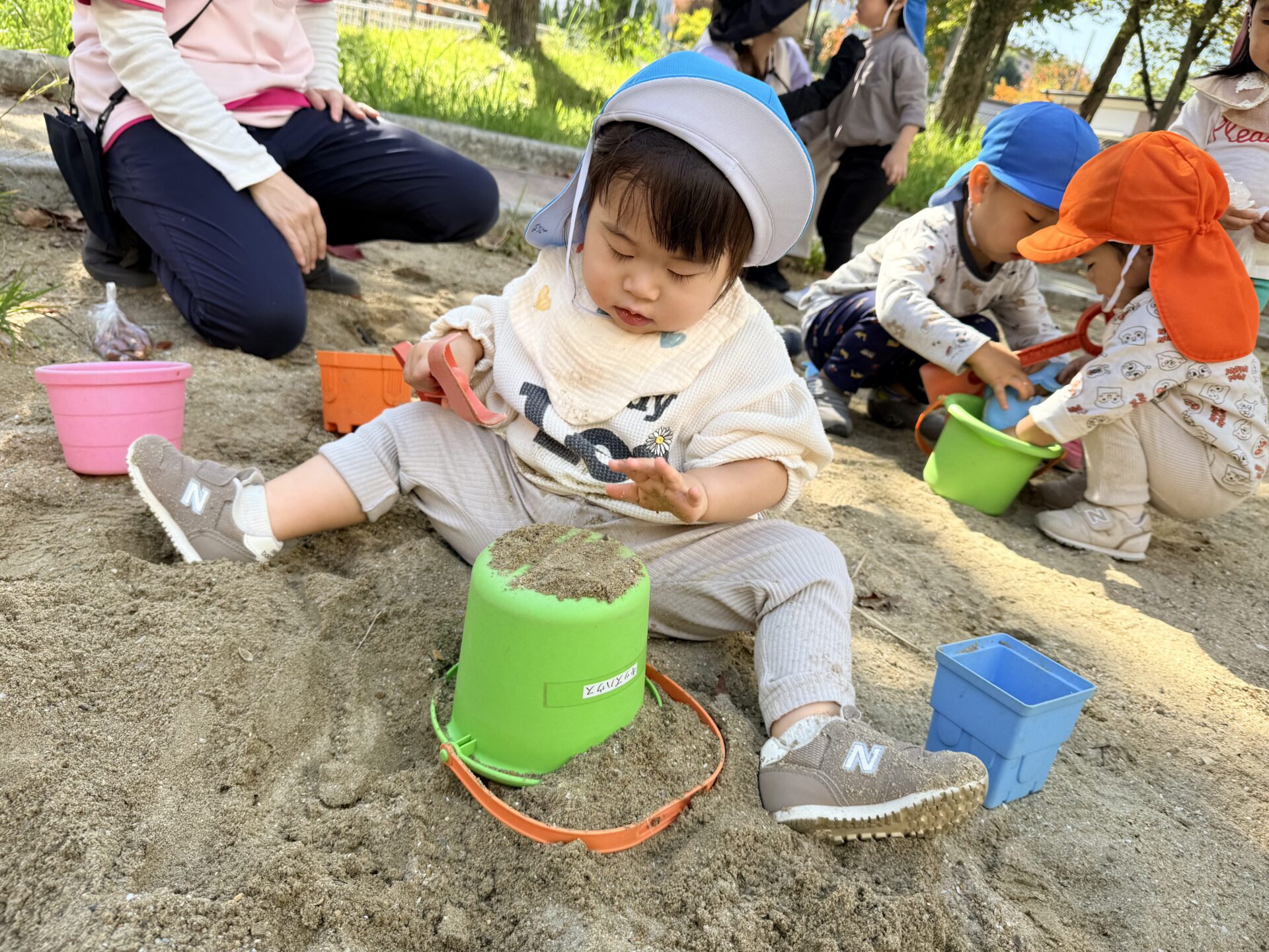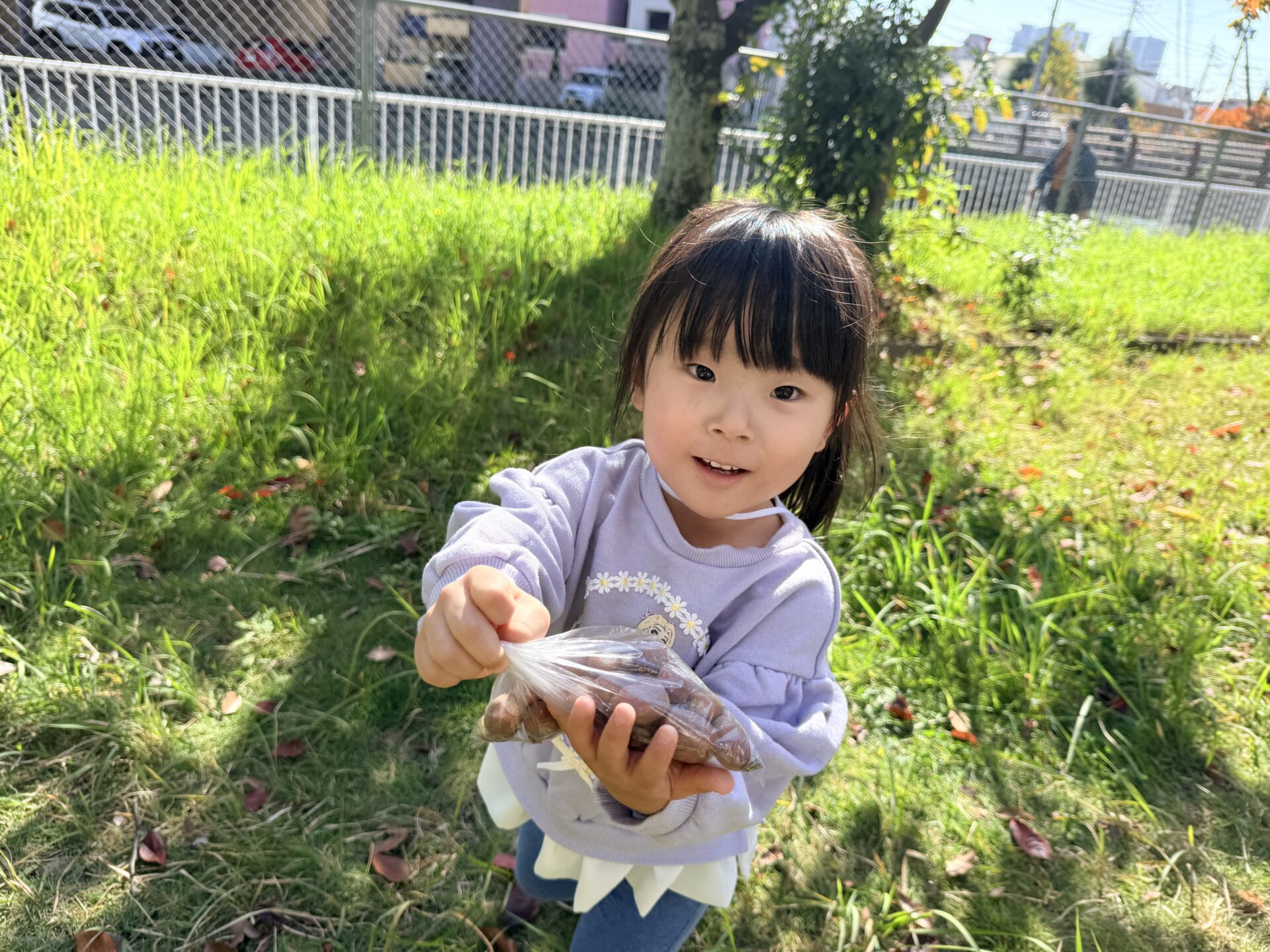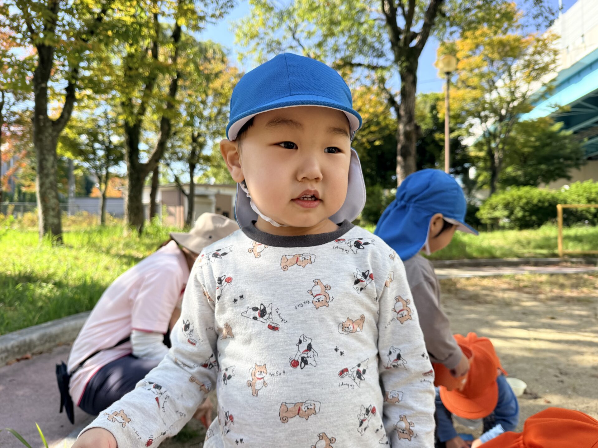 公園では砂遊びやすべり台、ブランコ、木の実探しなど好きな遊びを見つけて楽しんでいた子ども達です😁🎶