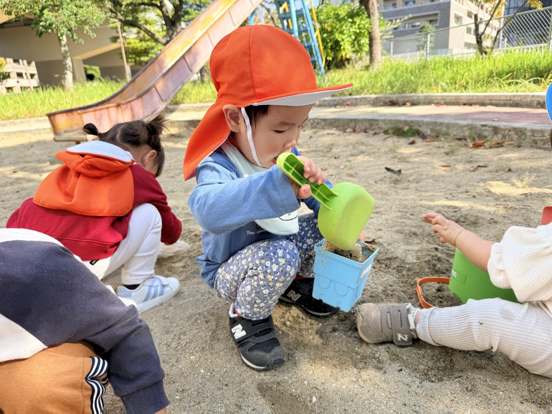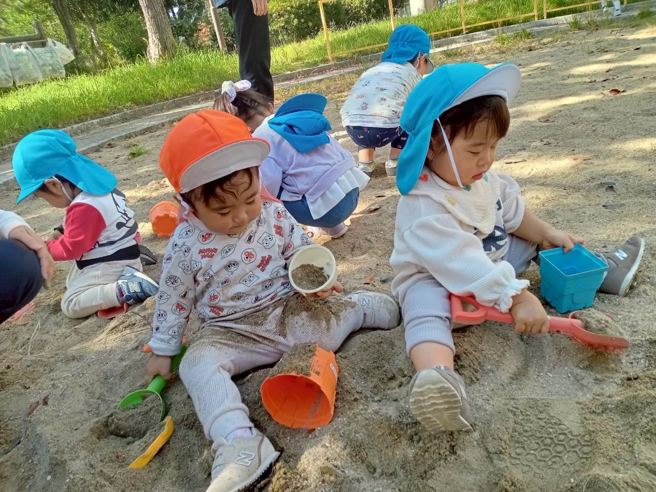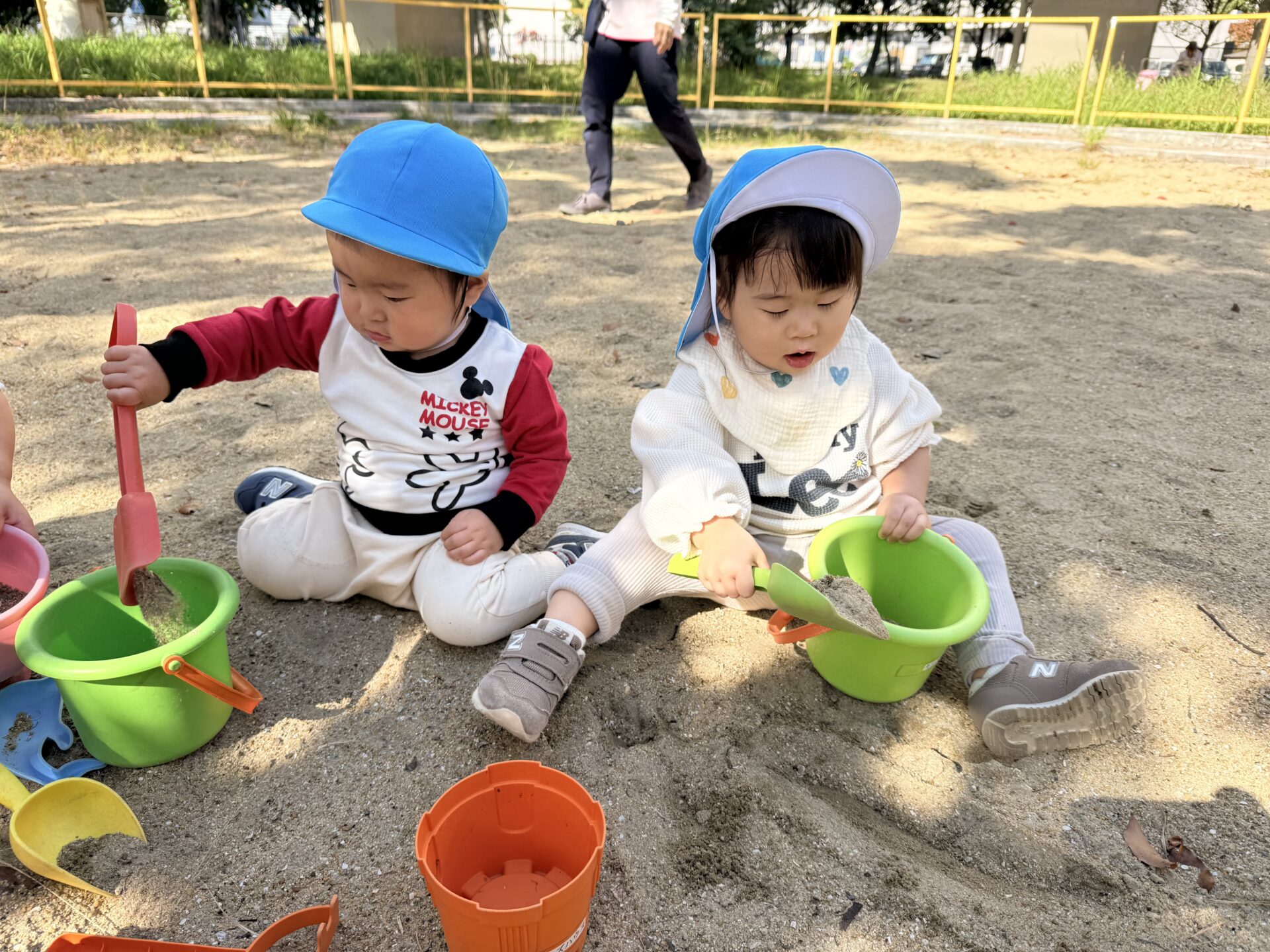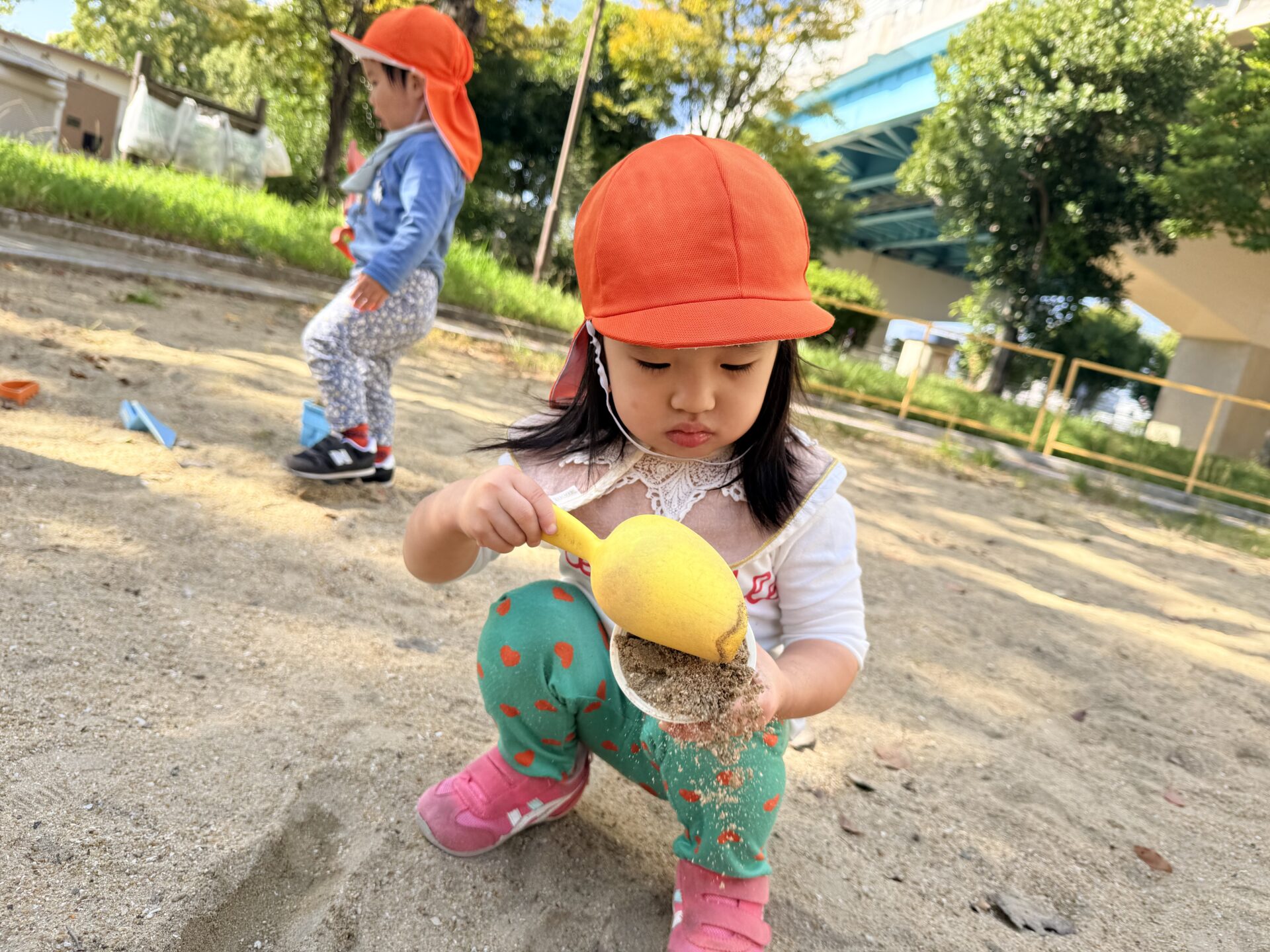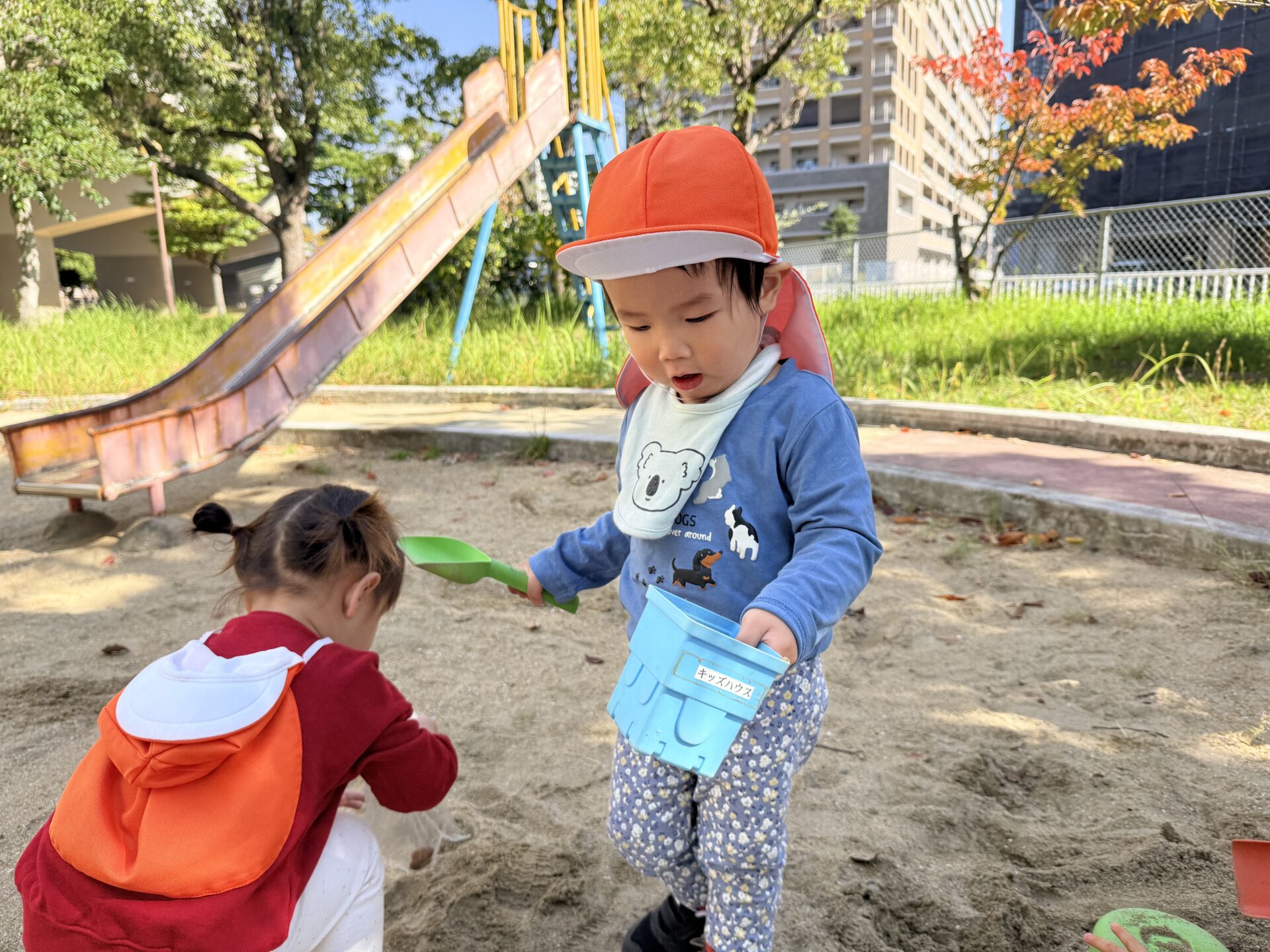 公園では砂遊びやすべり台、ブランコ、木の実探しなど好きな遊びを見つけて楽しんでいた子ども達です😁🎶