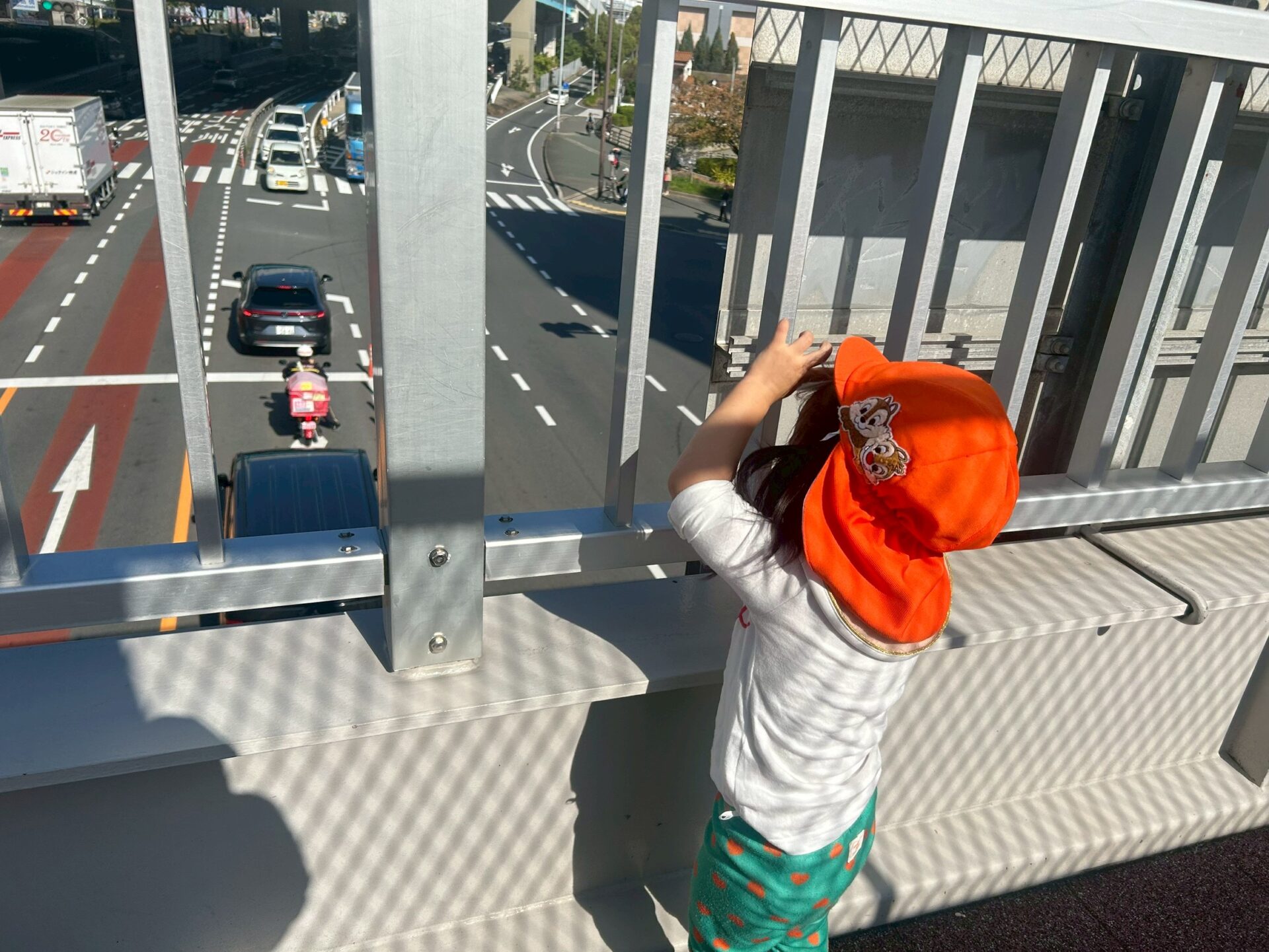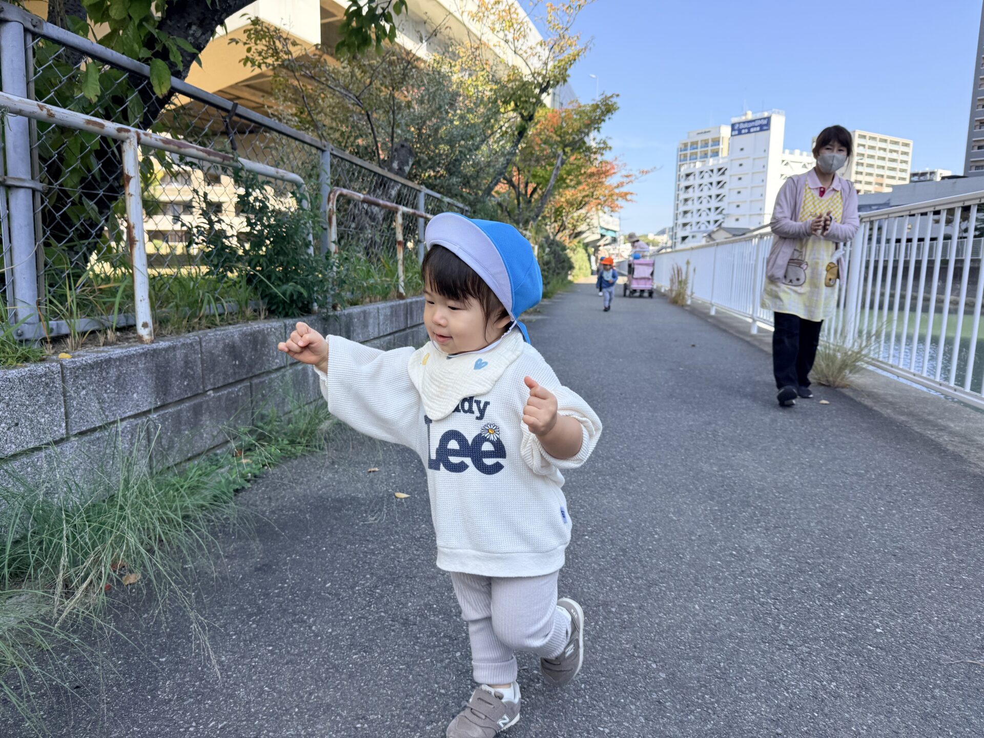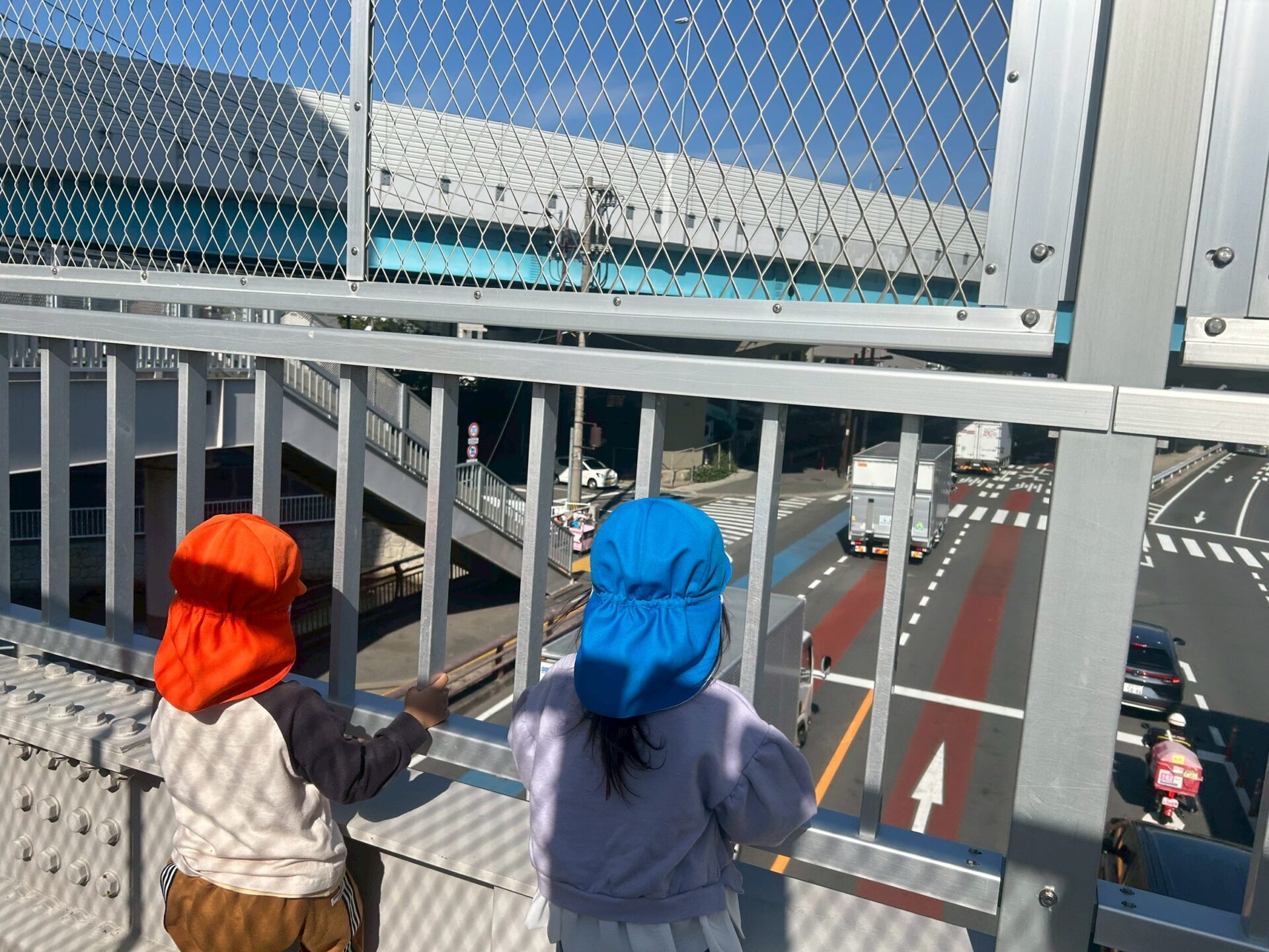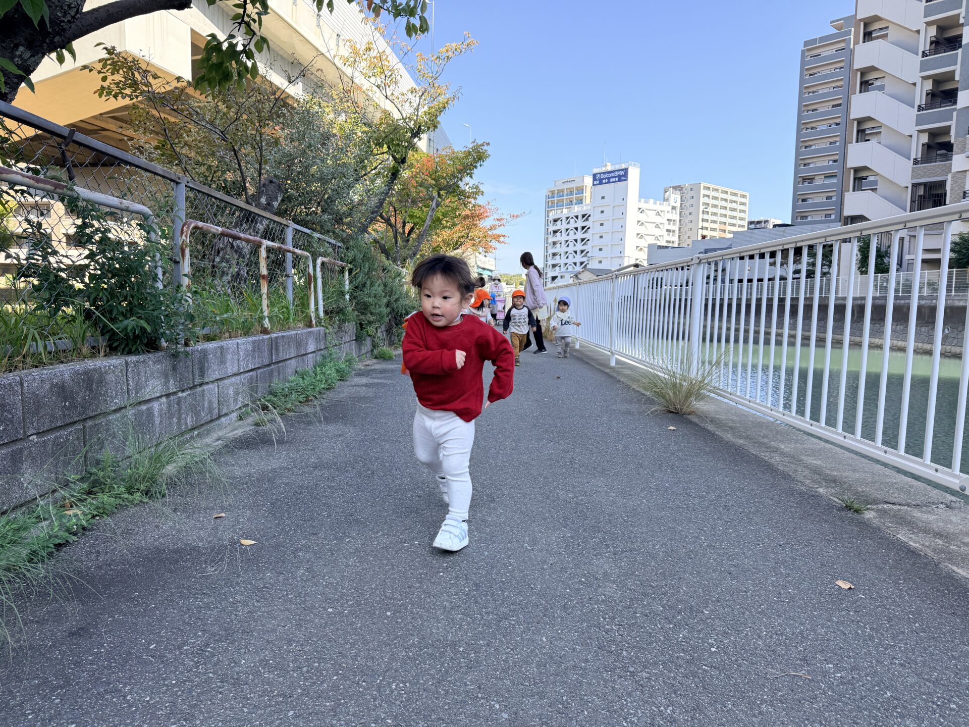歩道橋を渡ってから、直線をみんなでよーいどん🏃♀️✨「きゃー😆」と言いながらお友達や先生と走ってニコニコな子ども達でした❤️