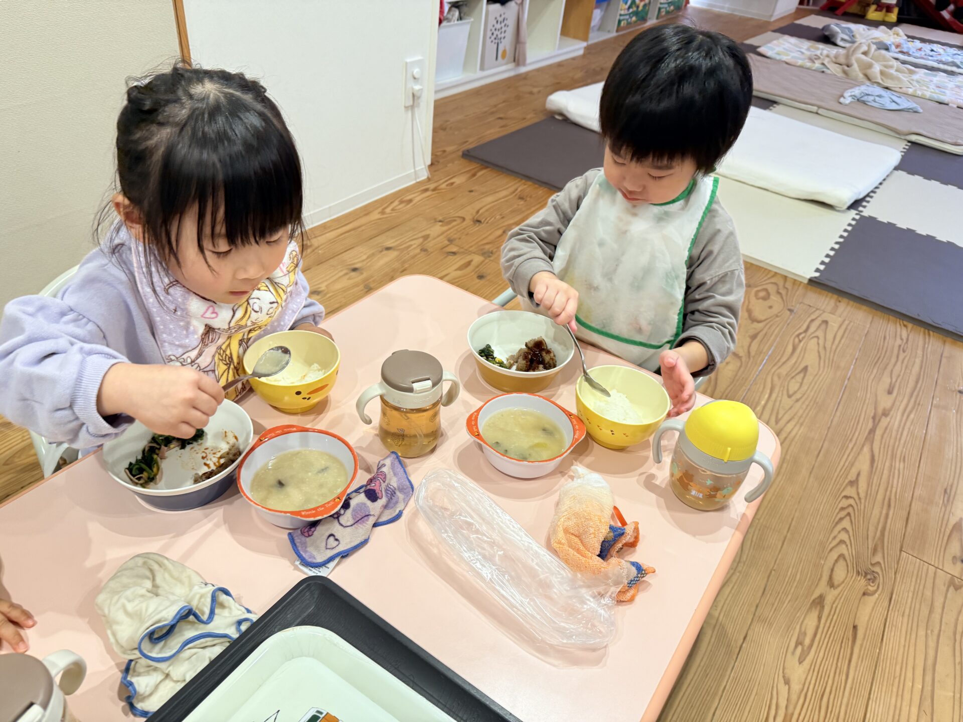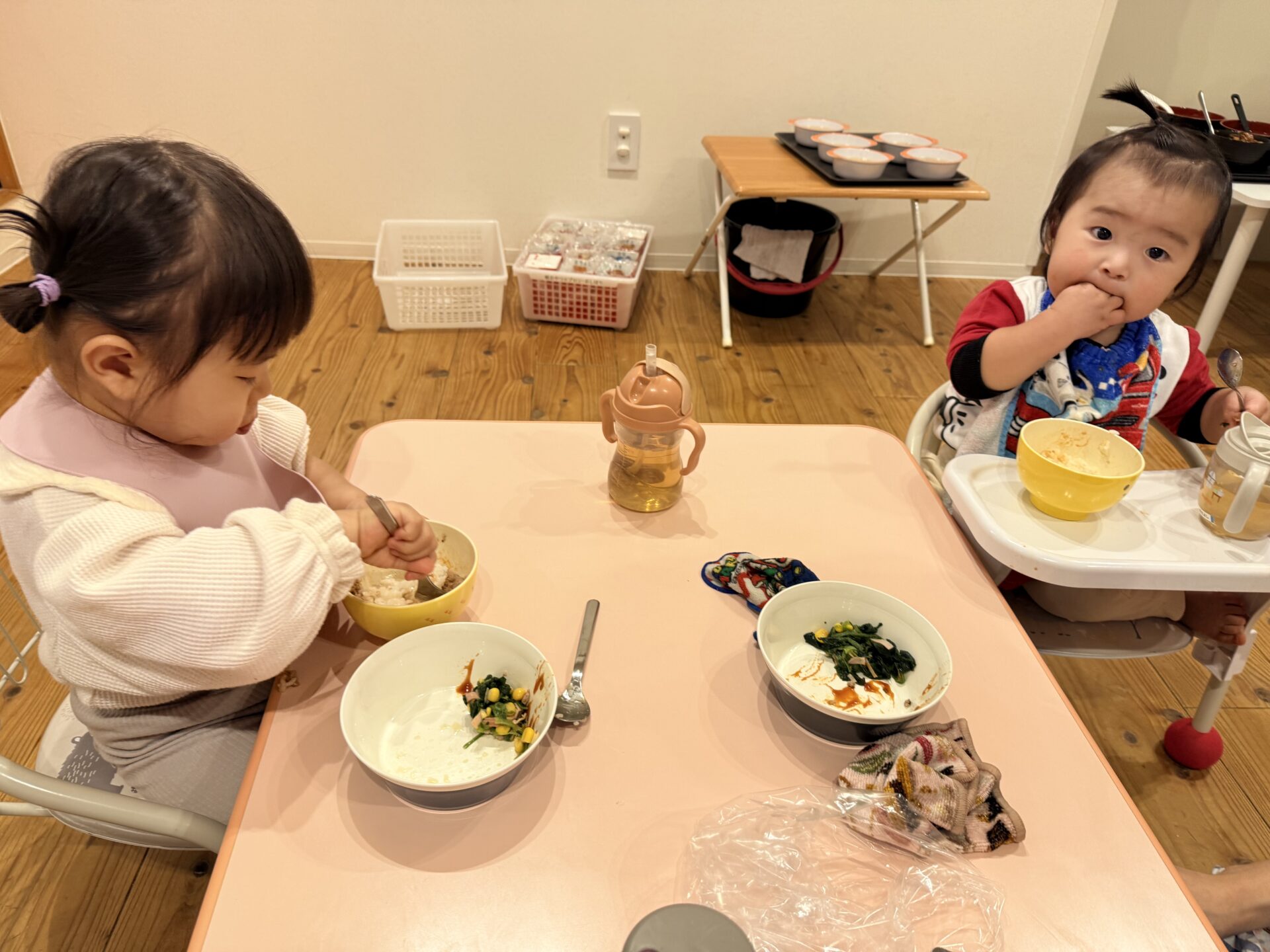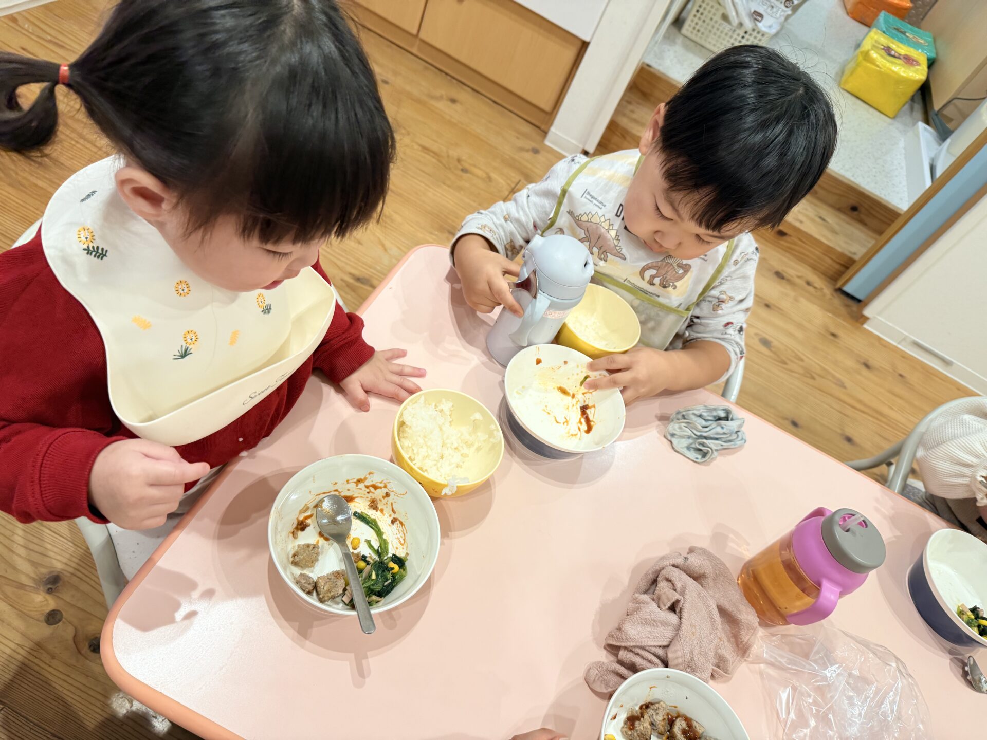 たくさん遊んだ後は嬉しい給食の時間😋❤️