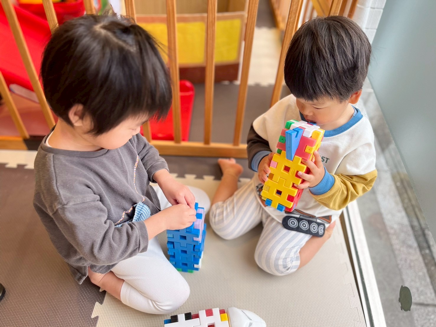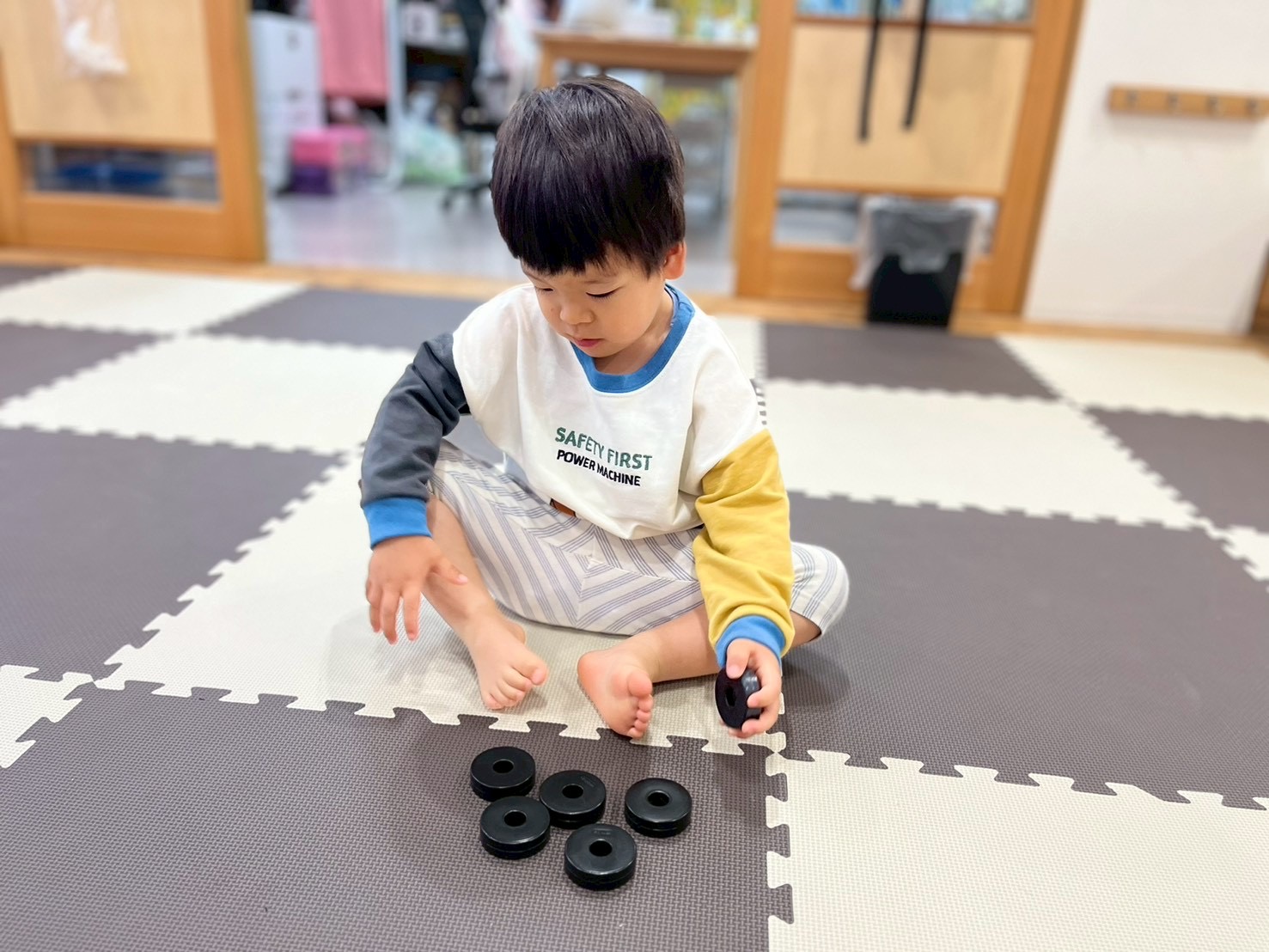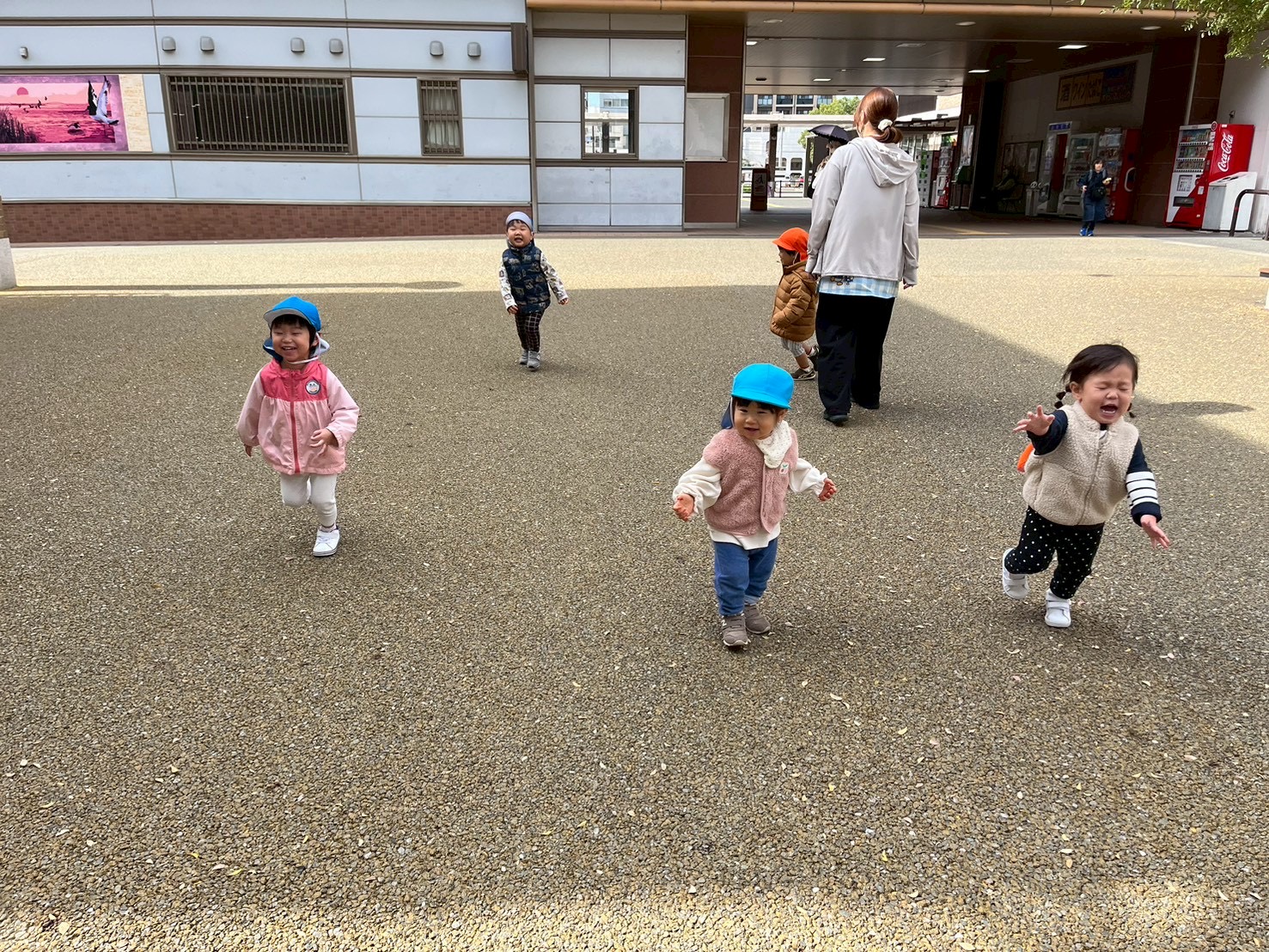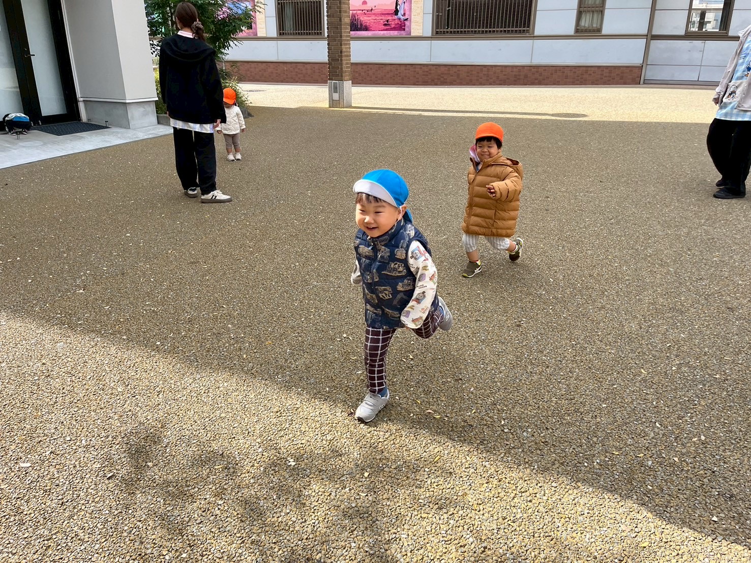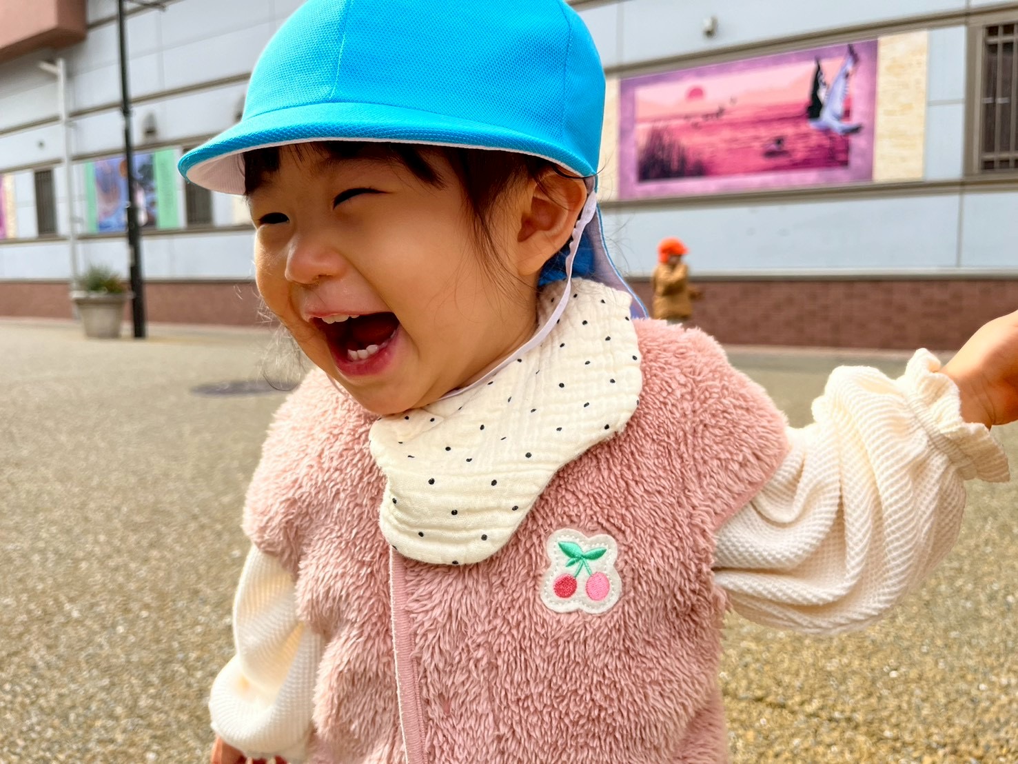 次にタンバリンを使って走ったり、つま先で歩いたり、止まったり。。「きゃー😆」と言いながらとても楽しんでいました⸜( *´꒳`*)⸝それから布を使って「ピーカブー」やハイハイなど体をいっぱい動かして楽しみました😊💕