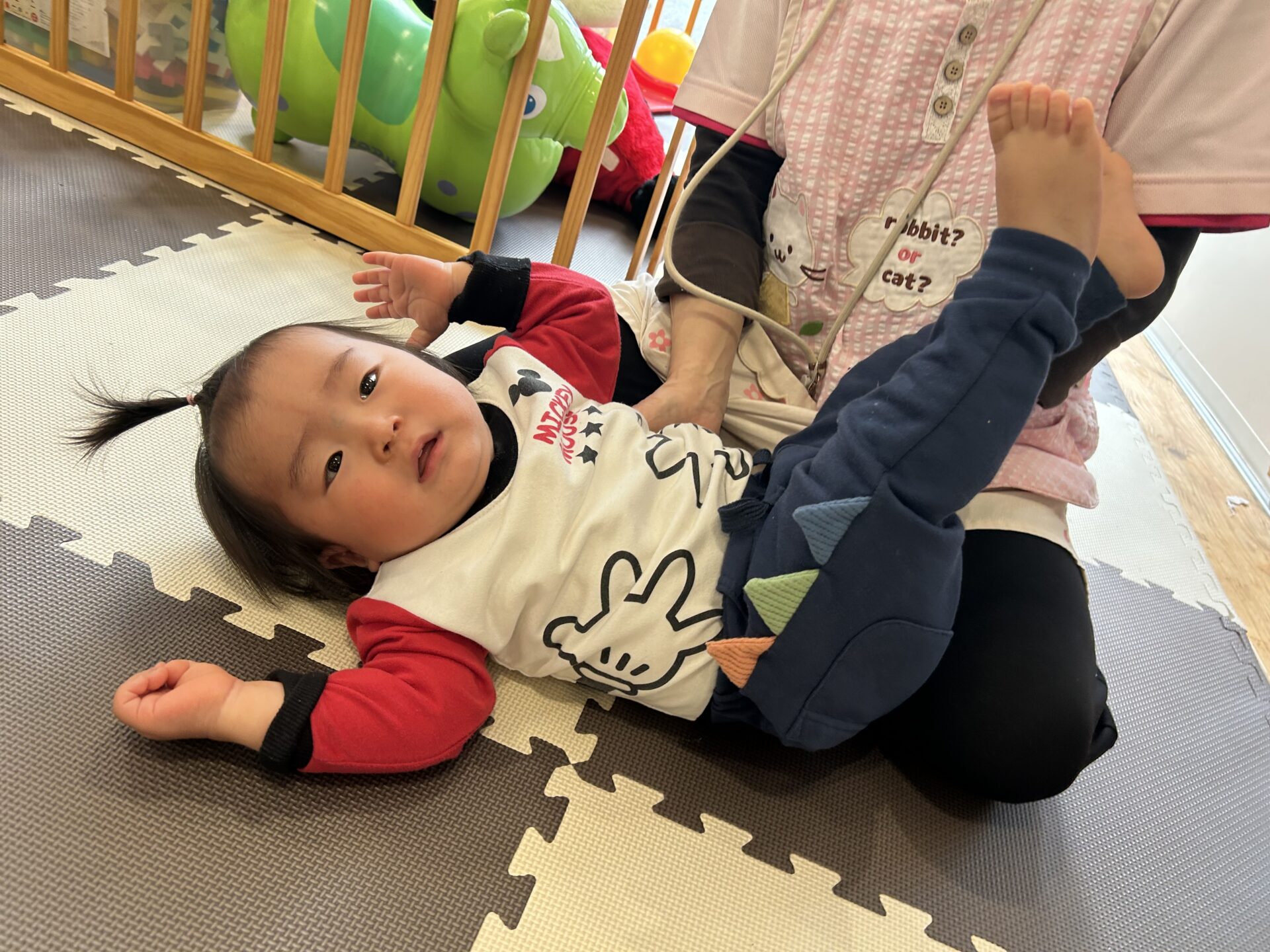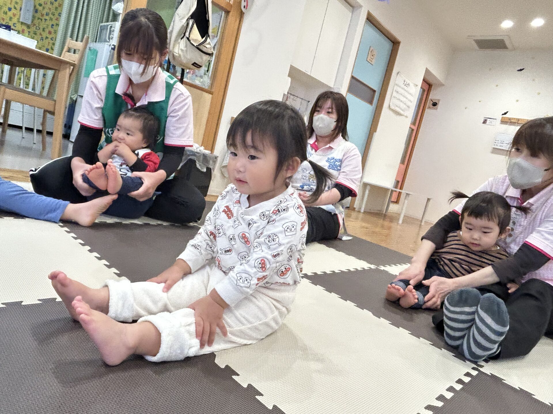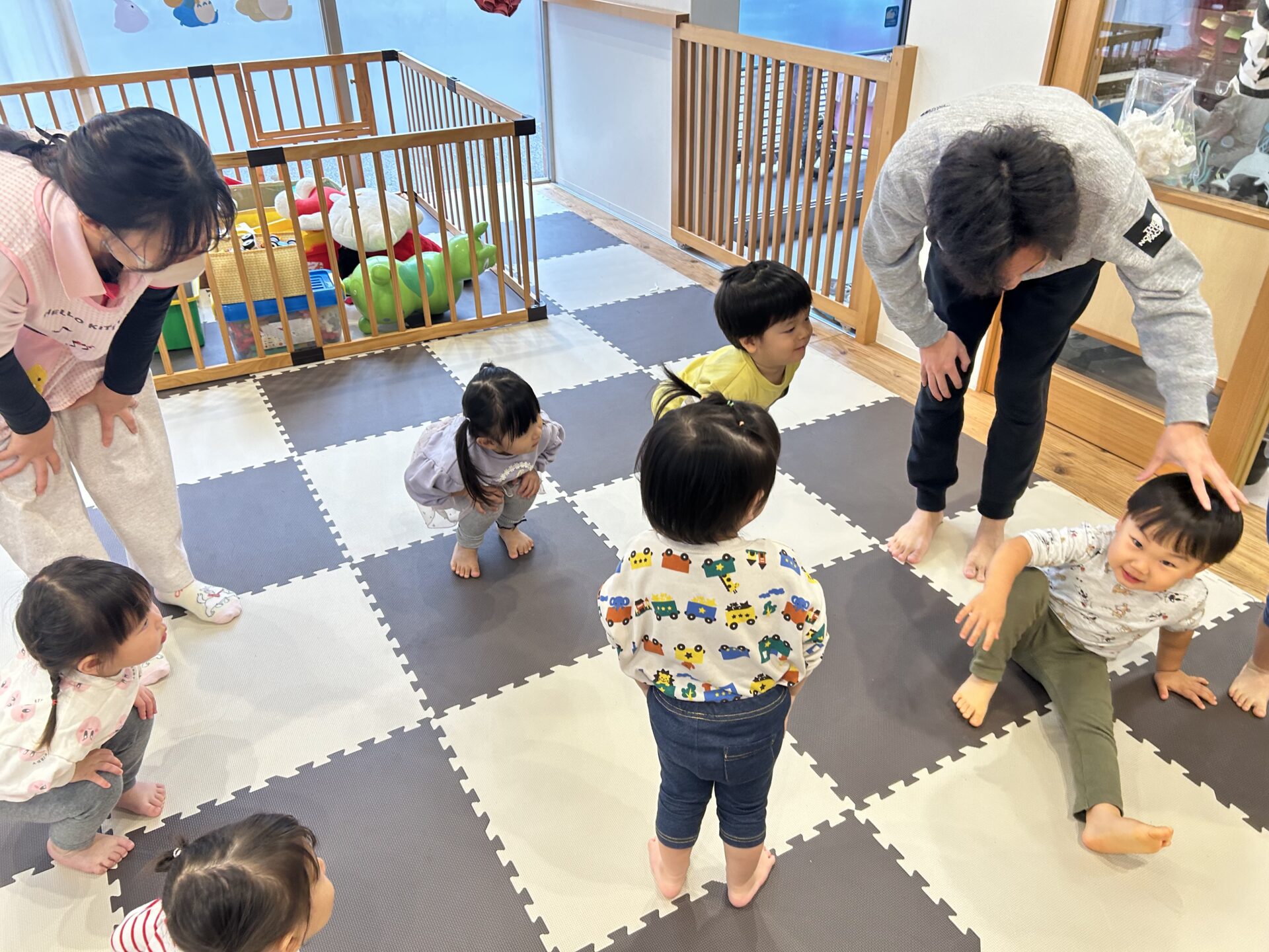 「足曲げて!♪足伸ばして!♪片足曲げて!♪」ゲーム感覚ですすめていきます🥰💗