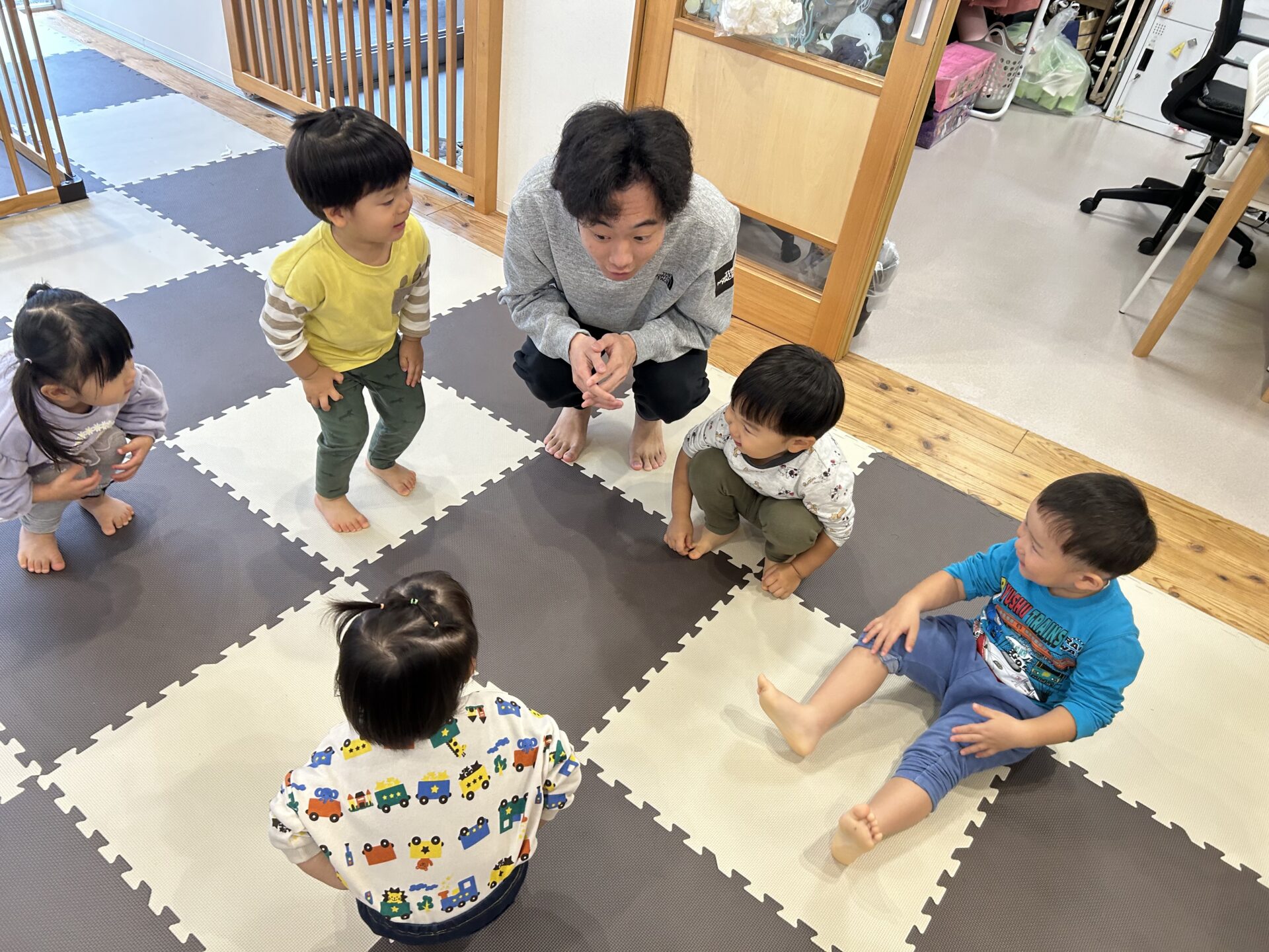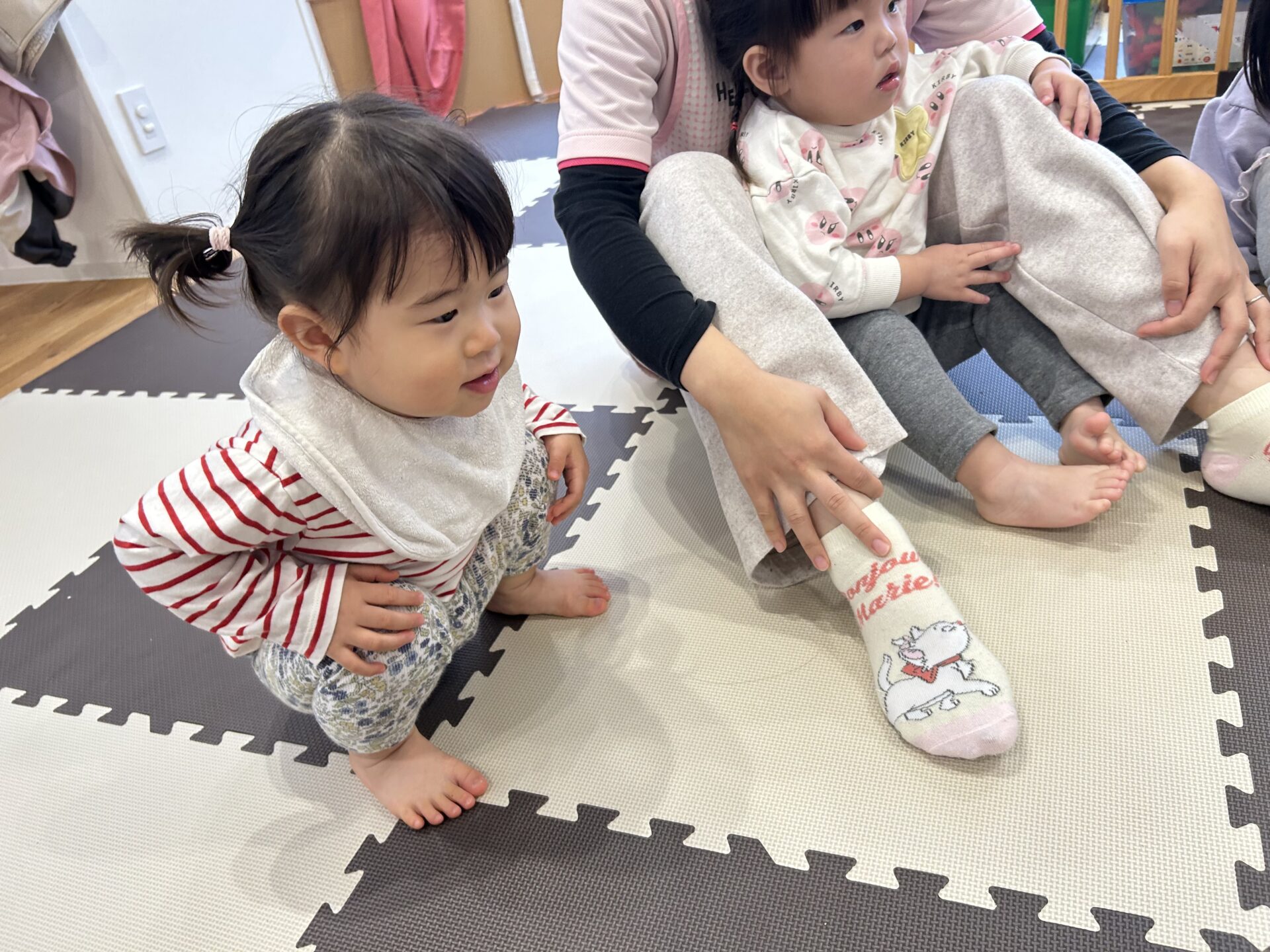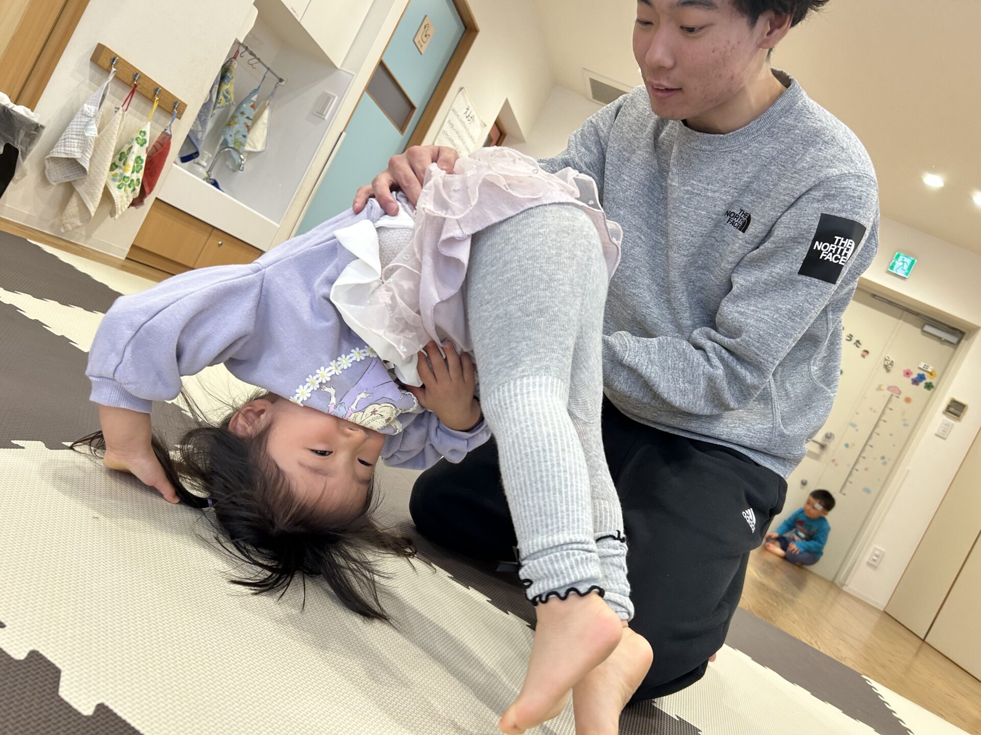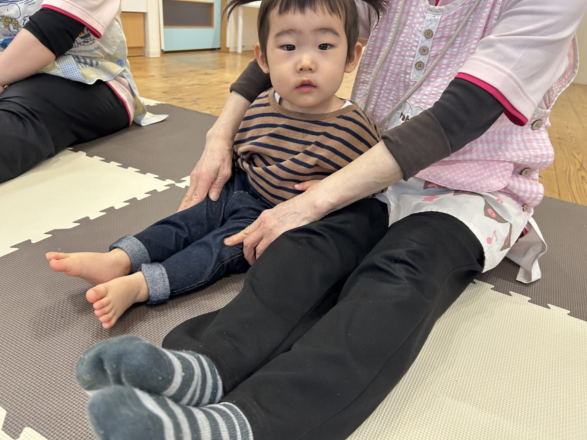 「足曲げて!♪足伸ばして!♪片足曲げて!♪」ゲーム感覚ですすめていきます🥰💗