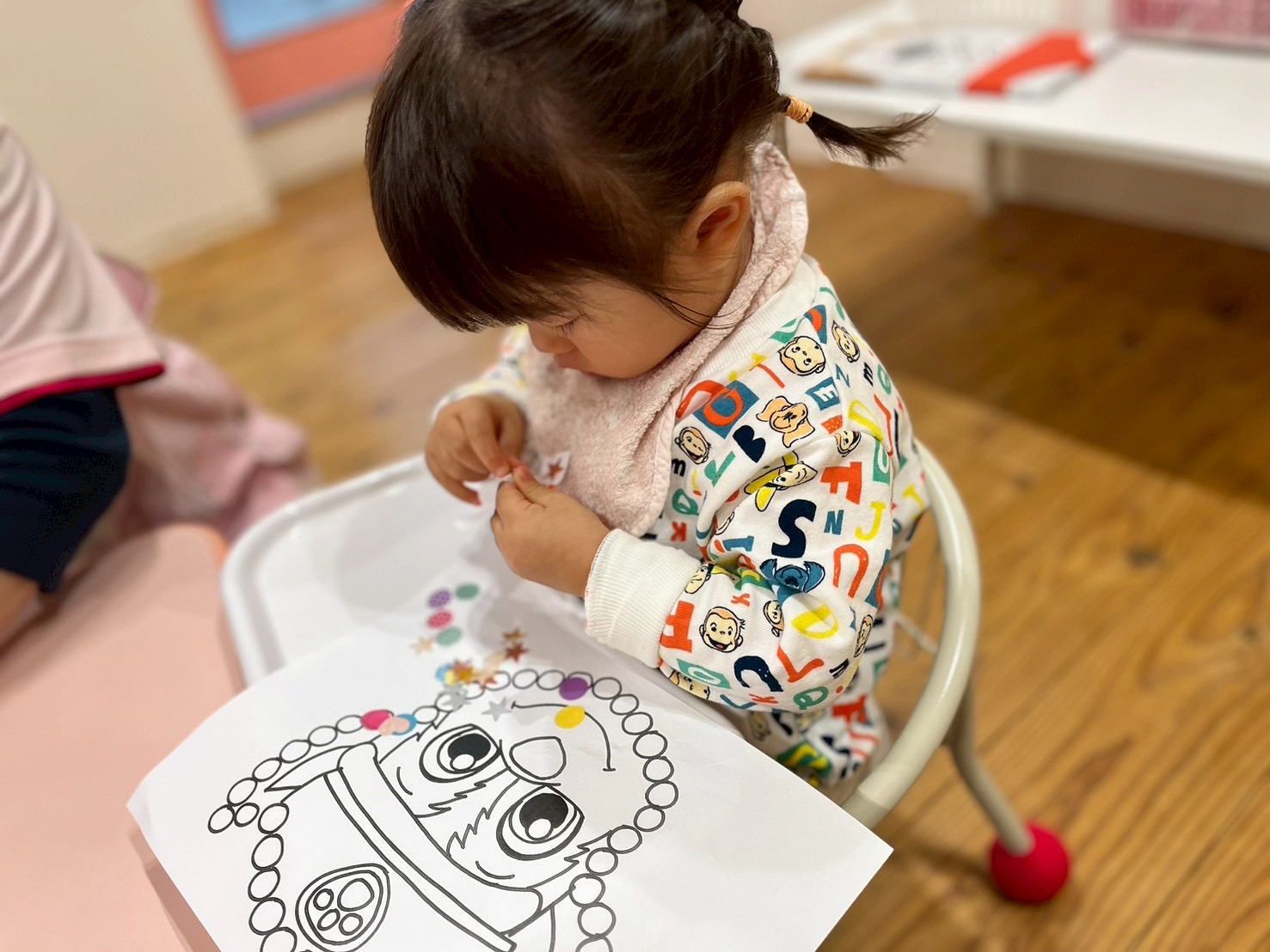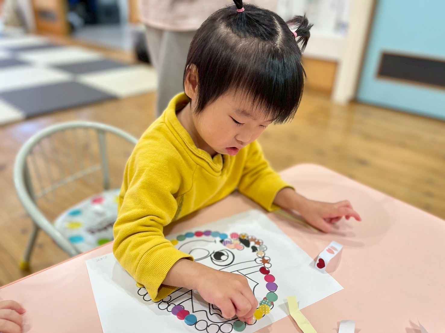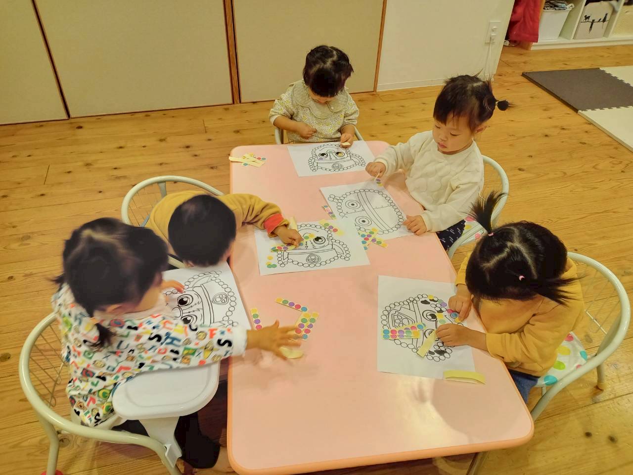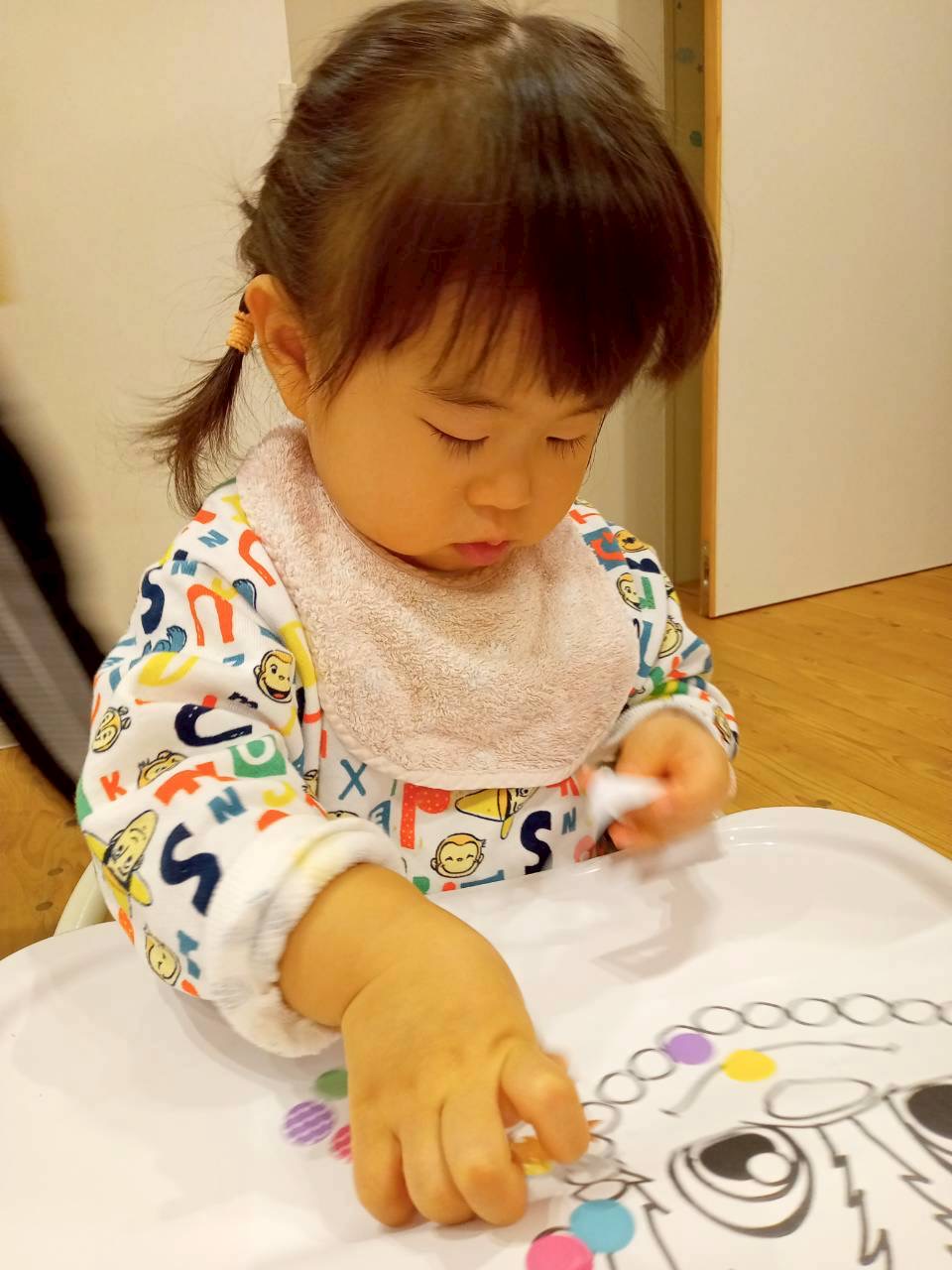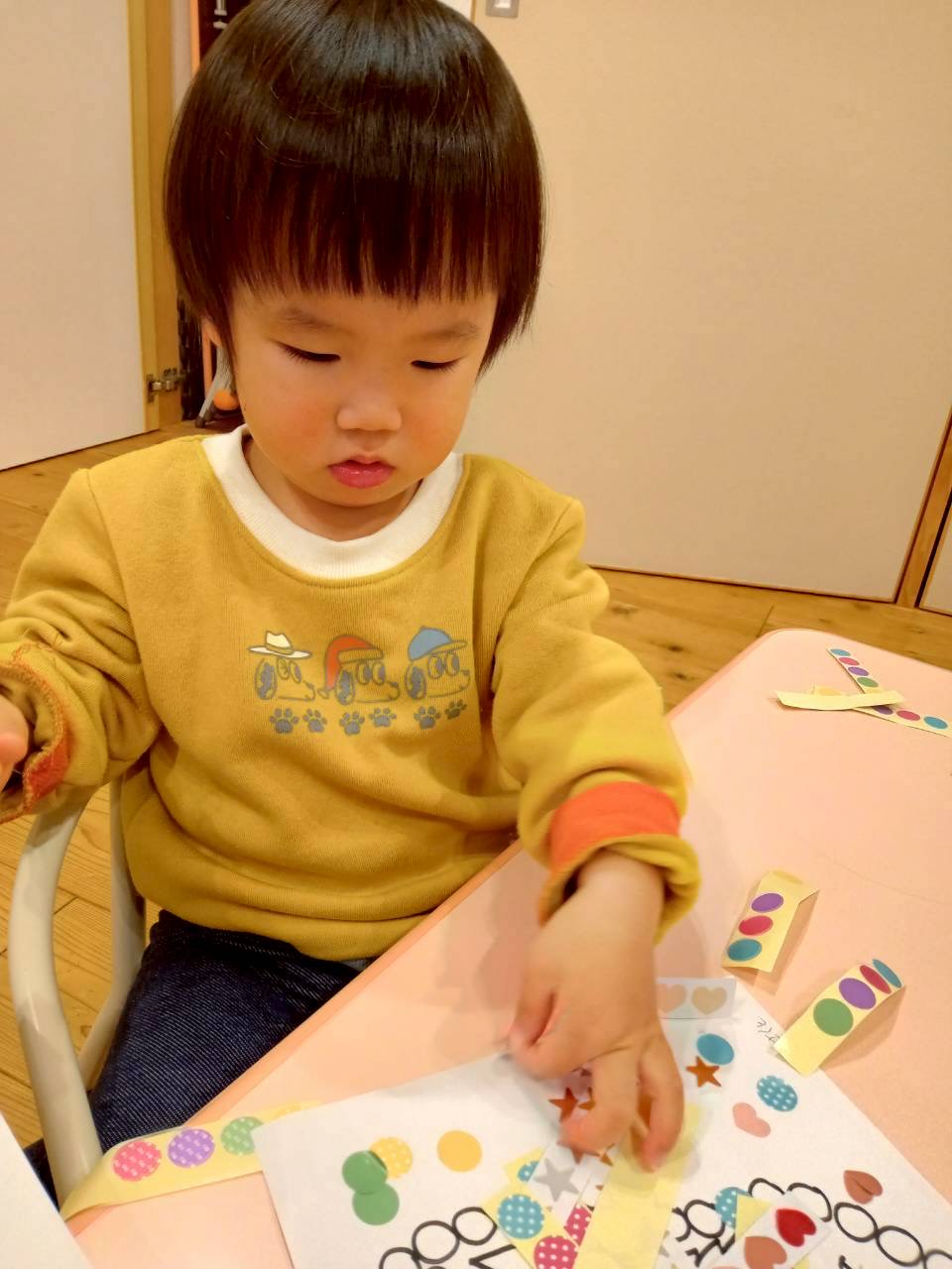 シール貼りでは、指先を使って丸枠にシールをペタッ🩵と貼って可愛く完成(*´꒳`*)💕