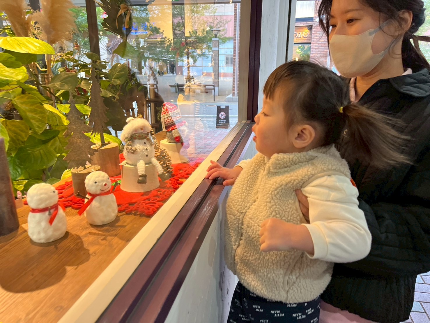 電車やお店の中の雪だるまを見たりして楽しむ子ども達⛄❄