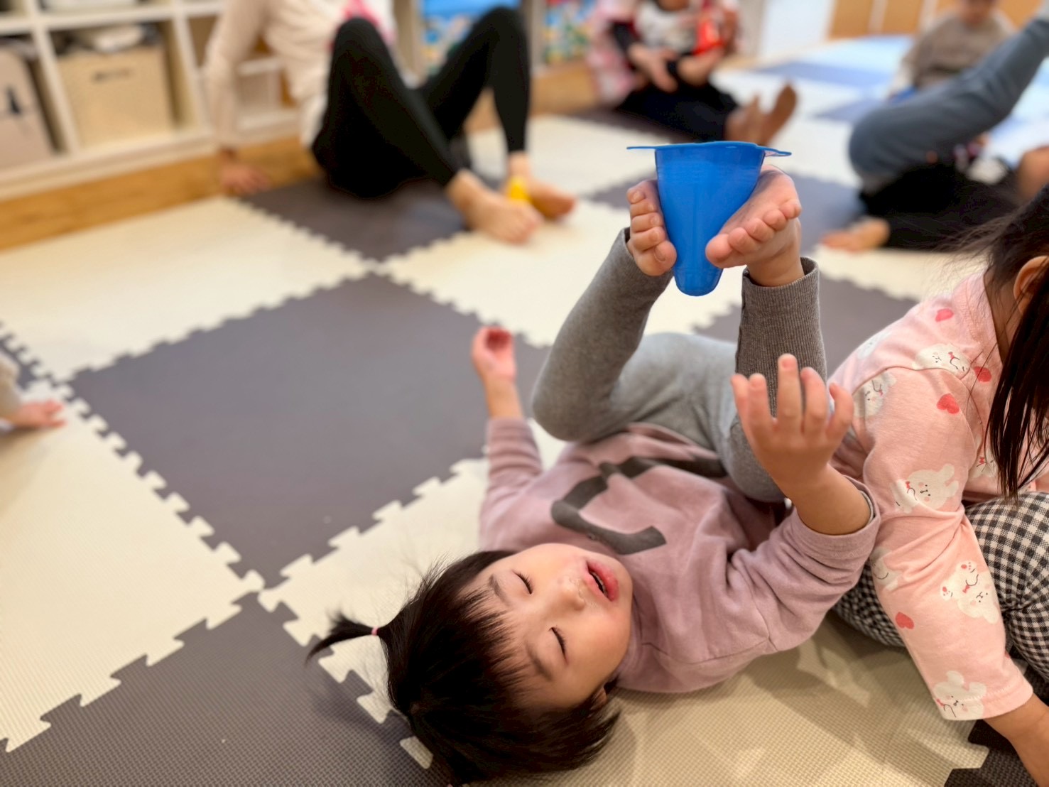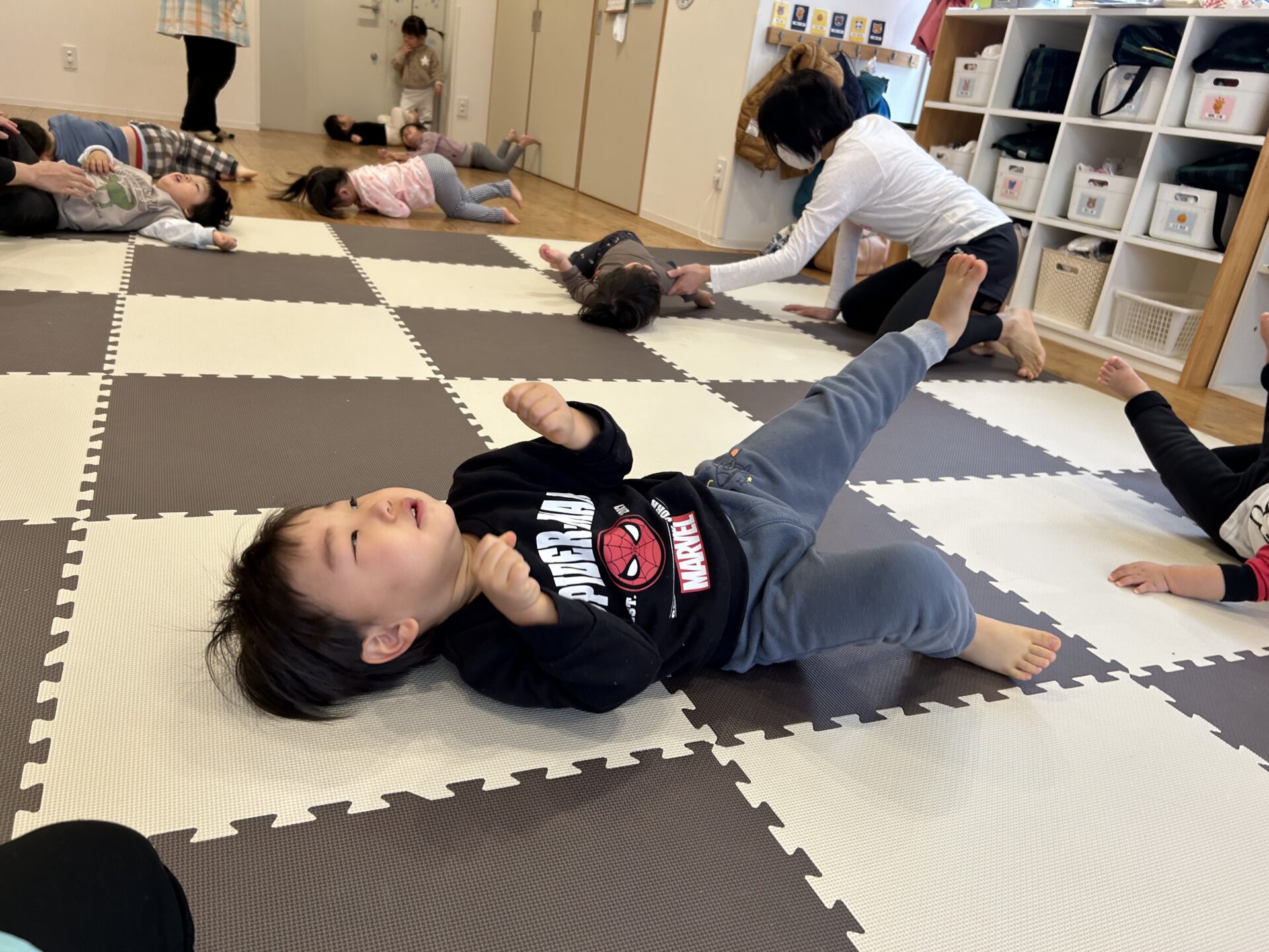 涙や睡魔に負けてしまう子もいましたがヨガ時間みんなで体を動かしたくさん遊んでいます🌈
