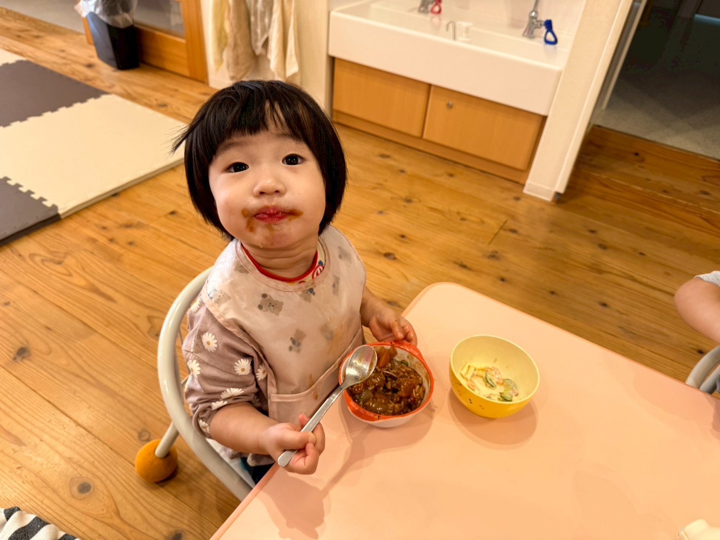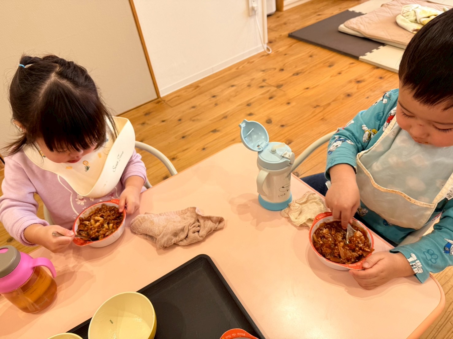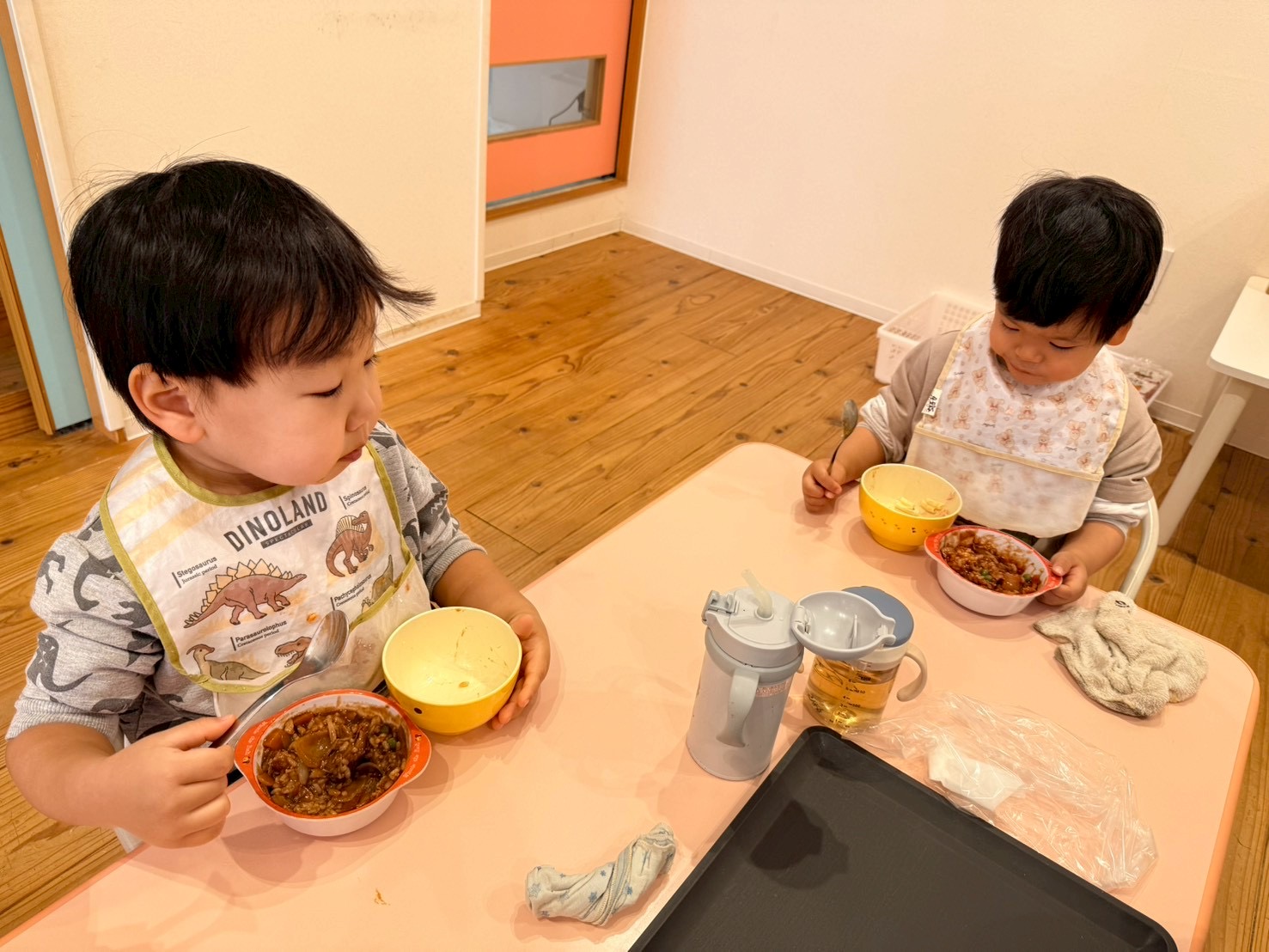 たくさん遊んだ後は嬉しい給食の時間😊🍴