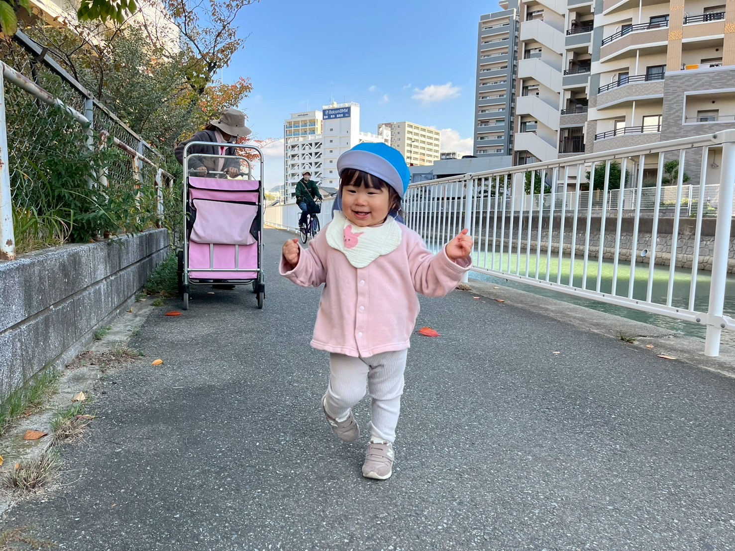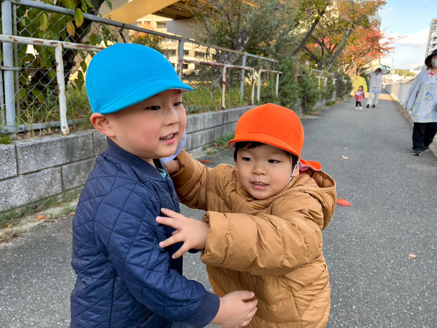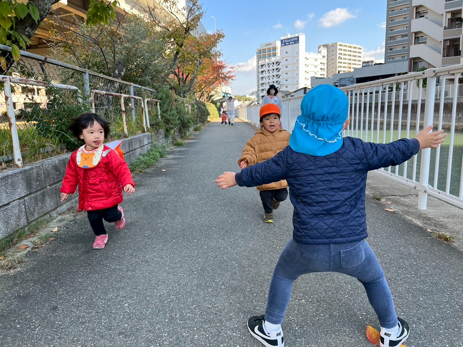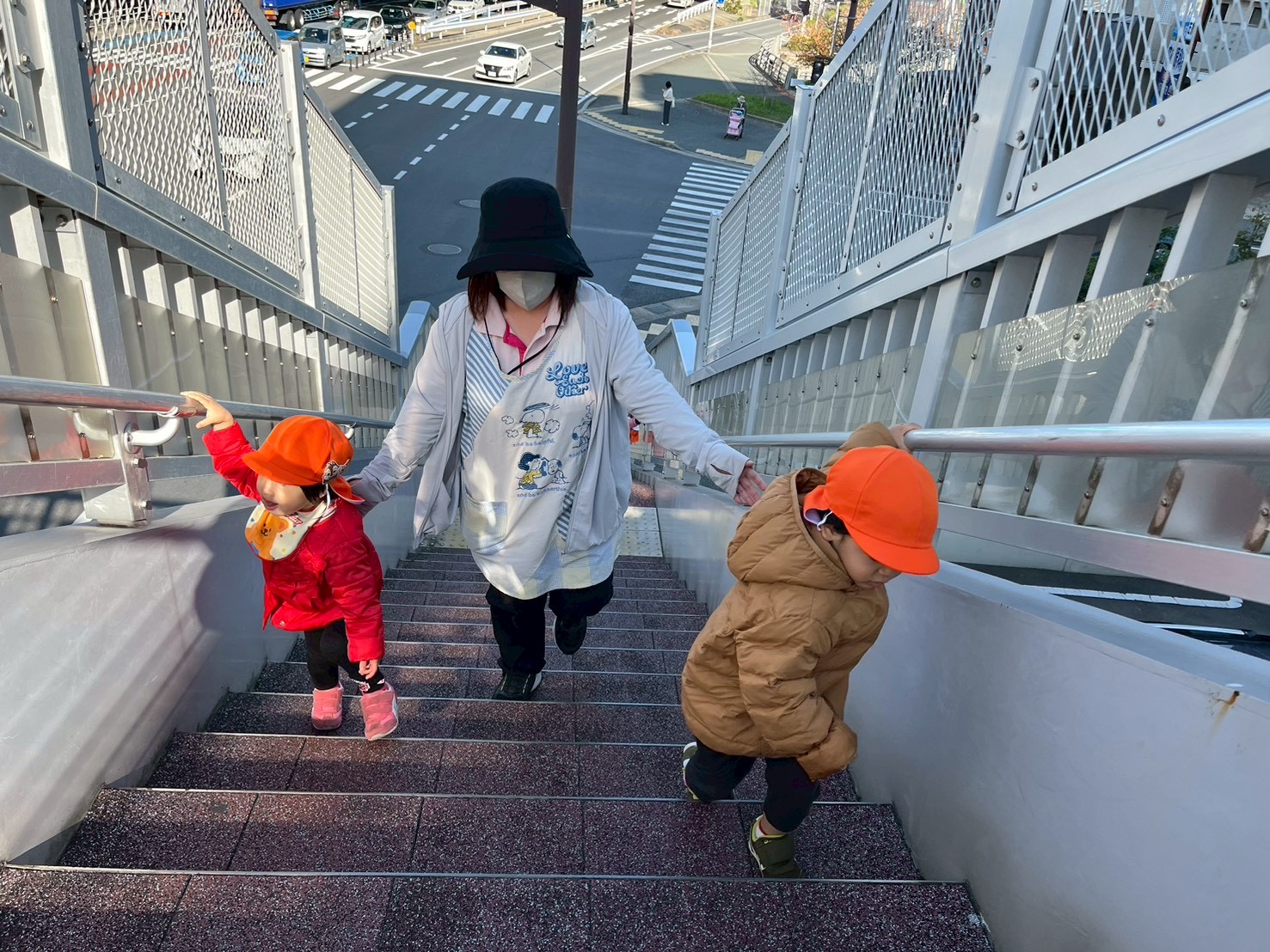 歩道橋を渡ってから、直線の道をみんなで‘’よーいどん🏃♂️💨”「きゃー😆」と言いながらみんなで走り出し、ゴールした後は他のお友達の応援やお互いにギュ〜っとするなど微笑ましい姿もありました(*´ `*)♡