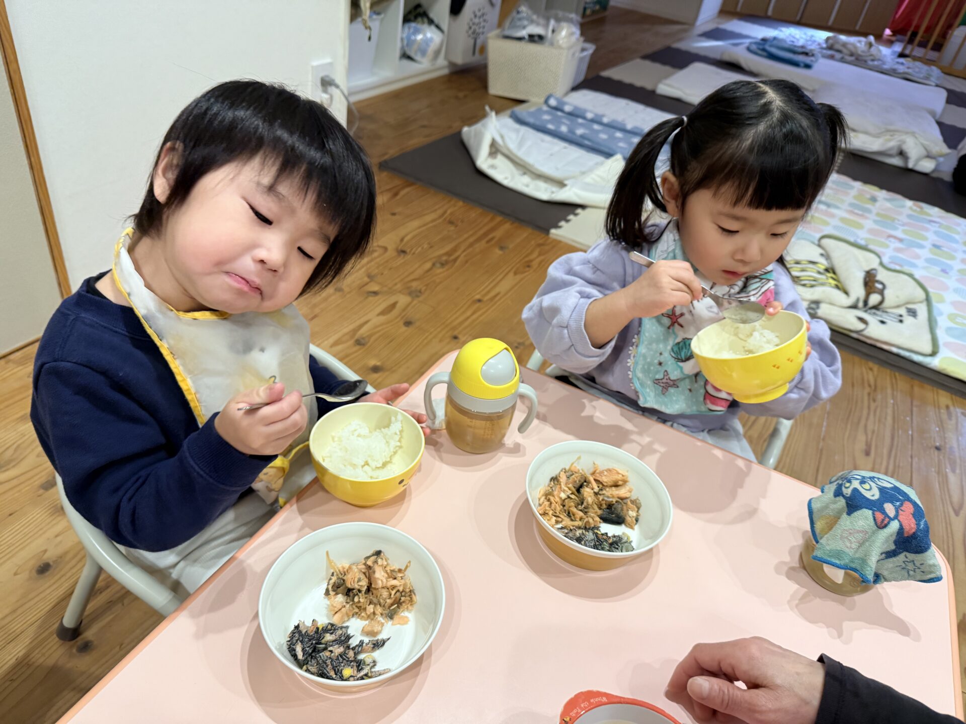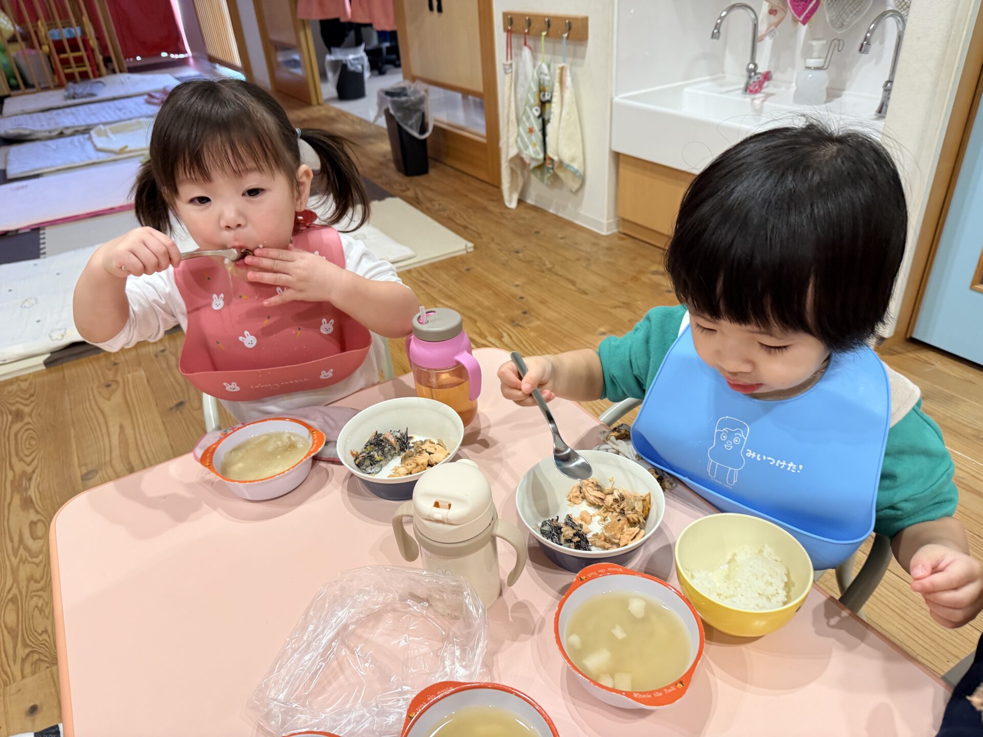たくさん遊んだ後は嬉しい給食の時間😋❤️