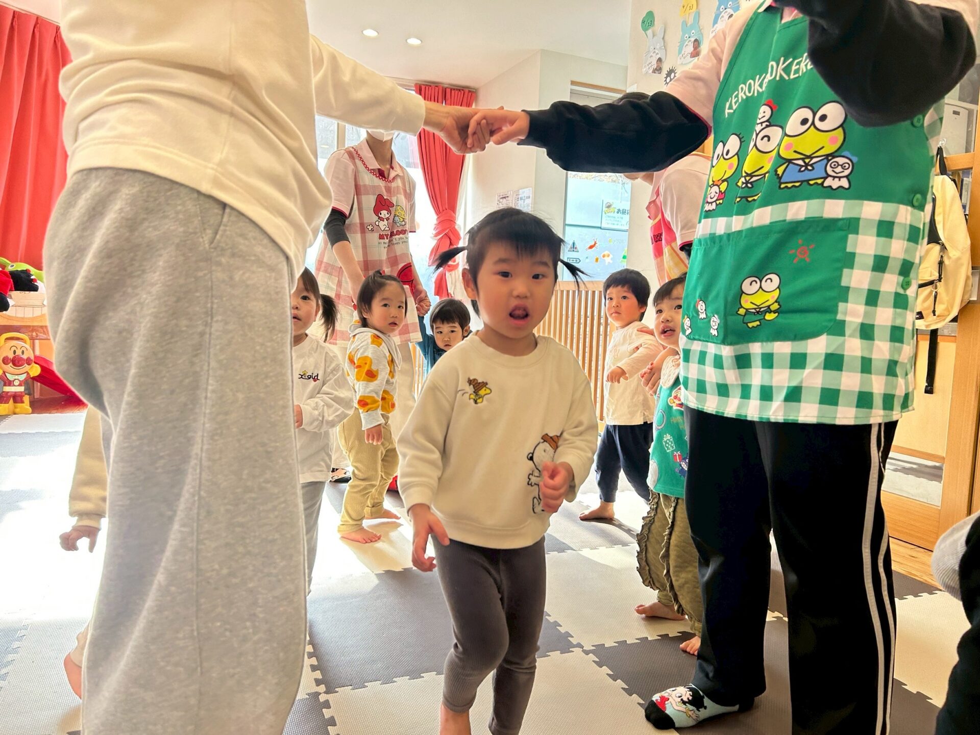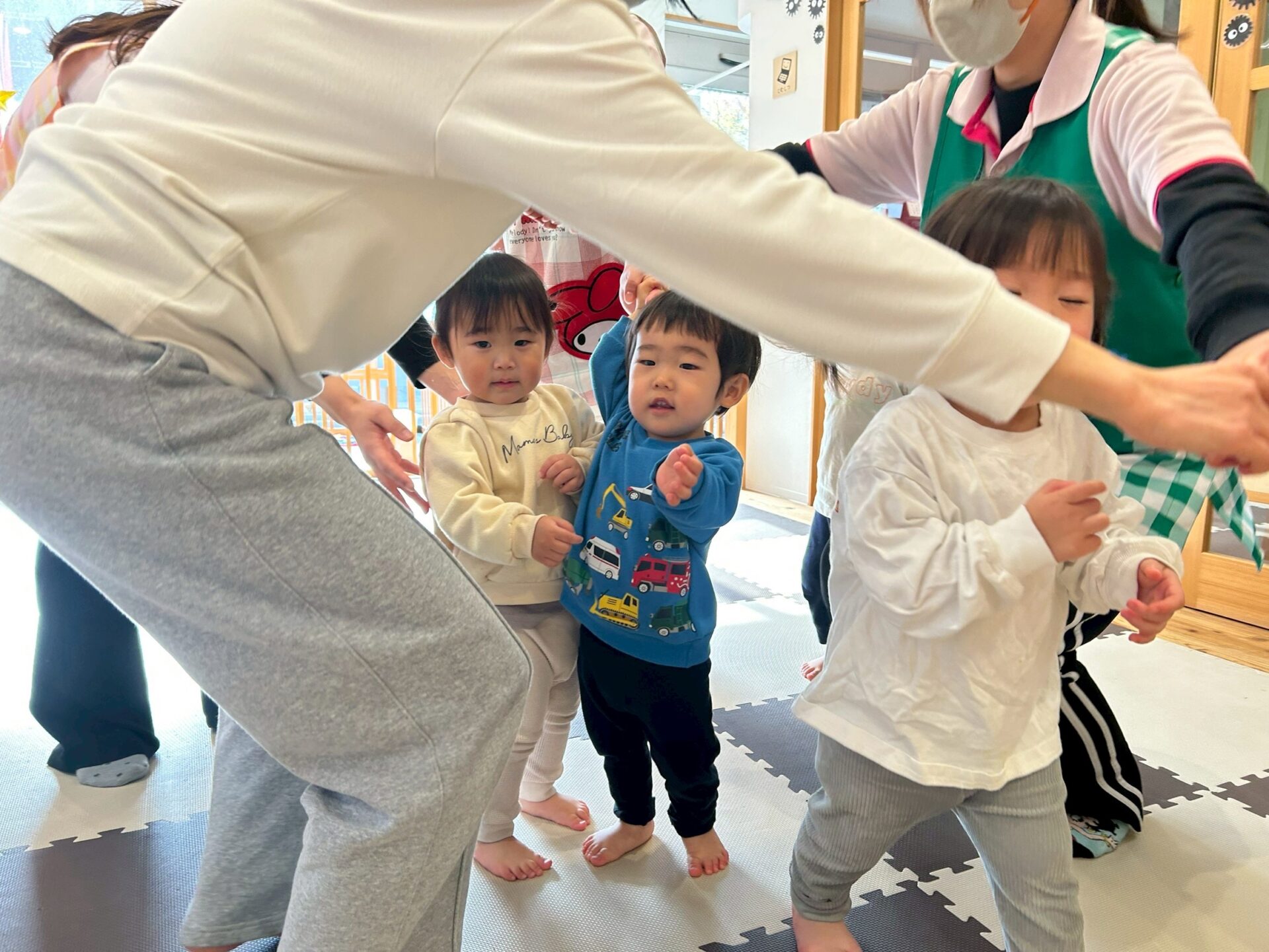 ロンドン橋やキラキラ星など、だいすきなお歌に合わせてダンス・ゲームでうきうき(ง ˙˘˙ )ว