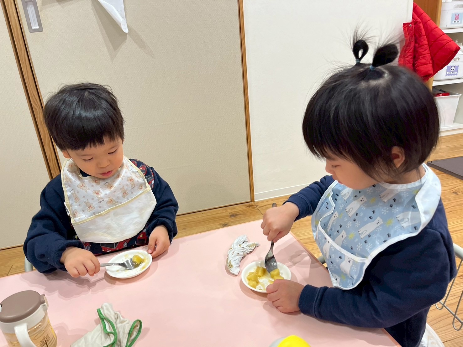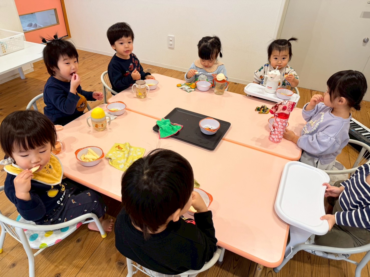 おやつを食べて朝の会をした後は…👀💭