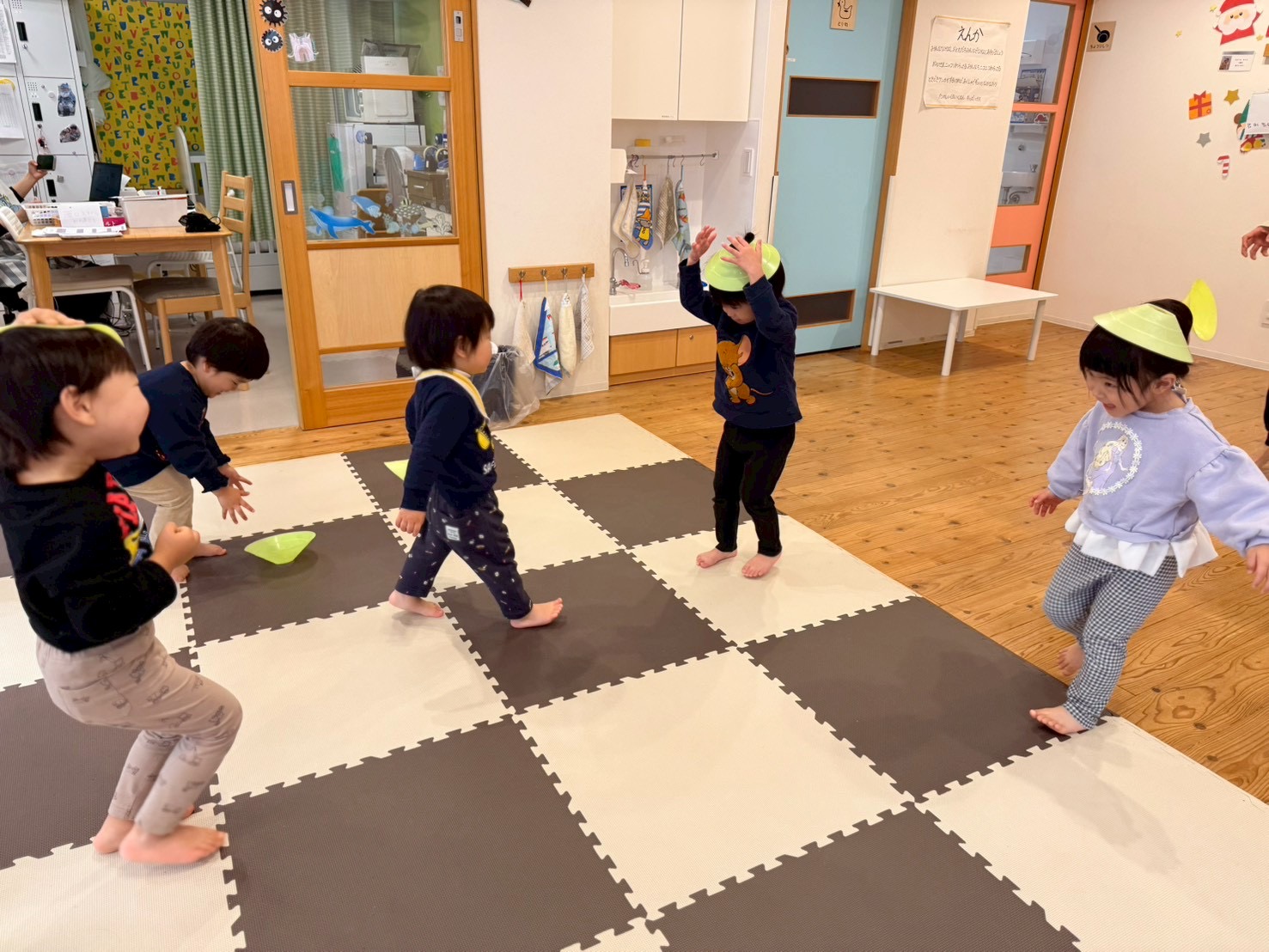 そして今日はマーカーコーンを使った運動遊びをしました
