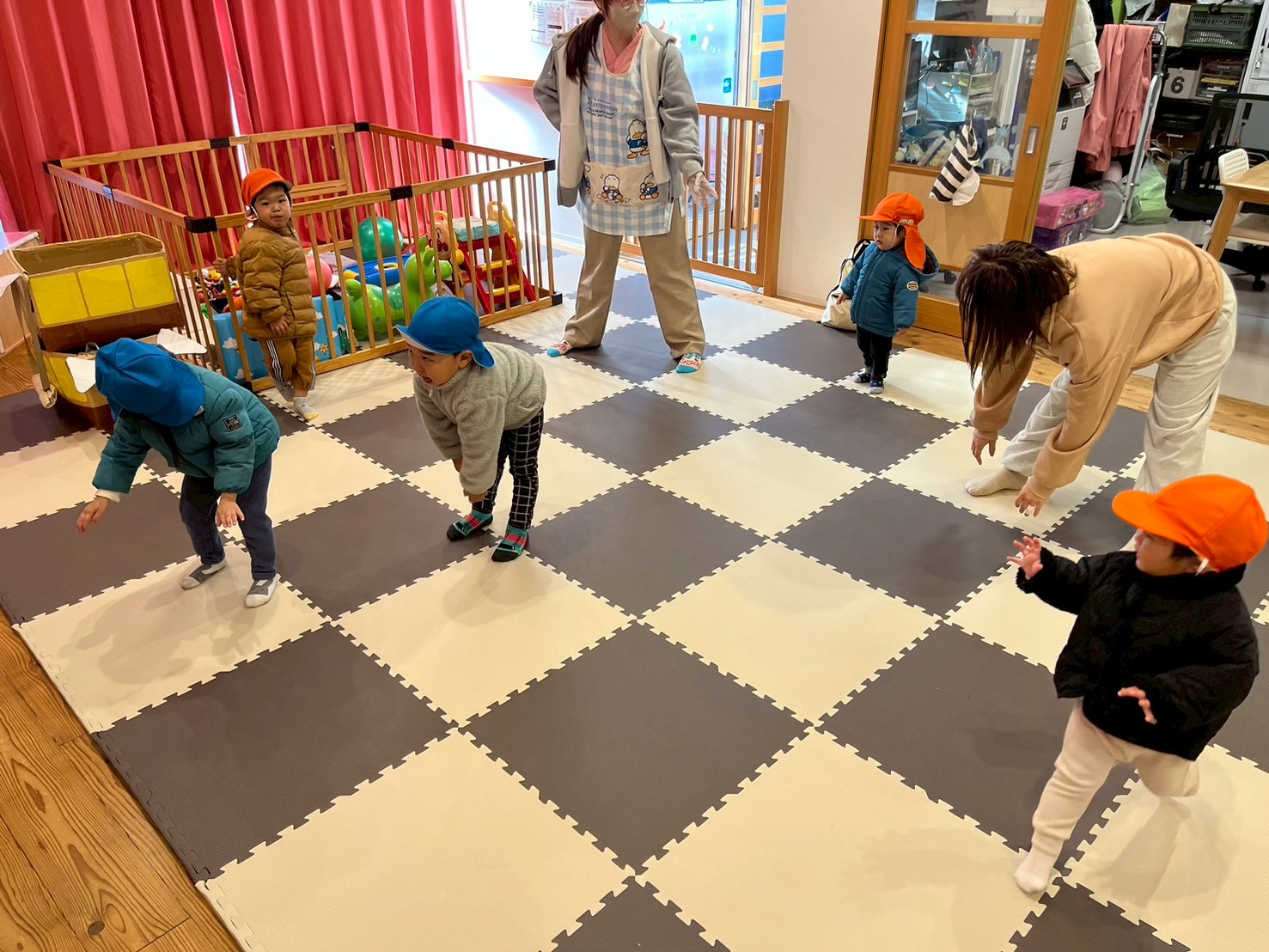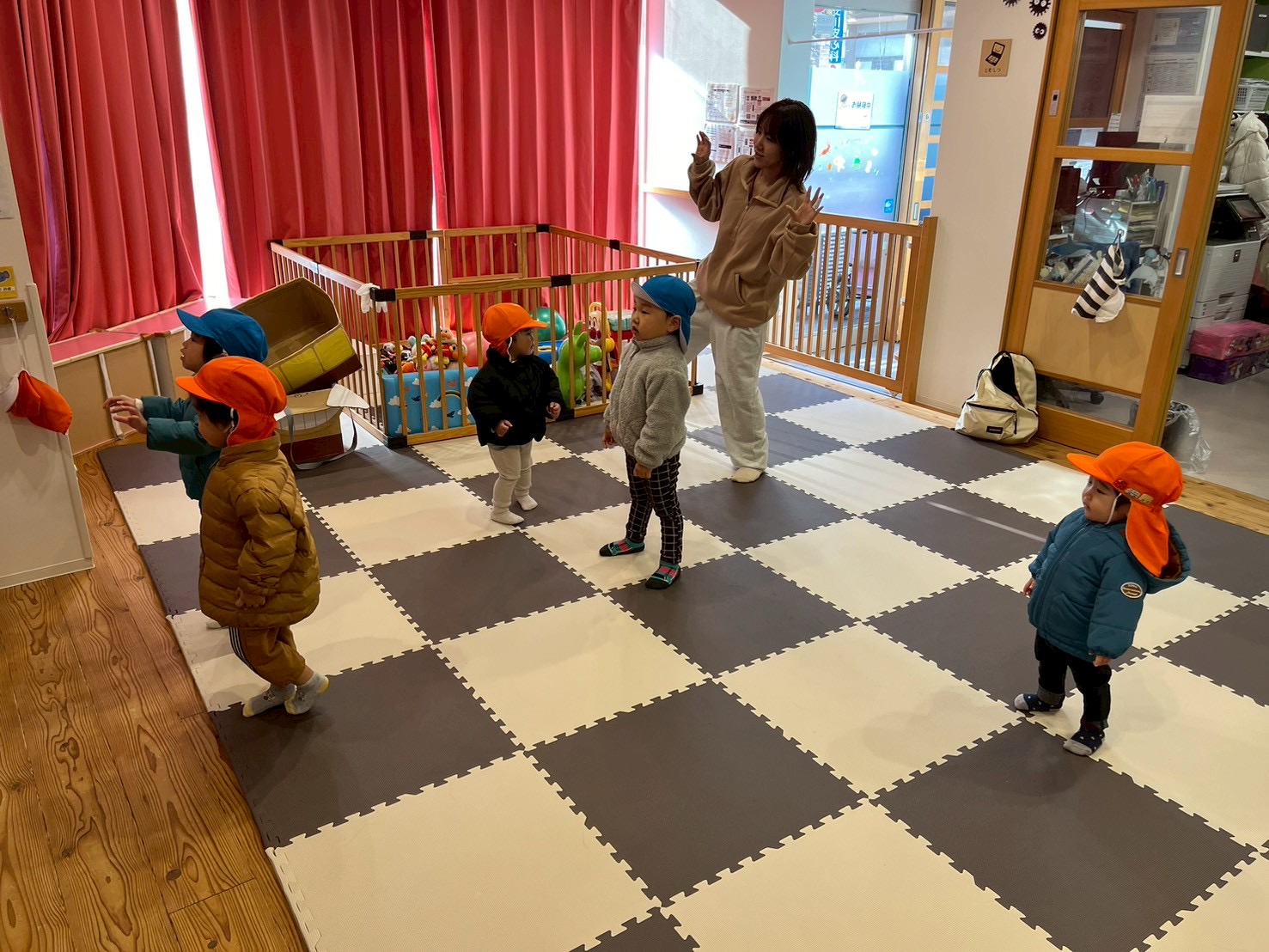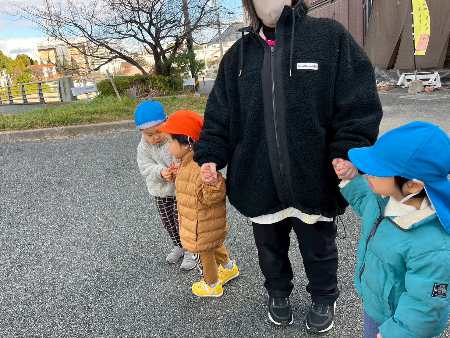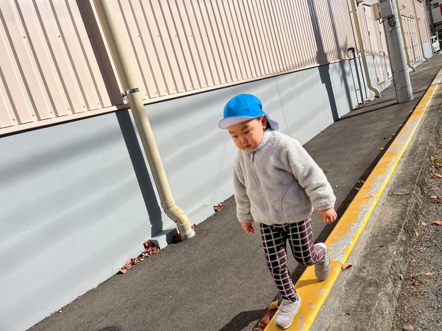 途中では縁石から落ちないようにみんなで渡るゲームをしながら公園に向かうまでの間も楽しむ子ども達👧🏻👦🏻🧡