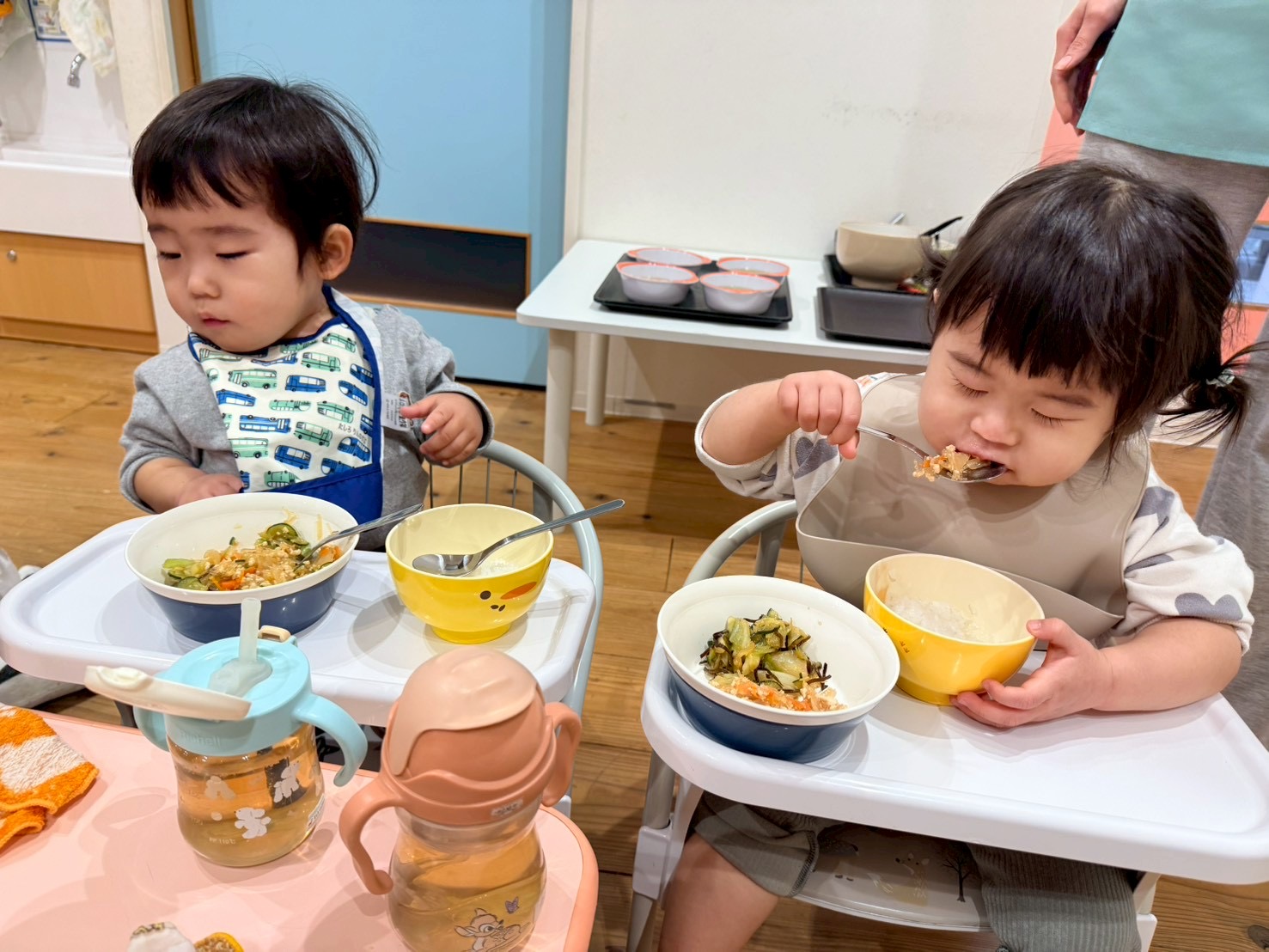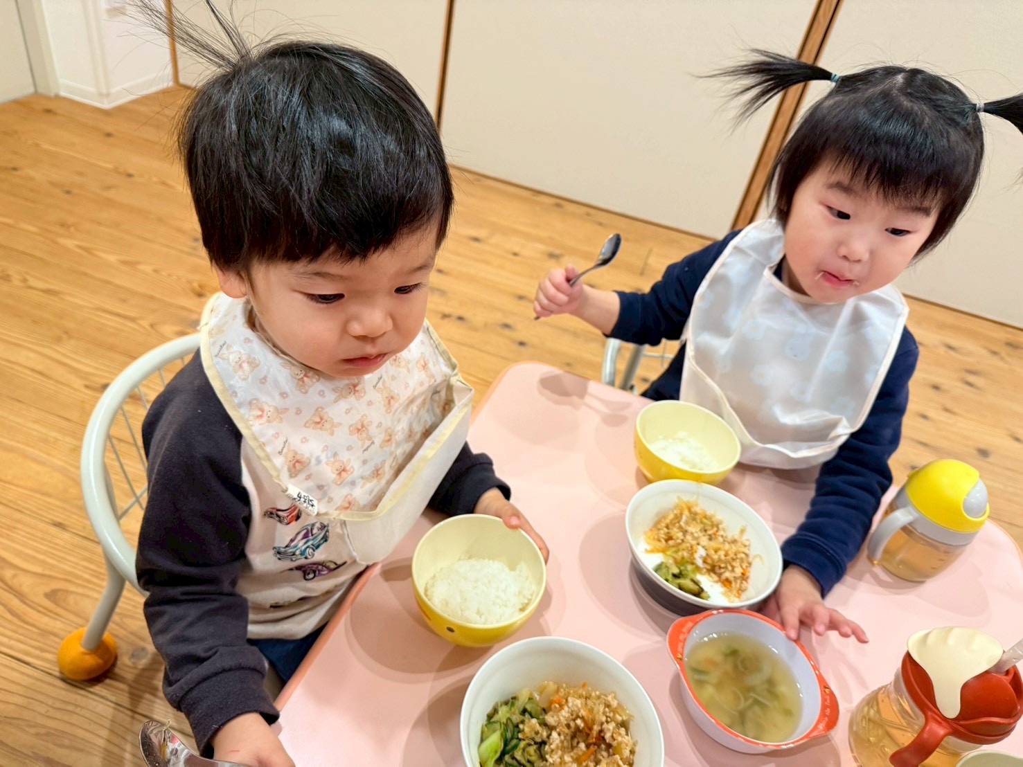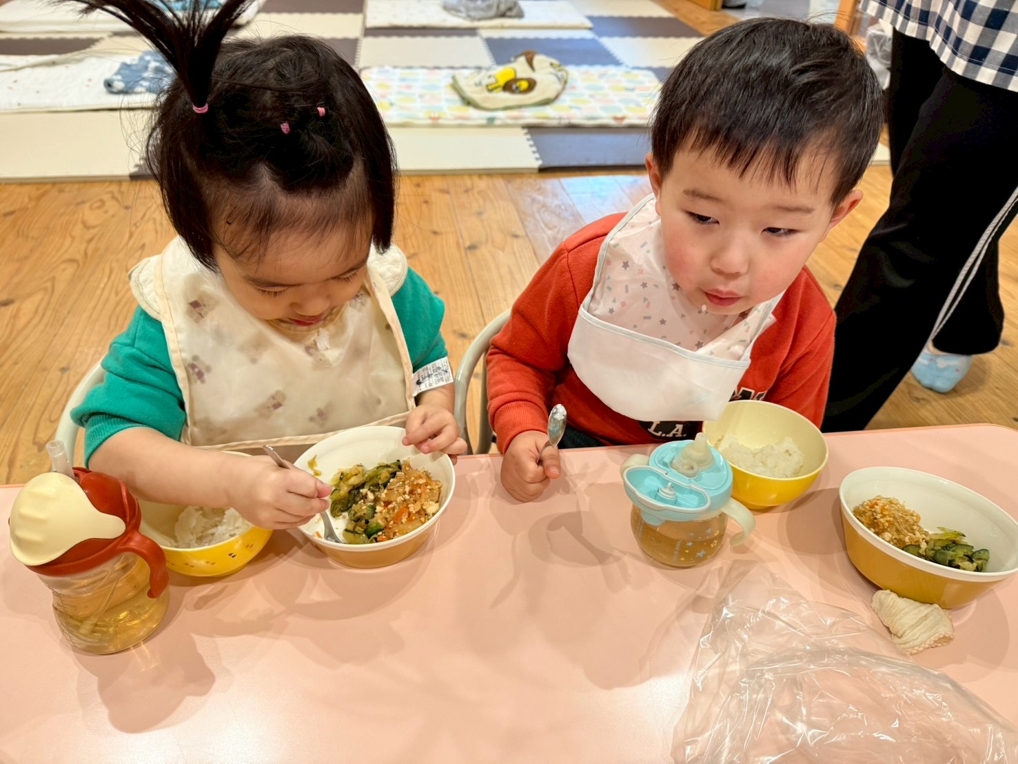 入園当初はまだスタイをしていた👶🏻 今では一番身長も高く逞しい体つきになった男の子です👦🏻