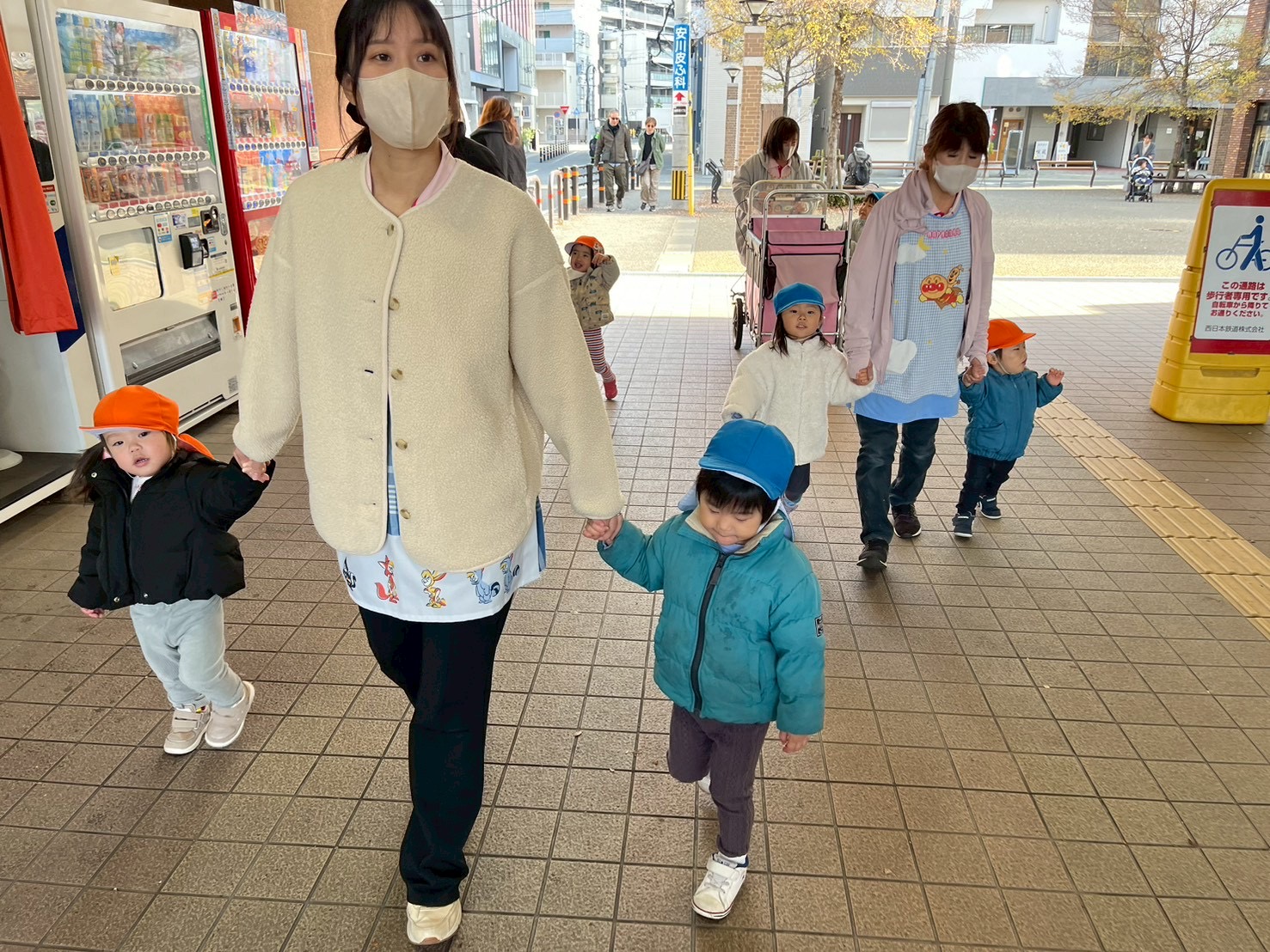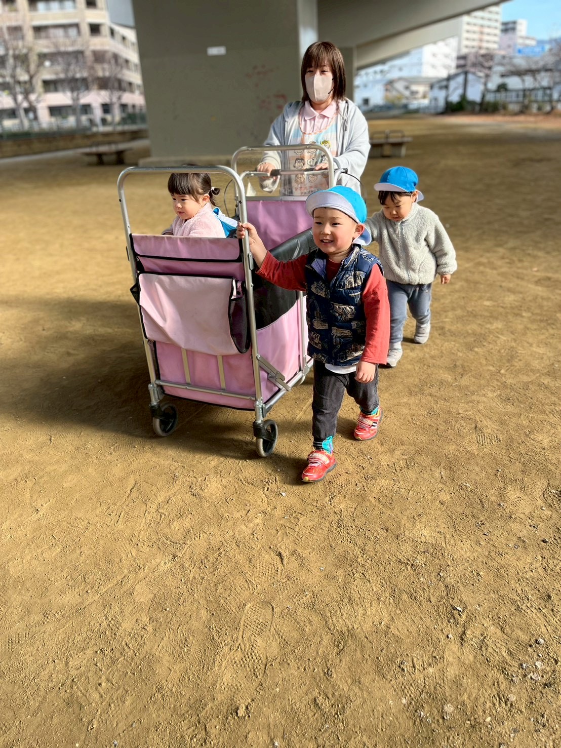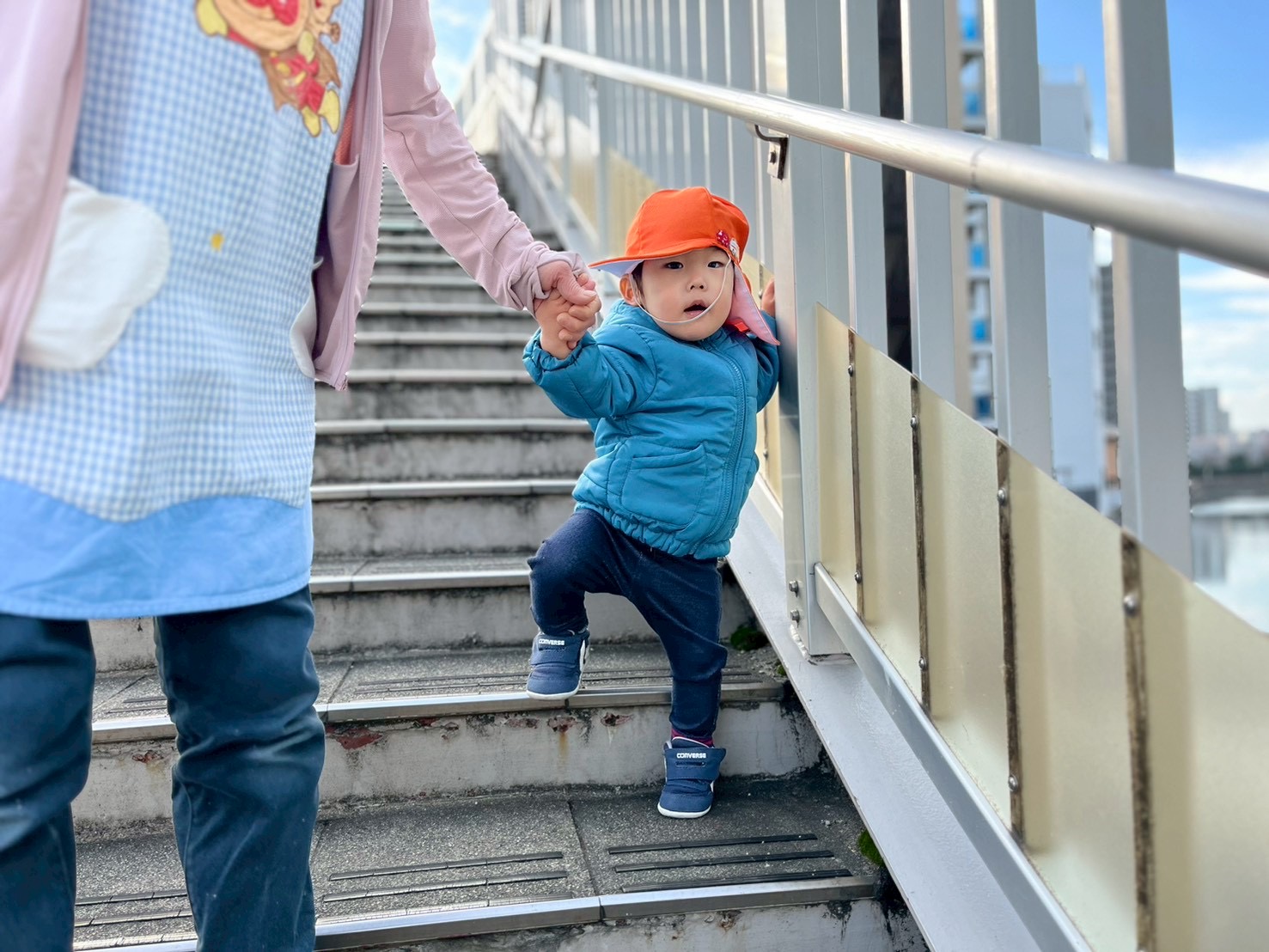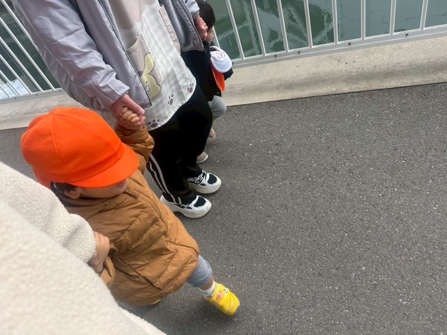 今日は新浜公園に遊びに行きました⛲️先生と手を繋いでお散歩しながら歩道橋へ🚶♀️³₃ 階段をあがって上からカートに乗っているお友達に「おーい(*^^*)」と手を振る子ども達でした😁︎💕︎︎