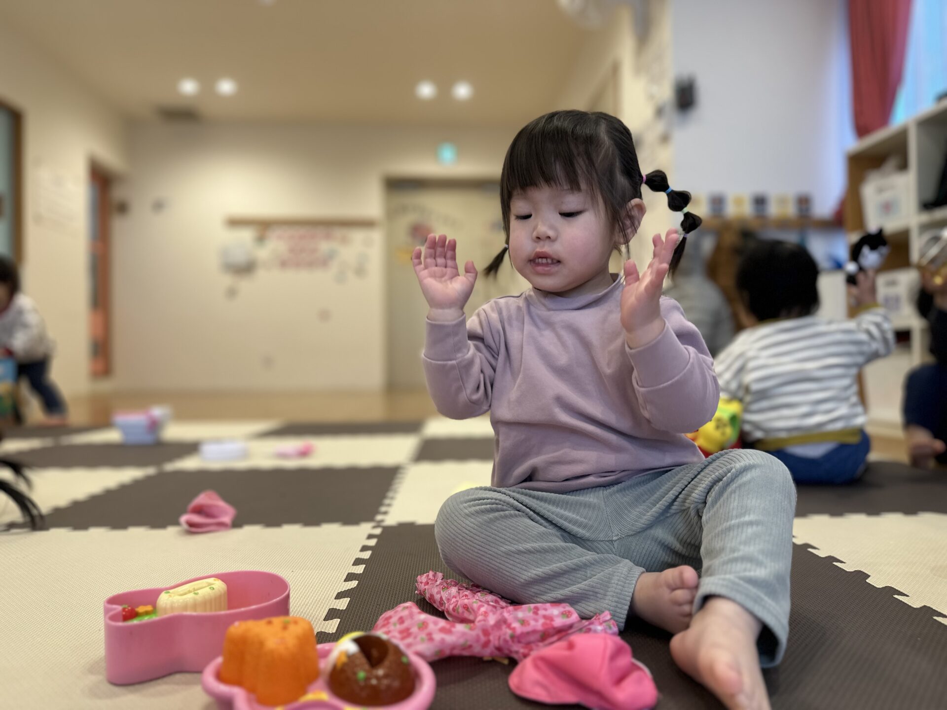 おはよー!と元気な挨拶をしたり、お友達きてるかなー?と探してみたり、明るく登園してくれた子どもたちです👧🏻👦🏻🙌🏻