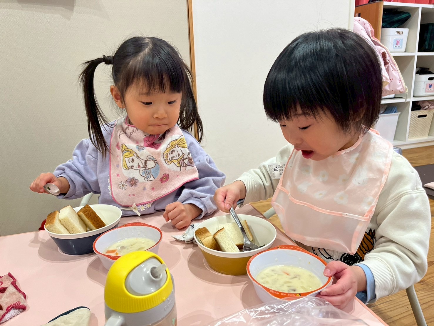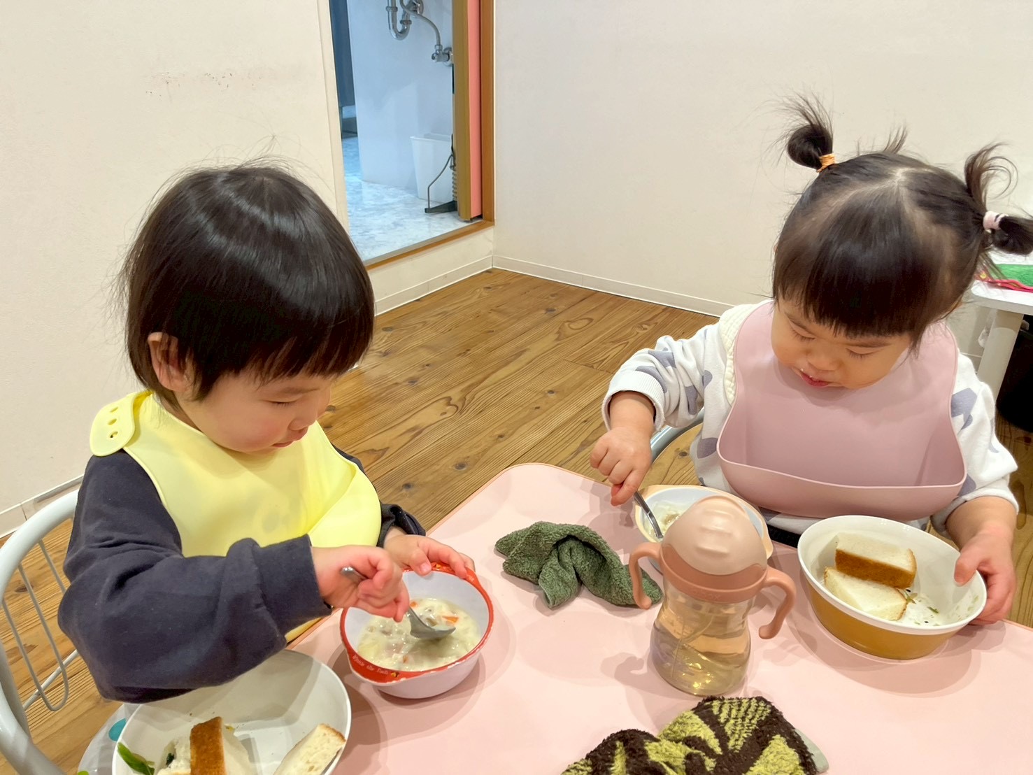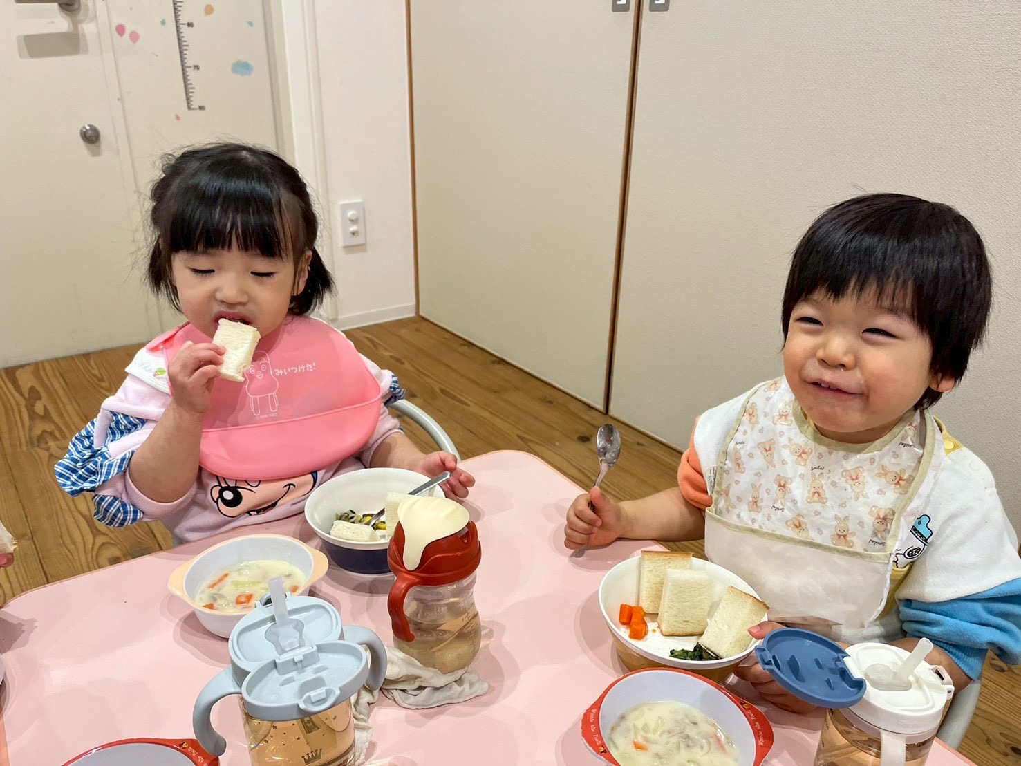 たくさん遊んだ後は嬉しい給食の時間︎😁🩷