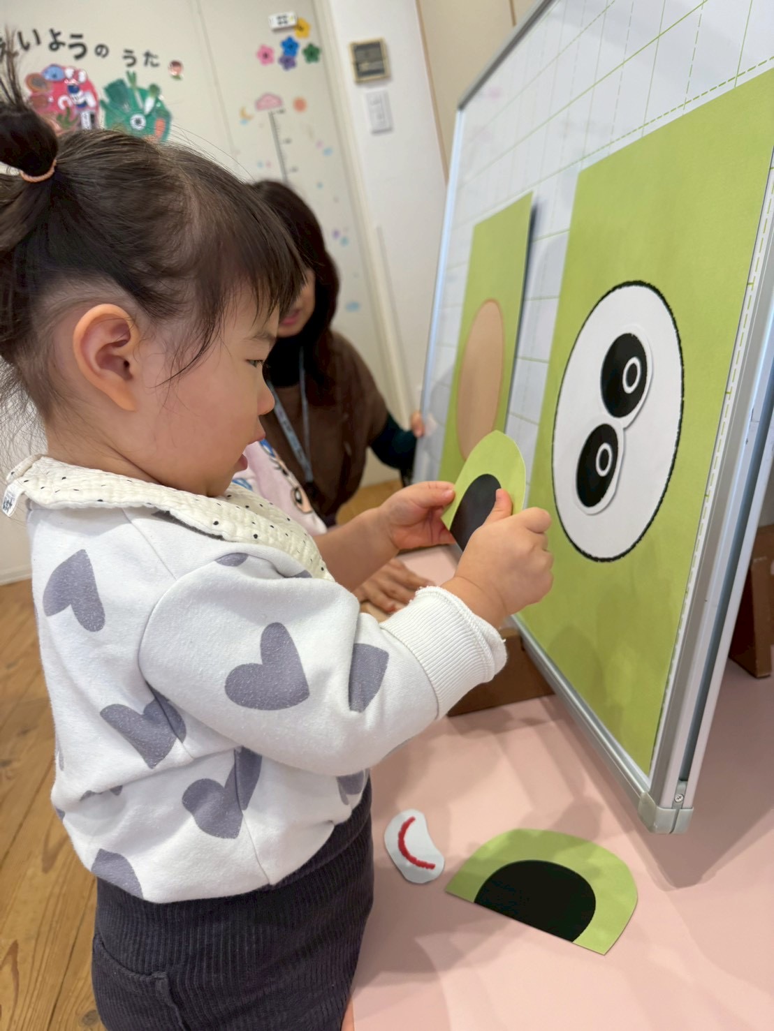 2歳児さんも目・鼻・耳・口を付けて可愛いお顔の完成〜(*^^*)