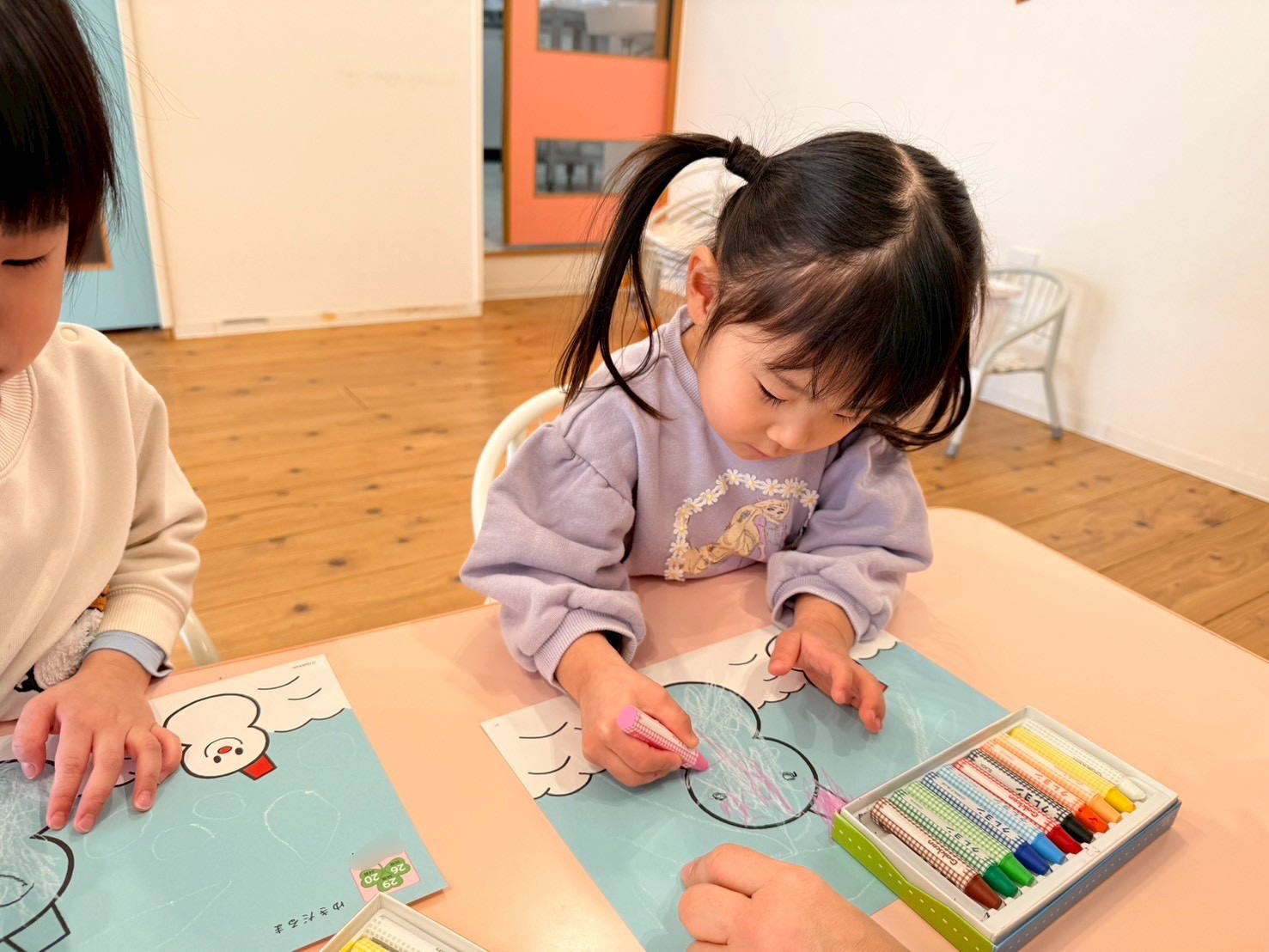 その後はクレヨンで雪だるまに色を付け、平仮名を勉強しました५✍