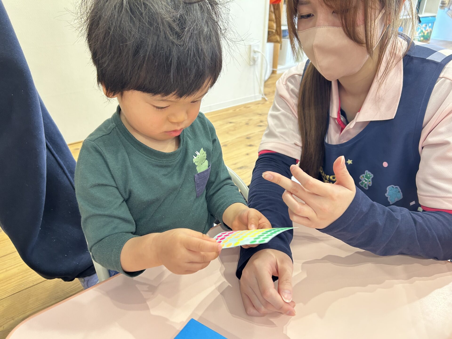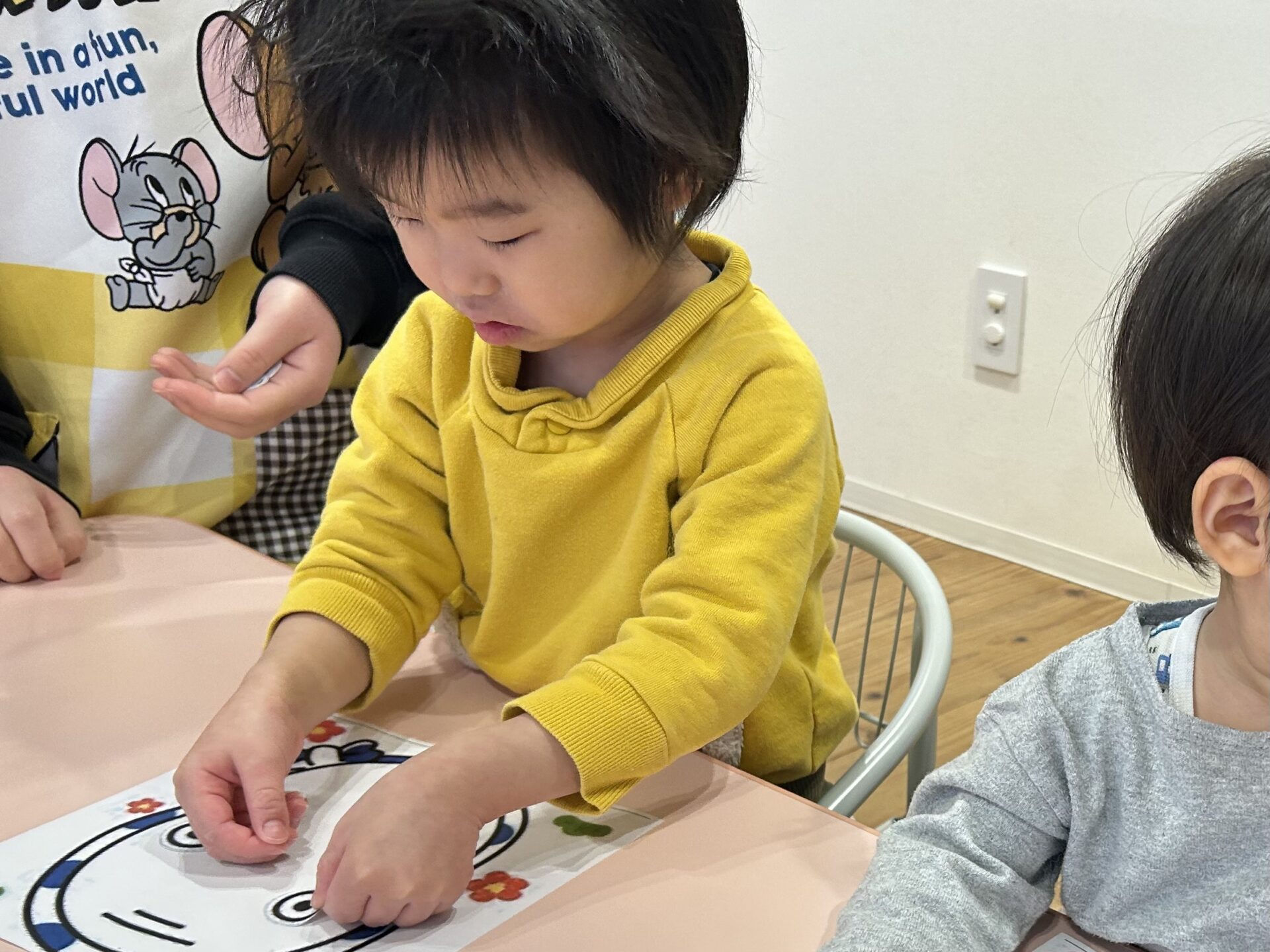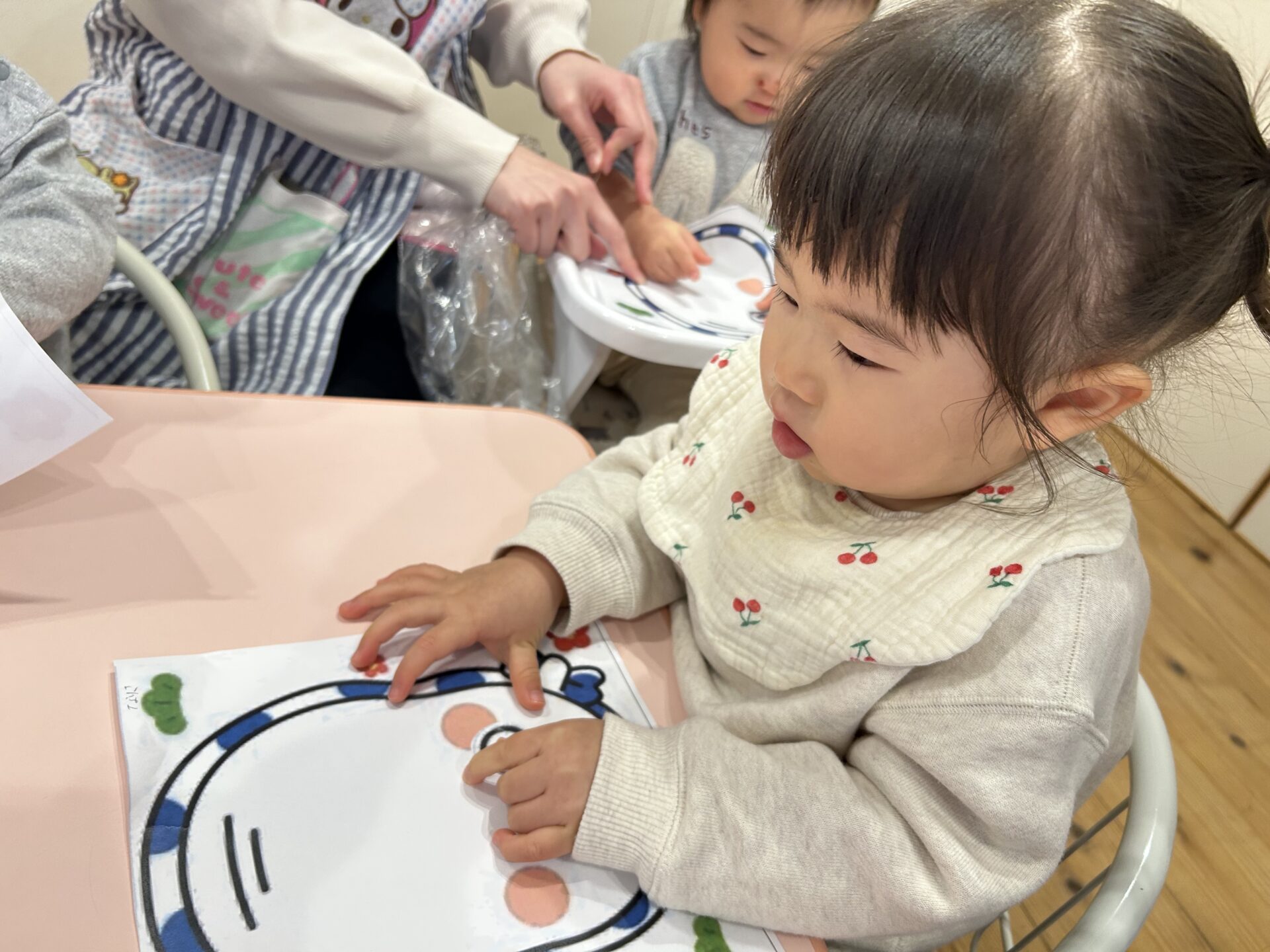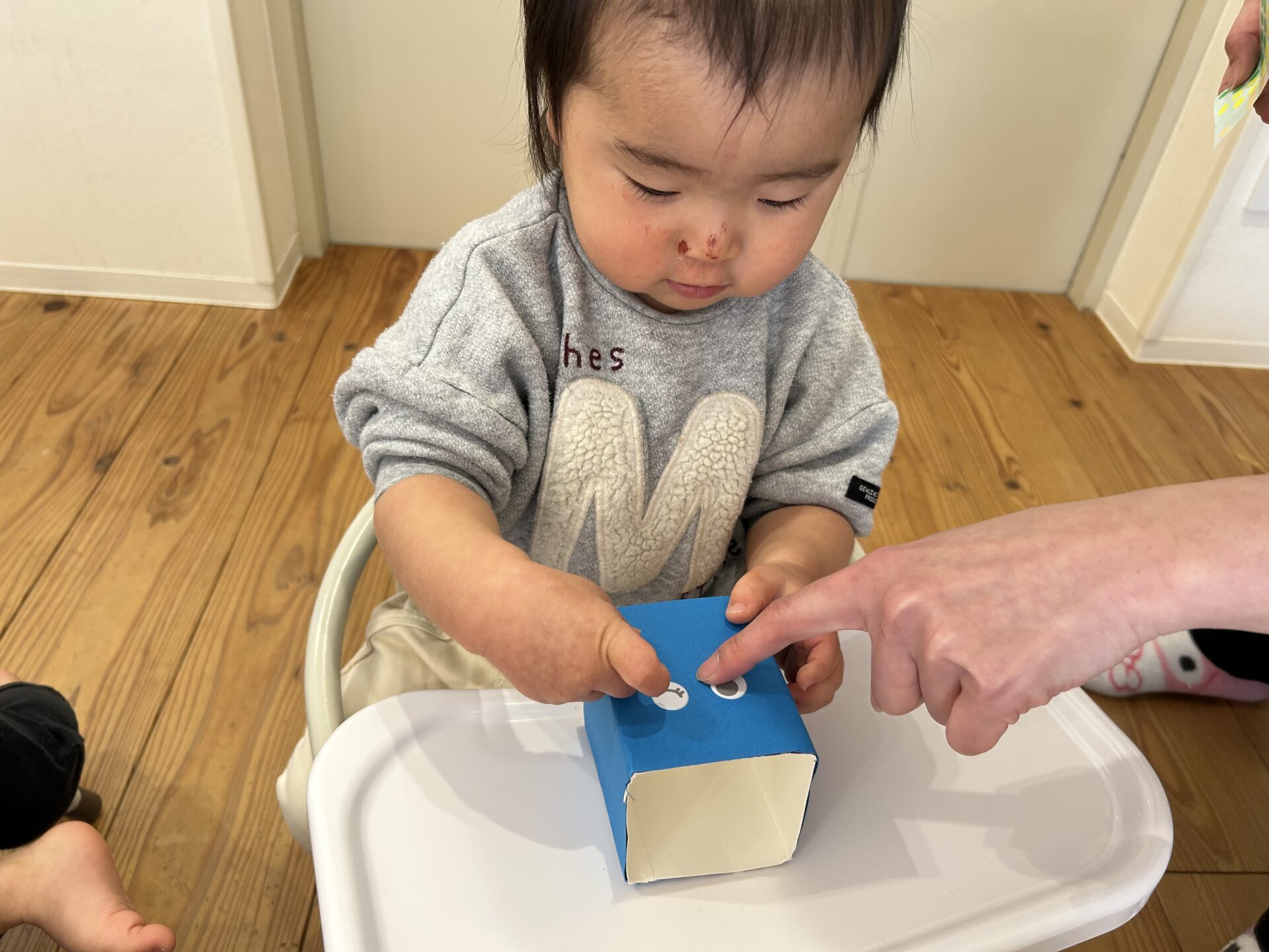 「どんなお顔がいいかなぁ?」と先生と子どもたちでお話をしながらマスの👹顔を作りました!