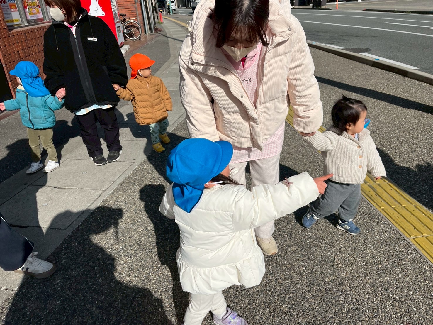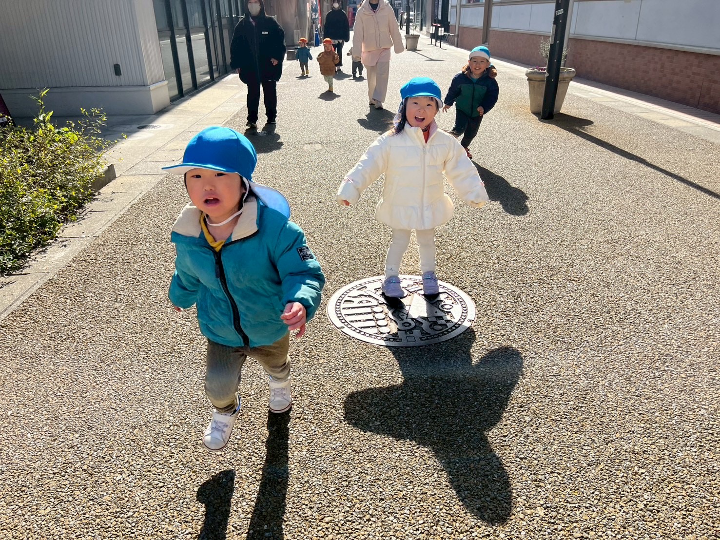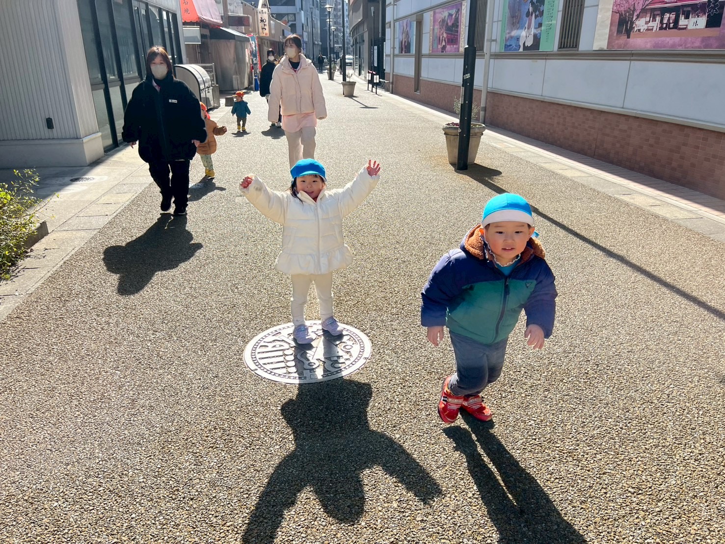 そしてカモさんの観察をしたり、商店街の道をよーいどん!と競争したりして楽しみました♫