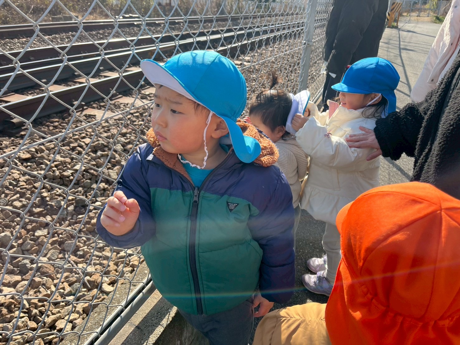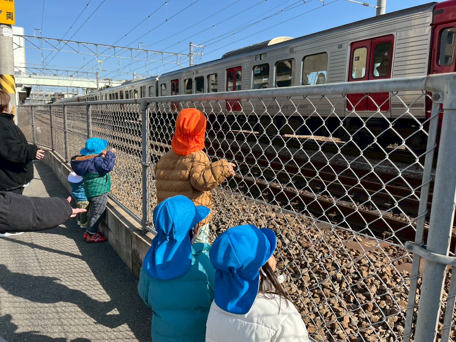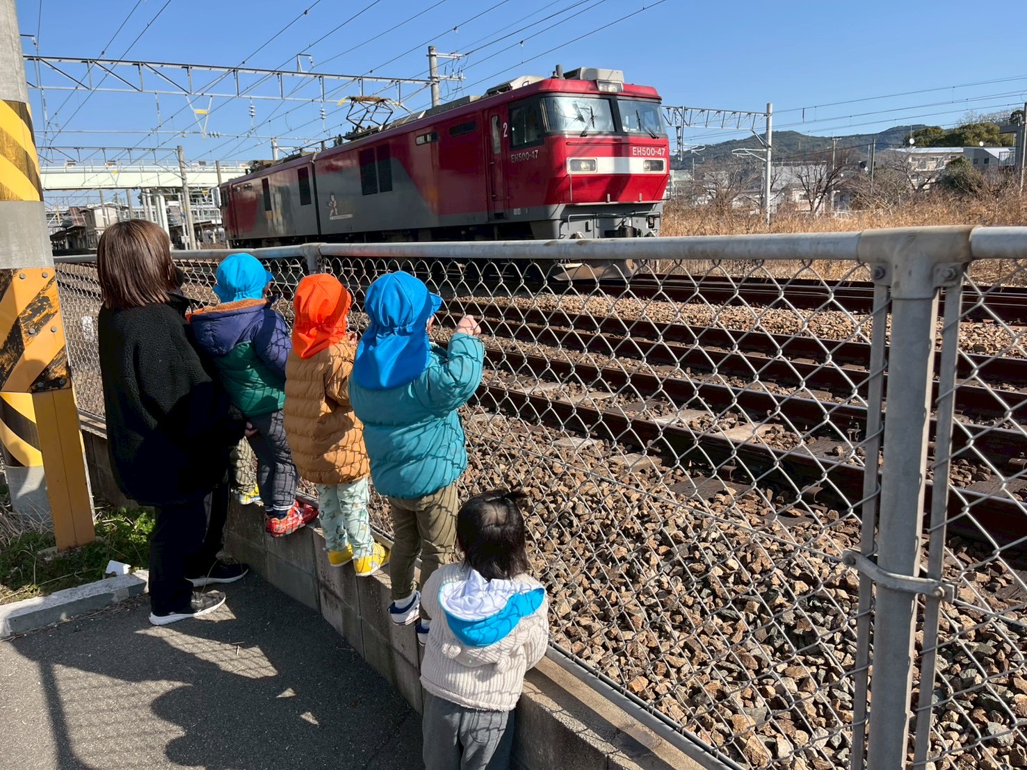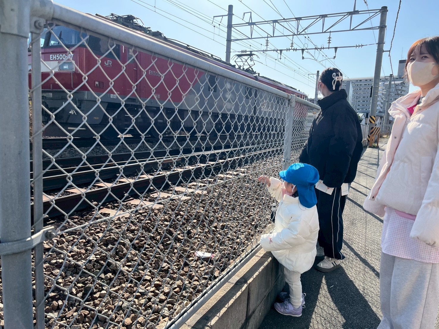 電車を見に行くと金太郎に遭遇🚃³₃なんと荷物を乗せずに1両で走っており、不思議そうに見送る子ども達でしたꉂ🤭︎💕︎︎