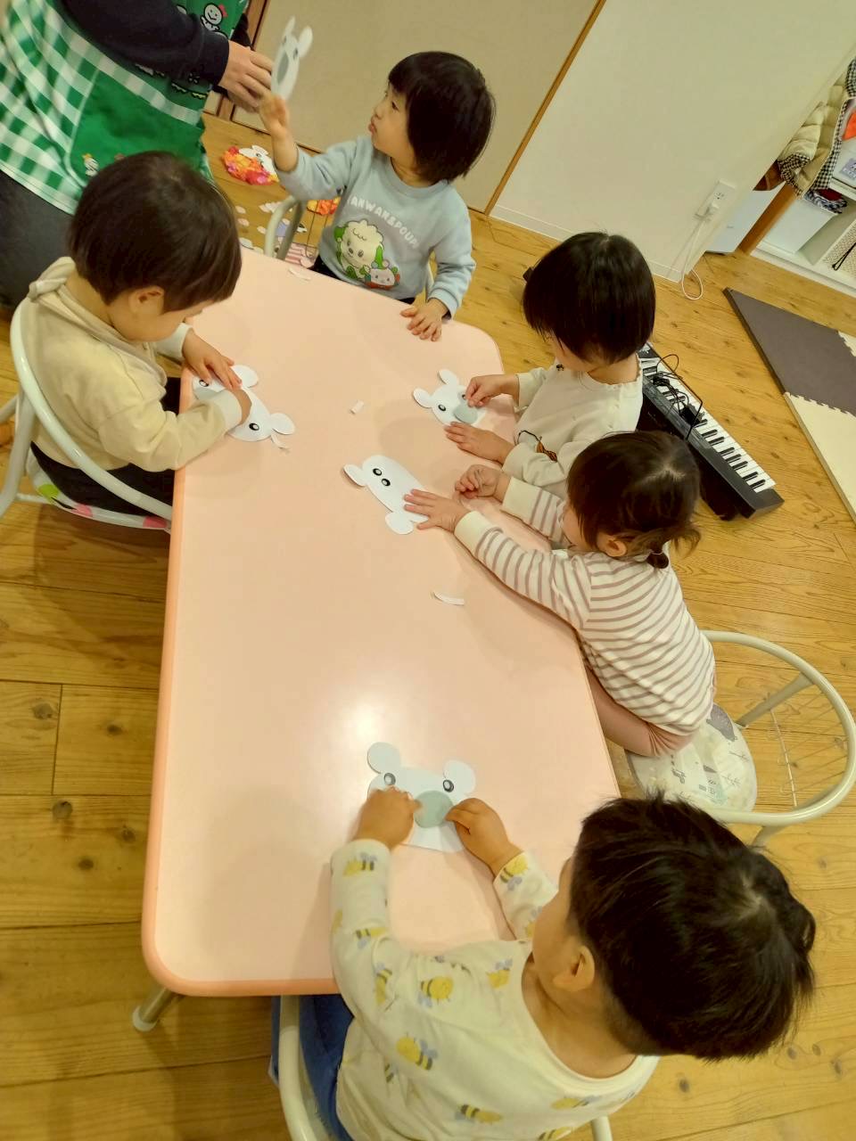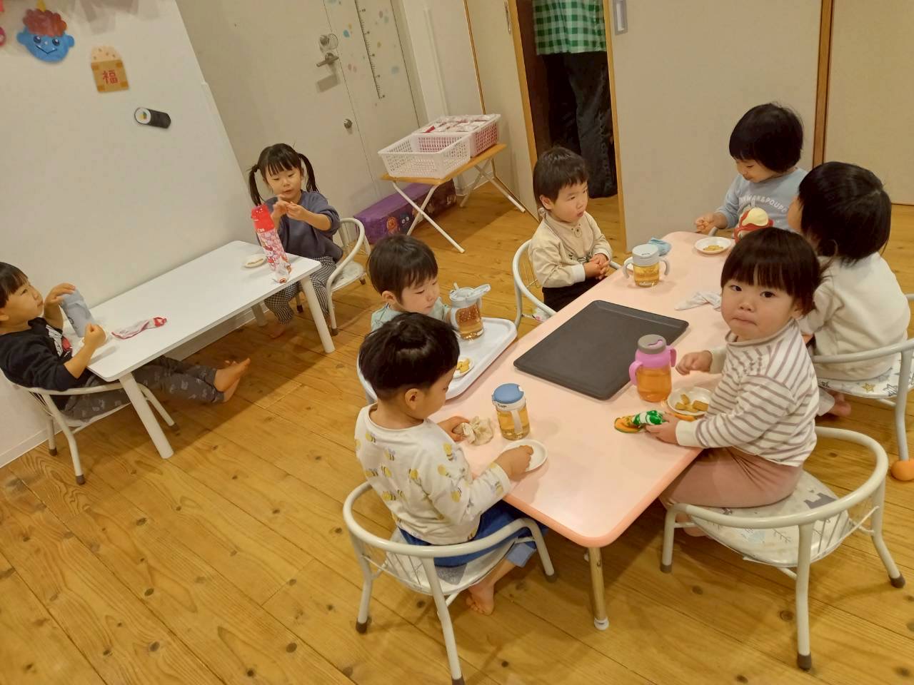 おやつを食べて、朝の会をした後はꔛ( ˶>ᴗ<˶)