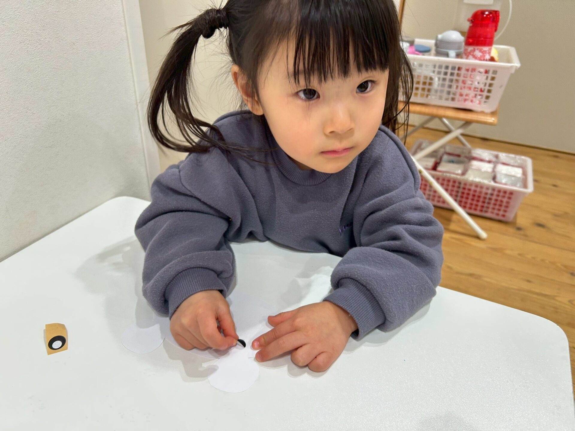 のりや両面テープを使ってお顔をペタペタ😁個性的でかわいいシロクマさんが完成していましたよ🤭︎💕︎︎
