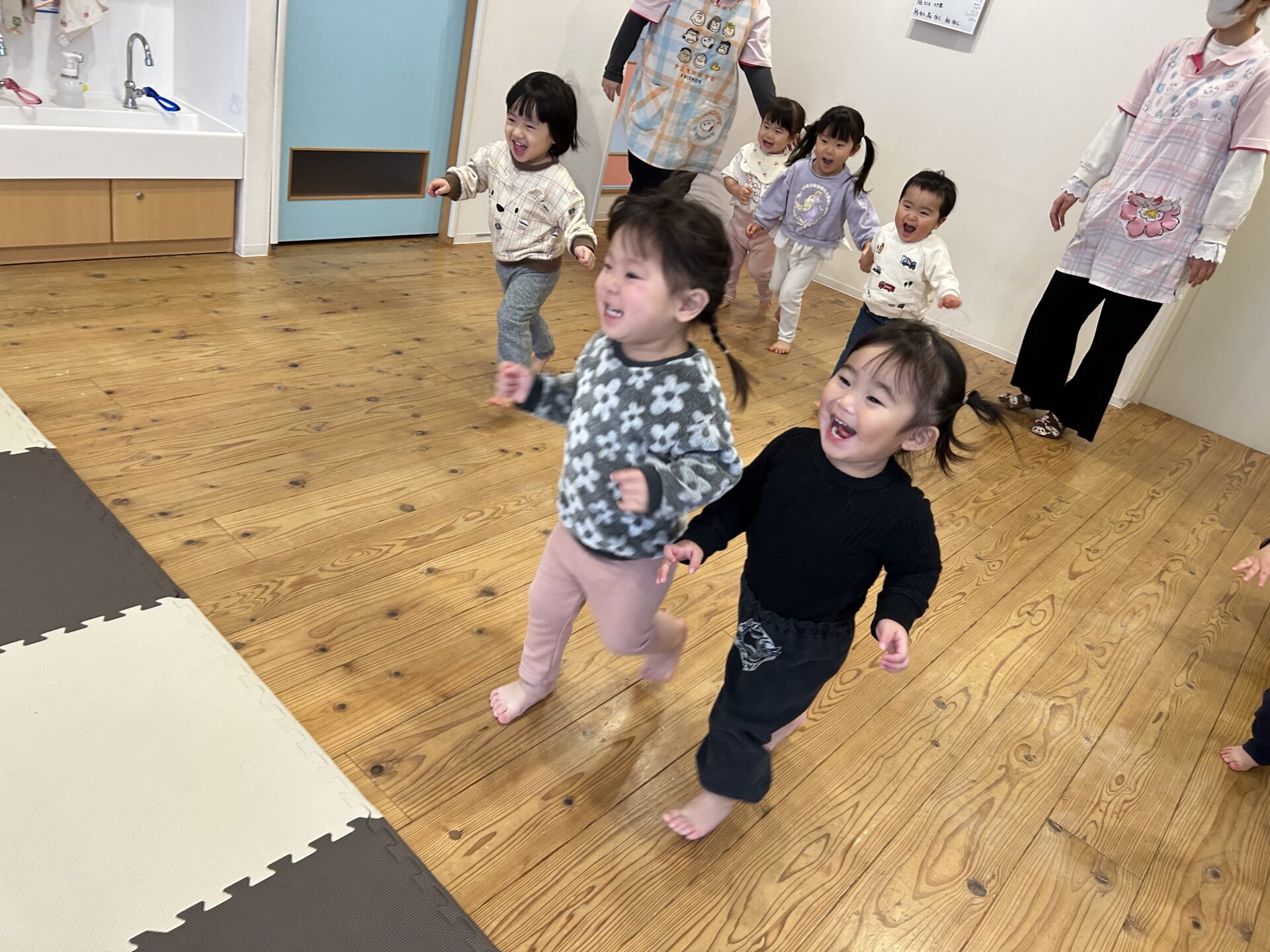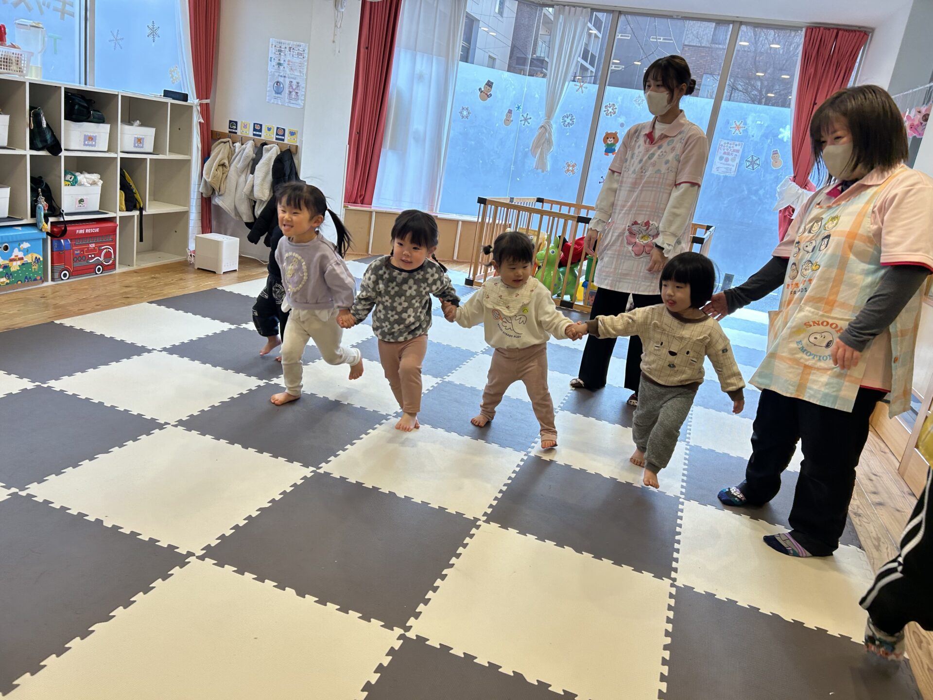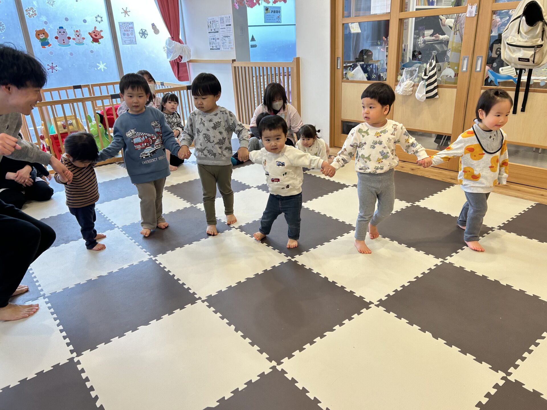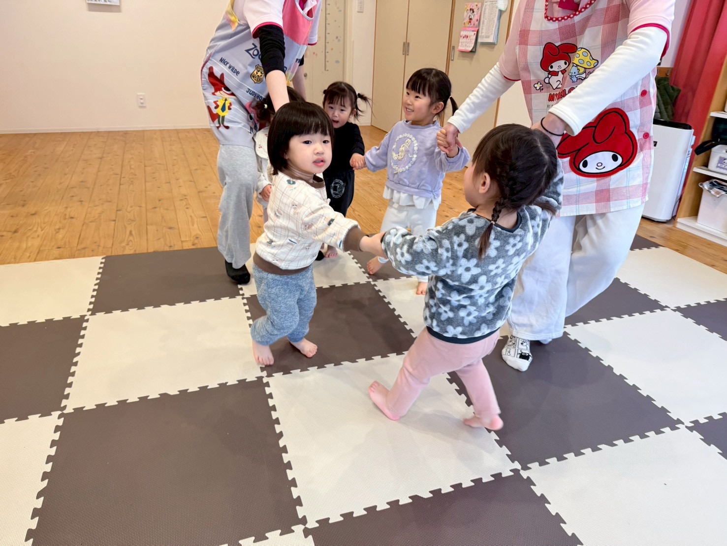 お手手をつなぐがお約束事✨みんな協力しながらおいっちにー、さんしー!