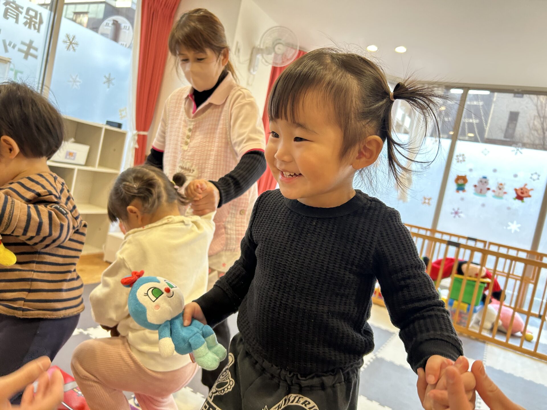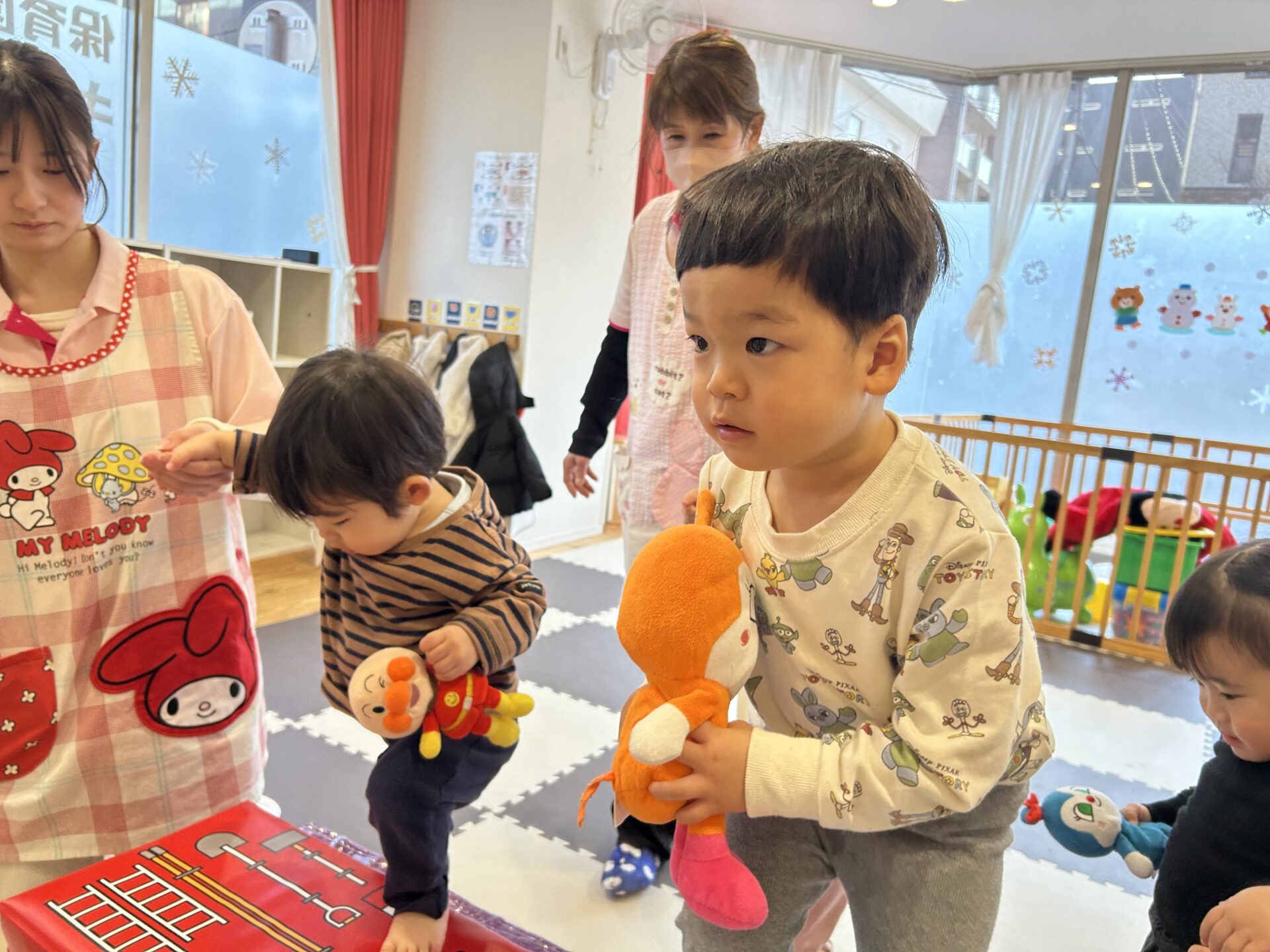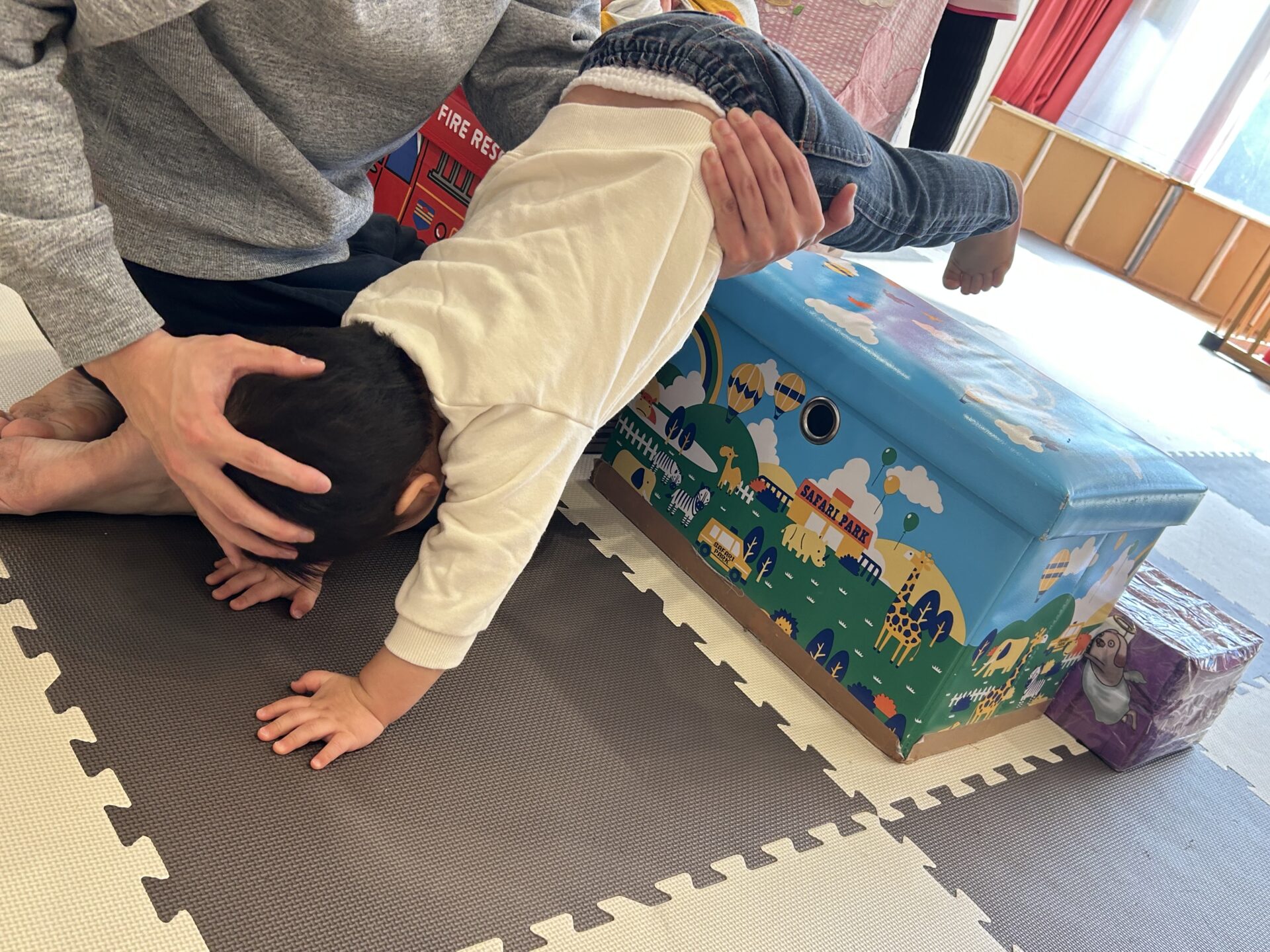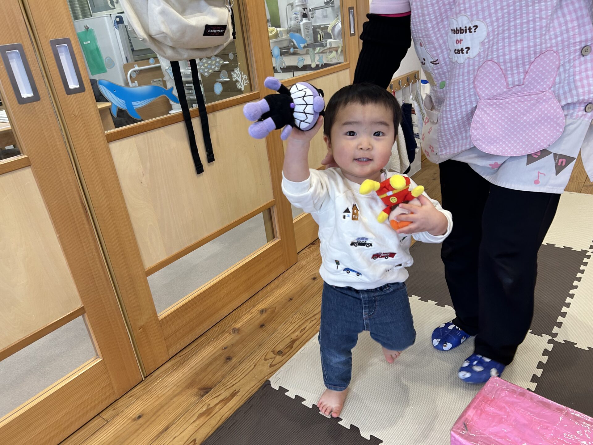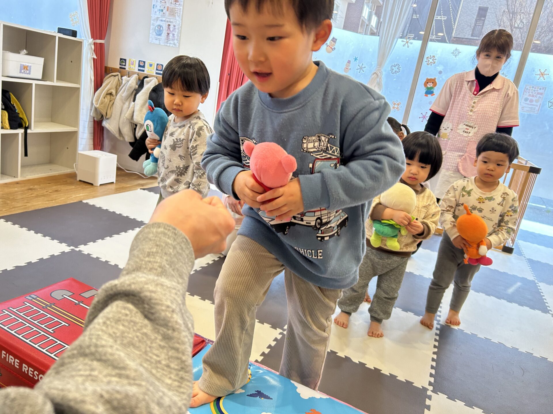 その後もぬいぐるみを使っての遊びも行いたくさん身体を動かしています☺️💙